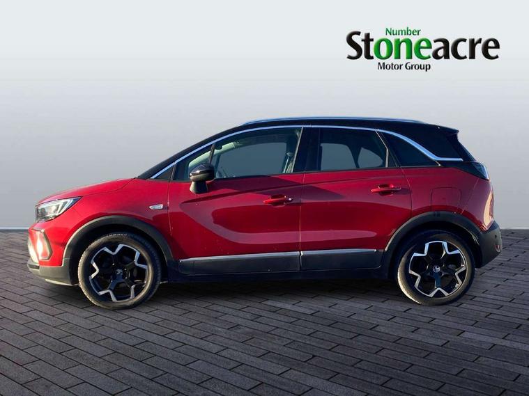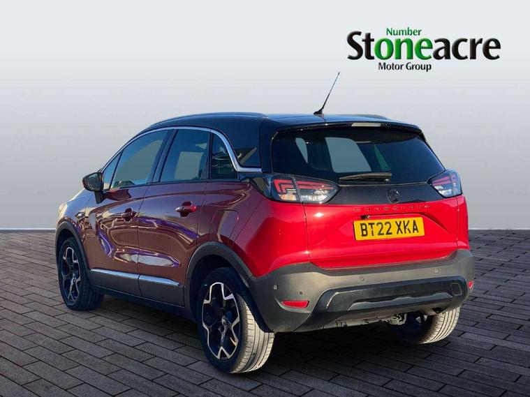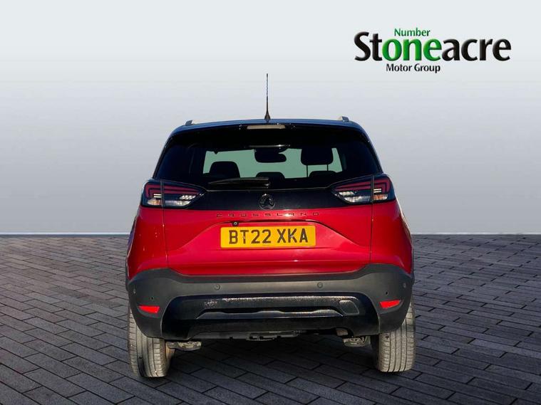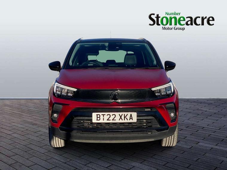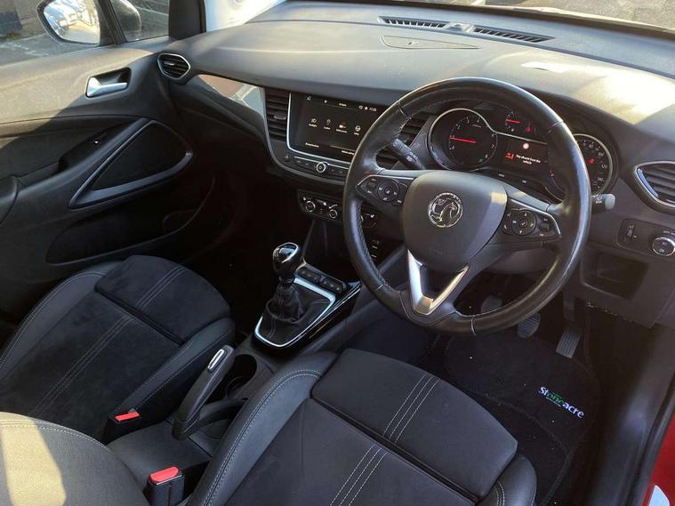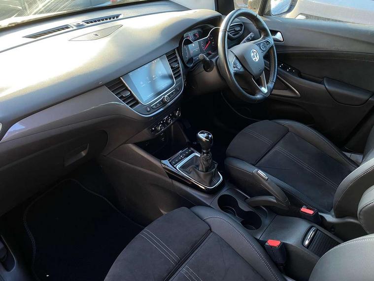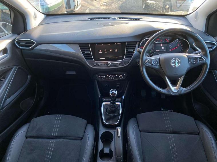 3.5" colour instrument display, Audible lights on warning, Cruise control + speed limiter, Digital clock with automatic RDS time adjustment, Driver drowsiness alert system, E-call, Forward collision warning, Front camera system, Instrumentation - Speedometer, rev counter, low fuel gauge warning light + water temperature gauge warning light, shift up/down indicate light, Lane departure warning system, Multi function trip computer, Multimedia sat nav pro with 8" colour touchscreen, AM/FM, Bluetooth streaming, Bluetooth mobile phone portal, apple CarPlay/Android Auto + 6 speakers, Outside temperature display with ice warning, Panoramic rear view camera, Refridgerant low indicator, Service interval indicator, Speed sensitive power steering, Speed sign recognition, Start/stop system, Without wireless charger, Front wheel drive, 2 x USB connections, DAB Digital radio, Steering wheel mounted audio/phone/cruise controls, 2 speed wipers/wash wipe/intermittent wipe, Automatic anti dazzle rear view mirror, Automatic headlamp levelling system, Automatic high beam control with cornering light, Automatic lighting control, Black griffin logo, vizor frame, rear lettering and skid plates, Black radiator grille with chrome bar, Body colour door handles, Body colour front and rear bumpers, Chrome effect upper window moulding, Collapsible windscreen wipers, Dark tinted rear side windows + tailgate window, Electrically adjustable and heated door mirrors, Flexible roof mounted aerial, Front power windows with express up/down and anti-pinch function, Hazard warning lights, Headlamps for left side traffic, Heated rear window, Integrated tailgate spoiler, Intermittent rear wash/wipe, LED 3rd brake light, LED daytime running lights, LED front fog lights, LED Headlights, LED side repeat indicators, LED tail lights, Manual folding door mirrors, Rain sensitive windscreen wipers, Rear fog lights, Rear power windows with express up/down and anti-pinch function, Rear screen wiper - intermittent, Rear side wing doors, Reversing light, Side window demist vents, Silver effect side door mouldings, Silver roof rails, Solar heat absorbing windscreen and windows, Upper and lower bumper design, Welcome lighting, Windscreen demist vents, 12v power outlet - front, 12V power outlets on rear seat, 2 way front passive headrests, 3 seat bench in 2nd row, 3 spoke flat bottomed leather covered steering wheel with bezel decoration, 4 way electrically adjustable lumbar support for drivers seat, 4 way electrically adjustable lumbar support for front passenger seat, Adjustable rear seat backrest, Air recirculation facility, Alcantara suede/vinyl upholstery, Ambient lighting, Anti submarining ramps in front seats, Cabin particulate filter - removes dust, airborne particles and pollen, Driver and front passenger illuminated vanity mirrors with flip up covers, Dual zone electronic climate control, Electric heater, Ergonomic active front seats with 8 way manual adjustable driver and front passenger seats with height, reach, and backrest, Fade up/fade down on interior lighting, Four adjustable facia vents, Front and rear central courtesy light, Front door pockets with bottle holders, Front map reading lights, Fully carpeted luggage area, Glovebox with lid, Height adjustable front/rear head restraints, Illuminated load area, Isofix system on outer rear seats, Jet black premium leather side bolsters, Luggage compartment cover, Multi-speed fan with Illuminated control, Open storage compartment in centre console, Passenger assist handles, Reach + rake adjustable steering column, Rear centre armrest, Rear door pockets with bottle holders, Rear floor ventilation ducts, Rear reading lights, Satin chrome effect bezel on steering wheel, Seat cushion extension, Single front passenger seat, Storage pockets on front seat backs, Two drinks holders in centre console, Uplevel centre console front centre armrest with storage, Versatility pack - Crossland Ultimate, Winter pack - Crossland Ultimate, 3x3 point rear seatbelts, 6 airbags - Driver and co-driver front, front side, head curtain roof airbags, front and rear row coverage airbags, ABS, Automatic emergency braking with pedestrian detection, Child locks on rear doors, CSC - Cornering stability control, Deactivate switch for side impact airbags, Deformation zones front and rear, Dual seatbelt pretensioners on front seats, EBD - Electronic brakeforce distribution, Energy absorbing steering column, Engine drag torque control, ESP + traction control, Front and rear seatbelt unfastened audible warning and warning light, Front side impact airbag, Hill start assist, Hydraulic Brake Assist (HBA), Hydraulic brake boost, Inertia reel lap and diagonal seatbelts for all seats, Passenger airbag deactivate switch, Pedestrian detection, Rear seat belt pretensioners, Reinforced passenger safety cell, Seatbelt load limiter, Side impact protection beams, Smart seatbelt reminder for front and rear seats, Tyre pressure monitoring system, 2 remote folding keys, Electronically protected audio equipment, Engine immobiliser, Keyless entry and start, Locking wheel nuts, Remote central deadlocking, Remote control central locking activation switch on driver door, Remote control central locking operates on doors, tailgate and fuel filler flap, Remote security alarm system, Visible vehicle identification number, Black facia with silver trim insert, Black trim inserts on front doors, Cluster black with chrome rings, 17" five twin spoke diamond bi colour alloy wheels,
