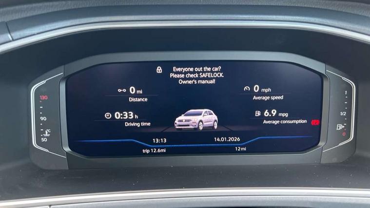 10.25" Digital cockpit pro, Advanced driver attention and drowsiness monitor, Emergency call service, Lane keeping system Lane Assist, Mobile phone interface, Modified key software - reduce switch off time for key status change to Long no motion, Online services, Park assist including front and rear parking sensors, Power assisted speed sensitive steering, Service interval indicator, Tailgate/trunk lid release from outside, Think blue trainer driver tips and journey analysis, Warning sound and light for front seatbelts unfastened, Wireless app connect, Battery regeneration during braking, Start/stop function with battery regeneration, DAB Digital radio, Diversity antenna for FM reception, Front and rear 6 speakers, Music playback - MP3, WMA and AAC files, Premium USB cable in choice of either Apple or Android smartphone compatibility, SD card slot, Simultaneous pairing of 2 compatible mobile devices, Title and cover art display, We Connect and We Connect Plus functionality, Auto dimming interior rear view mirror, Automatic hazard lights activation under emergency braking, Automatic headlight control with LED separate daytime running lights with coming/leaving home function, Body colour sports bumpers with silver metallic underbody fascia, Body coloured exterior mirror housings and door handles, Dynamic headlight range control with self adjusting whilst driving, Electrically adjustable and heated door mirrors, Extended roof spoiler, Exterior mirrors aspherical on driver side, convex on front passenger side, External USB type C socket and charging sockets, Front windscreen wiper with intermittent wipe and 4 position delay, Heated rear window, LED 3rd brake light, LED rear combination lamps, LED rear number plate lights, Light mode for poor weather, rain, fog or snow, Power windows with comfort operation and circuit breaker, Privacy glass for rear side windows and rear window, Rain sensor, Rear exhaust tailpipe, Rear fog light on one side and reversing lights on both sides, Rear side wing doors, Rear wash/wipe with intermittent wipe setting, Remote electrically foldable door mirrors, puddle lights and reverse activated passenger's door mirror, 12V power socket in centre console, 3 rear head restraints, 3 seat bench in 2nd row, 4 load lashing points in luggage compartment, Air care climatronic air conditoning system with active combination filter and 2-zone temperature control, Chrome plated radiator grille inserts, air vent surrounds and light switch surrounds, Door and side trim panel with leatherette insert, Drawer under drivers seat, Front + rear carpet mats, Front centre armrest, Front comfort sports seats, Front cupholders x 2, Front footwell illumination, Front seat back storage pockets, Glove compartment door with light, Instrument lighting, white adjustable panel illumination, Interior ambient lighting and surround lighting, Interior light delay, Isofix child seat preparation, Leather gearshift handle, LED interior light with switch off delay/dimmer and 2 front/rear LED reading lights, Load-through provision with cup holder when folded down ('Unsplit rear seat bench, split folding backrest, with centre armrest), Luggage compartment lighting, Non-folding front passenger seat backrest, Single front passenger seat, Storage compartment in left and right luggage area, Storage compartment in rear doors, Storage compartments in driver and front passenger doors, Sunvisors with illuminated vanity mirrors, Variable boot floor, height adjustable and removable, Driver assistance pack without proactive passenger protection - T-Roc, 3 point height adj front seatbelts + pretensioners, 3 point seatbelts in outer rear with ECE label, ABS, Child locks on rear doors, City emergency braking and pedestrian monitoring, Driver and front passenger airbag with front passenger airbag deactivation, Driver and front passenger safety-optimised head restraints, Drivers seatbelt reminder, Electronic parking brake, Electronic Stability Control (ESC) inc EDL (Electronic Differential Lock) and ASR (Traction Control), Front and rear passengers curtain airbag system including front side airbags, Predictive pedestrian protection, Rear disc brakes, Two tone horn, Tyre pressure loss indicator, Volkswagen roadside assistance, Deep iron grey decorative inserts in dashboard, centre console and front door trim panels, Trims for alloy wheels,