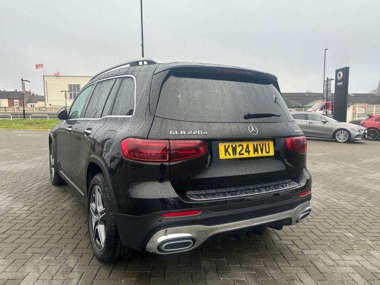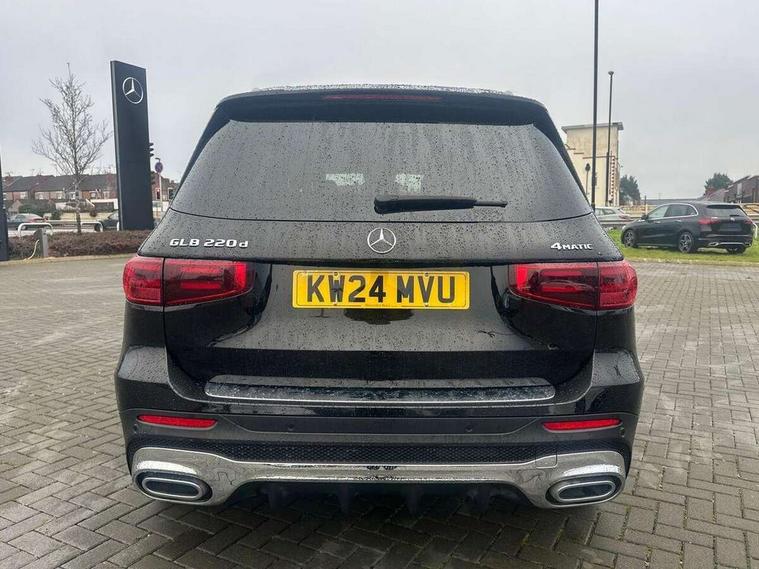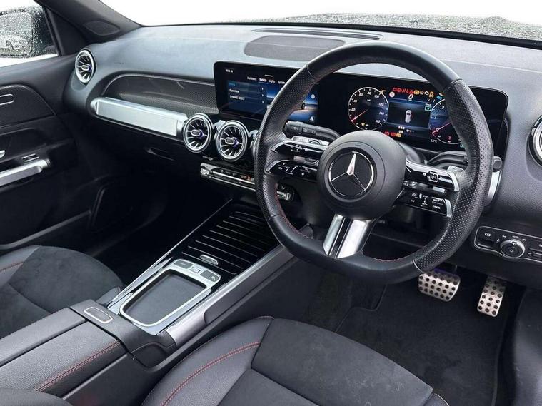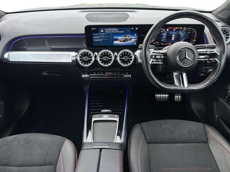 10.25 inch touchscreen central media display, 10.25" Digital instrument cluster display screen, 12 ultrasonic sensors in front and rear bumpers, 180 degree reversing camera with parking guidelines, Additional drive program "OFF-ROAD", Assisted parking: reversing backwards into perpendicular and parallel parking spaces, Attention assist - Monitors steering behaviour and long journey fatigue, Bluetooth connection, Brake pad wear indicator warning light, Car wash mode, Convenience opening and closing, Direct steering, DYNAMIC SELECT with a choice of driving modes (ECO, Comfort, Sport and Individual), ECO start/stop function, Engine start/stop button, Fluid level warning indicator for fuel, oil, coolant and washer fluid, Hard disk navigation, Hey Mercedes Voice activation, Lamp failure indicator, Lane keep assist, MBUX navigation premium, Mercedes me connect including emergency call system, accident recovery, breakdown and maintenance management, Mercedes me remote services, Outside temperature gauge, Owners manual and service booklet in English, Pre-installation of private car share, Preinstallation for parking damage notification, Radio aerial integrated into front and rear windshields, Remote boot closing, Service indicator (ASSYST), Smartphone integration with Apple CarPlay and Android auto, Speed limit assist, Tailgate, Trip computer in multifunction display with current consumption indicator, Ultrasound sensors - positioned in the handle of the tailgate, Wireless charging, Comfort suspension with ride height lowering, Rear axle multi-link, 1 USB-C port in the oddments compartment (Charge + Data transfer), 2 USB-C ports for the rear on the centre armrest (Charge only), 2 USB-C ports under the front centre armrest (Charge + Data transfer), DAB digital radio tuner, MBUX multimedia system, Mercedes Benz sound system (100 W) with 6 speakers, Pre installation for Mercedes Benz Link, Adaptive brake lights, Adaptive high beam assist, AMG front apron with front splitter in the colour of the vehicle with chrome trim element, AMG rear apron with visible tailpipe trim and chrome trim element, AMG specific/dual flow exhaust pipes in chrome (non-functional), Auto dimming rear view mirror, Beltline trim and window line trim strip in high gloss aluminium, Black grained side sill trim with chrome inlay, Body coloured door handles, Electric adjustable and heated door mirrors with integrated LED side indicators, Electric folding door mirrors, Front and rear electric windows, Headlamp assist automatic headlamp activation, Heat insulating dark-tinted glass starting from B-pillar, Heated glass rear windscreen + timer control, High level LED third brake light, Interior mirror with black reading lamps and frameless, LED high performance headlamps with integrated LED daytime running lights, LED tail lamp, Polished aluminium roof rails, Radiator grille as a diamond grille with chrome pins and central Mercedes star, Rain sensor windscreen wipers, Rear fog lamp, Rear side wing doors, Rear wiper, Single louvre in matt grey with chrome inserts and black highlights, Two visible tailpipe trim elements exhaust, Ultrasonic sensors - positioned in the front and rear bumpers, Wheel arch liners in the colour of the vehicle, 12V socket in the oddments compartment, 3 seat bench in 2nd row, 3 twin spoke flattened multifunction steering wheel in nappa leather - horizontal twin spoke in high gloss black, vertical twin spoke in silver chrome, 4 way adjustable lumbar support, 40:20:40 split folding rear seats, Air vents with silver chrome surrounds, AMG floor mats, AMG sports pedals with brushed stainless steel surfaces and black rubber studs, Automatic child seat recognition sensor, Black roof lining, Door handles with chrome inserts, Fluorescent jacket, Front and rear headrests, Front centre armrest with stowage, Galvanised steering wheel gearshift paddles in silver chrome, Handle recess lighting, Heated front seats, Height adjustable head restraints, Height/reach adjustable steering column, Interior lighting - 64 colour Ambient lighting, Luggage net on driver/front passenger seat backrest, Single front passenger seat, Sports seats, Stowage compartment with retractable cover, Sun visors with illuminated vanity mirrors, THERMATIC automatic climate control, Third row of seats for two people on rear seat, Twin front cup holders, Two outer rear seat isofix and top tether child seat fixing points, Easy pack tailgate, Interior lighting with light and sight pack - GLB, Seat comfort package - GLB, 3 rear 3 point seatbelts, Active bonnet pedestrain safety measure which detects an impact and raises bonnet by 65mm, Active brake assist includes forward collision warning system with autonomous braking, Adaptive brake assist with hold function and hill start assist, Airbags - kneebag for driver, Anti-lock braking system (ABS) with brake assist, Black seatbelts, Bonnet with power domes, Childproof locks manually operated for rear doors and electrically operated for rear power windows, Crash responsive emergency lighting, Curve dynamic assist, Downhill speed regulation (DSR), Driver and front passenger head and sidebags, Driver and front passenger windowbags, Dual stage driver and front passenger airbags, Electric parking brake, Electronic stability programme with acceleration skid control, Front and rear seatbelt reminder, Front brake callipers with Mercedes Benz lettering, Front passenger seat occupancy sensor, Perforated front brake discs, Tyre pressure monitoring system, Warning triangle and first aid kit, Guard 360 degree vehicle protection - Anti theft alarm system, tow away protection with visual, acoustic warning and alarm, Interior monitoring system, Keyless Go Access and drive authorisation system, KEYLESS-GO starting function, Remote central locking and crash sensor with emergency opening function, Thatcham category 1 alarm system with immobiliser and interior protection, Vehicle key with KEYLESS GO functionality, Carbon structure 