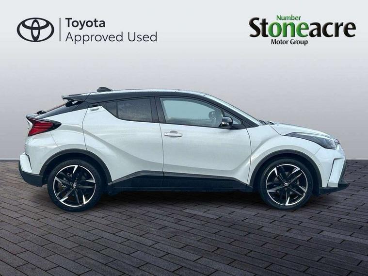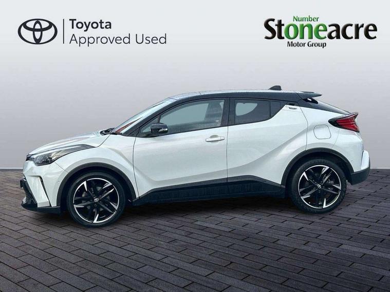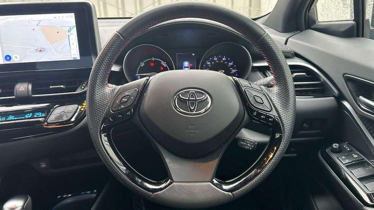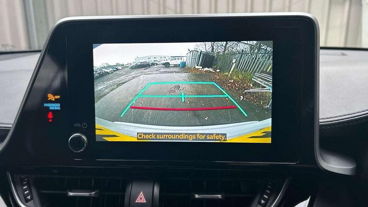 4.2" coloured TFT screen for multi-information display, Adaptive cruise control, Bluetooth connectivity, E-call, Electric power steering, Hybrid system indicator, Lane departure alert with steering control, Lane trace assist, Push button tailgate release, Remote boot door release in cabin, Remote boot door release in key, Reversing camera, Road sign assist - RSA, Simple Intelligent parking assist, Smart voice assist, Touch 2 Go navigation system, Trip computer, Voice recognition, Wireless smartphone integration, Vehicle Stability Control (VSC), 6 speakers, AM/FM radio, DAB Radio (Digital Audio Broadcasting), Toyota touch 2 multimedia system with 8" display, USB connector, Wi-fi connectivity, Adaptive front light system, Adaptive LED Headlights, Anti-jam protection on power windows, Auto high beam, Auto up and down function on all power windows, Automatic headlight levelling, Automatic headlights, Automatic headlights cut-off, Black and body coloured rear bumper, Black upper front grille, Body colour door handles, Body colour door mirrors, Body coloured front bumper, Boot door release with push button, Chrome front lower bumper, Electric heated door mirrors, Follow me home headlights, Front and rear power windows, Front spoiler lip in black, Headlight cut off reminder, Honeycomb lower front grille, LED daytime running lights, LED fog lights, LED front light guide, LED High mounted stop light, LED rear brake lights, LED rear combination lights, Noise reduction layer on front windows and windscreen, Power adjustable door mirrors, Privacy glass, Rain sensor, Rear sequential indicators, Rear side wing doors, Rear spoiler, Rear tailgate, Rear window defogger, Rear window wiper, Shark fin antenna, UV-filter on driver and passenger windows, UV-filter on rear windows, 12v power outlet - front, 3 rear headrests, 3 seat bench in 2nd row, 3 spoke perforated leather steering wheel, 60/40 split folding rear seat, Adjustable rear headrests, Adjustable speed limiter switch on steering wheel, Assist grips front and centre pillar, Audio and telephone switches on steering wheel, Black front door assist grips, Blue ambient lighting on front cup holders, Blue ambient lighting on front doors, Boot light, Chrome interior door handles, Cloth upholstery, Driver and front passenger personal light, Driver and front passenger Whiplash Injury Lessening seats, Driver and passenger seatback pockets, Dual zone automatic air conditioning, Floor mats, Front cupholders, Front head restraints, Front sports seats, Glovebox with internal light, Hard tonneau cover, Heated driver and front passenger seats, Hooks for luggage holding net, Humidifying Nanoe air purifier, Illuminated entry system, Isofix attachments on outer rear seats, Leather gearshift, Light on driver sun visor, Light on passenger sun visor, Manual telescopic steering wheel, Manual tilt steering wheel, Manually height adjustable driver seat, Manually height adjustable front passenger seat, Manually reclining driver seat, Manually reclining front passenger seat, Manually sliding driver seat, Manually sliding front passenger seat, Microphone on front personal light, Mirror on driver sun visor, Mirror on passenger sun visor, Multimedia switches on steering wheel, Pollen filter, Power adjustable lumbar support on driver seat, Shopping bag hooks, Single front passenger seat, Slow opening on lower glovebox, Voice recognition switch on steering wheel, Tech with parking sensor pack - C-HR, 16 Disk front wheel brake, 3x3 point rear seatbelts, ABS+EBD+Brake assist, Electronic parking brake, Front and rear seatbelt reminder, Front passenger airbag on/off switch, Hill start assist control (HAC), Pre collision system with pedestrian detection, Pre-tensioners and force limiters, Rear door child safety locks, SRS Airbags - Driver + Front passenger, front side, front and rear curtain and driver's knee airbags, Toyota safety sense, Tyre pressure monitoring system, Tyre pressure warning system, Acoustic vehicle alert system (AVAS), Glass-breaking alarm sensors, Immobiliser, Intrusion alarm, Intrusion sensor, Motion sensor alarm, Power door locks, Power passenger window lock, Remote central locking, Black lower dashboard, Black upper dashboard, Piano black console, Silver deco line on upper dashboard, 19" Black machined alloy wheels, Tyre repair kit,