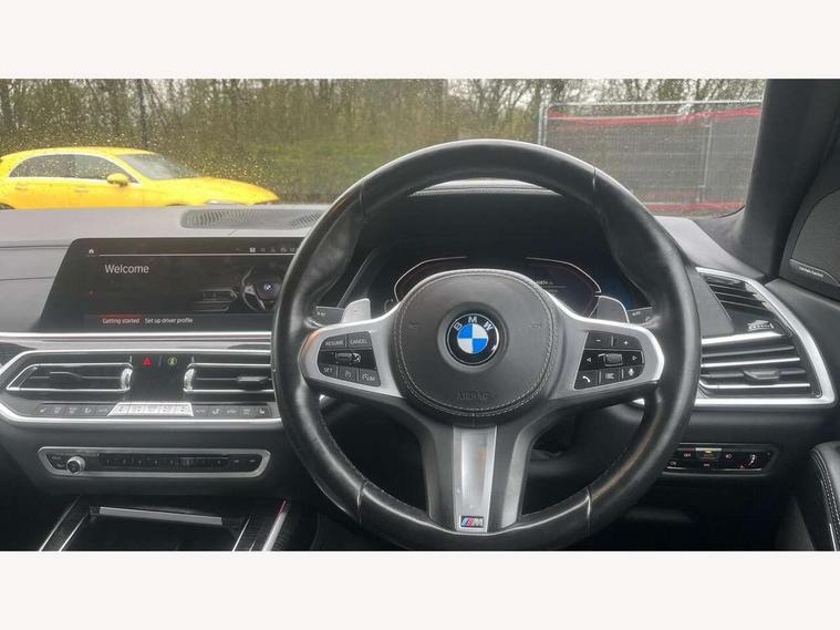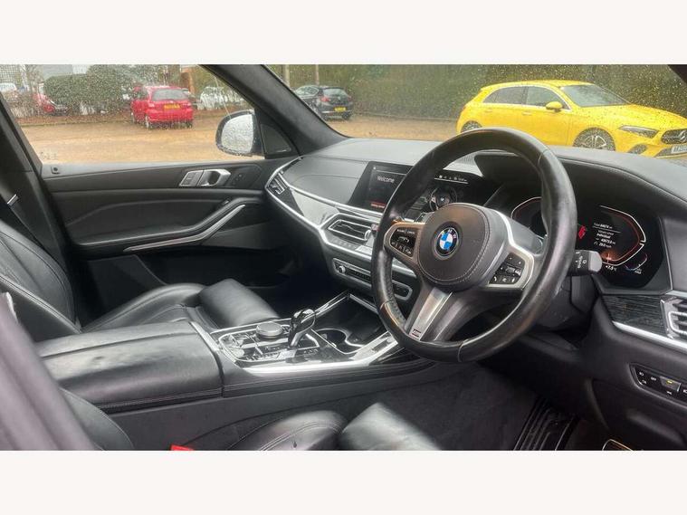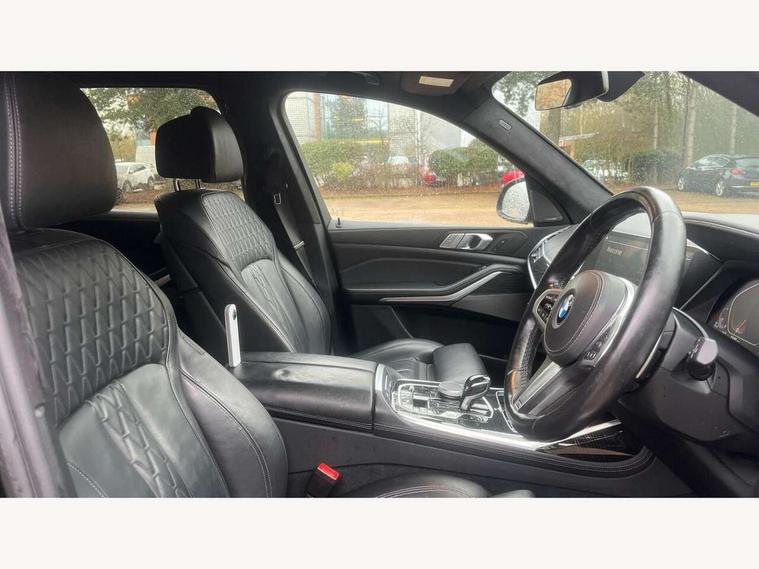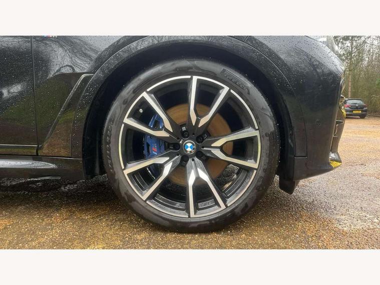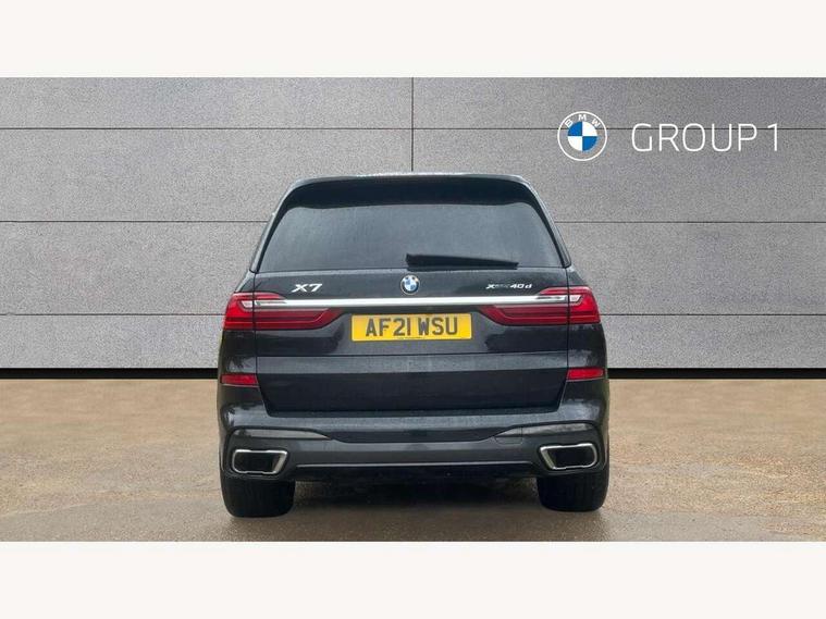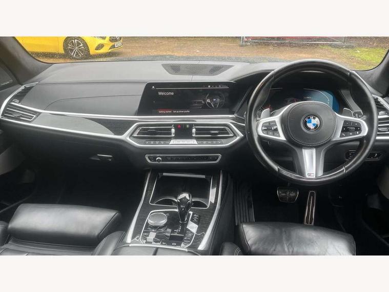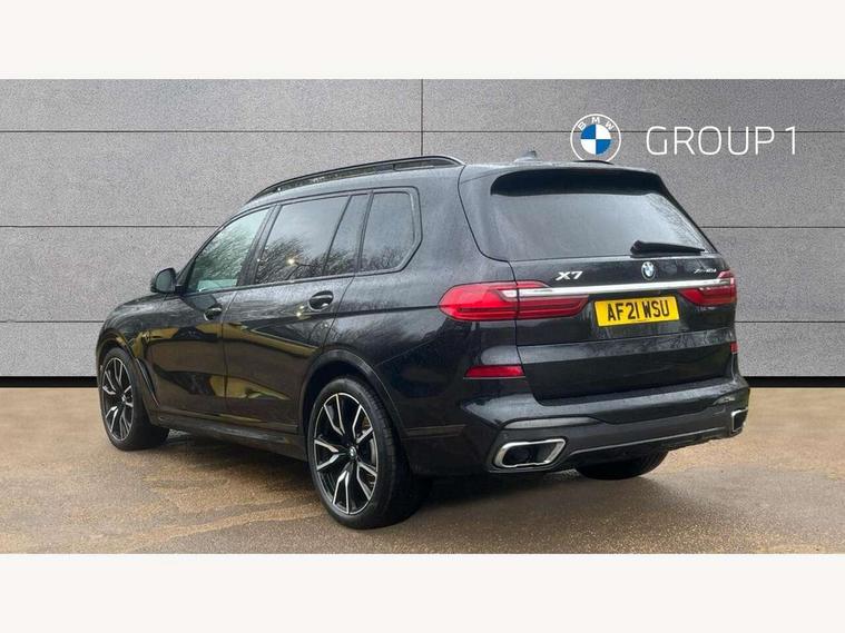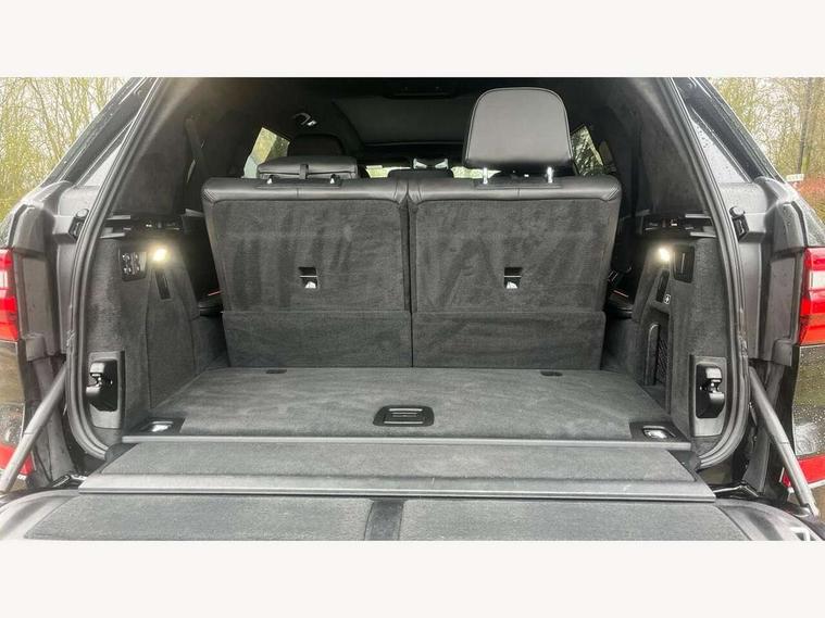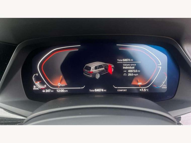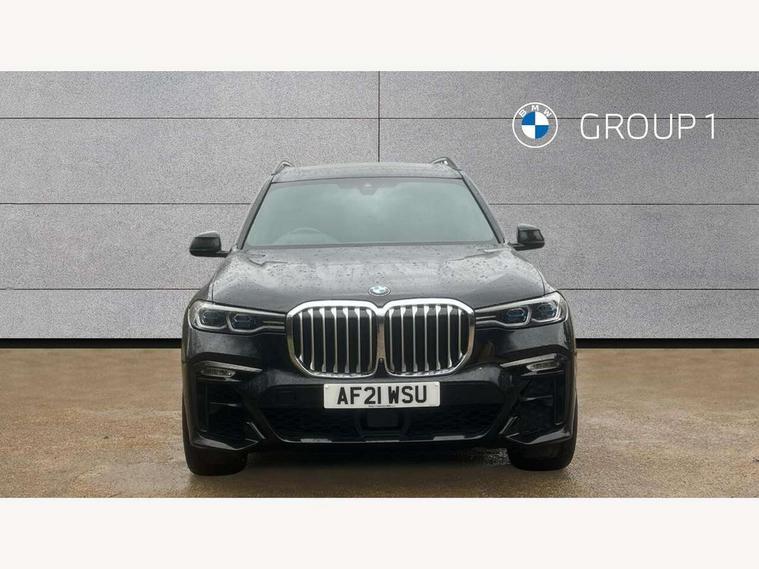 20GB hard disc drive (HDD) memory, Active guard plus, Attentiveness assist, Automatic tailgate operation, BMW digital live cockpit professional - 12.3" digital instrument panel and 12.3" CID + Intelligent personal assistant, BMW Drive recorder, BMW Head up display, BMW legal emergency call, BMW Online services, BMW Teleservices, Brake force display, Brake pad wear indicator warning light, Connected drive services, Enhanced bluetooth hands free facility with Telephony wireless charging, iDrive touch controller with shortcut buttons, Oil sensor for level and grade, On board computer inc. average speed, fuel consumption, liquid crystal Info display, journey computer, outside temperature display, personal profile, Parking assistant plus with reversing assistant, surround view system, review camera and active park distance control, Speed limiting function, Stop/start button, Wi-Fi hotspot, 48V Mild hybrid technology, 8 speed automatic with steptronic transmission including launch control and gearshift paddles on the steering wheel, Adaptive 2-axle air suspension, Diesel particulate filter, Double VANOS, Double wishbone front axle, Drive performance control with ECO PRO comfort + sport and adaptive mode, High precision injection, Twin scroll turbocharger with Valvetronic, 1 x USB A 1.5A in cupholder, 1 x USB C 3A in centre armrest & 1 x double USB C 3A in rear end of console for 2nd seat row, DAB tuner, Favourite buttons, Gesture control for infotainment system, Acoustic glazing, Active Air Stream kidney grille with high-gloss chrome, Door sill finishers with M designation, Dynamic brake lights with LED technology, Exhaust tailpipes - single, left and right with M Sport-geometry Chrome finishers, Follow me home headlight function, Frameless interior mirror, Front and rear electric windows, Heated windscreen washer jets, High beam assist, LED daytime running lights, LED fog lights, LED rear lights, LED third brake light in rear spoiler, M designation on left and right front side panels, Rain sensor with automatic headlight activation and windscreen wiper control, Welcome light carpet, X7 on left tailgate, xDrive and engine designation on right tailgate, 12V - Power sockets with 2x centre console and 1x luggage compartment, 3rd row seats, Ambient interior lighting with 6 pre-designed selectable lights including dynamic function, Centre console includes storage compartment, Compartment in front of cupholder, Electrical steering column with adjustable height and length with activation and control on the steering column, Foldable rear centre armrest with 2 cupholders and storage compartment, Front and rear cupholders x 2, Front and rear door pockets, Front and rear door sill inlays with illuminated BMW M designation, Front and rear seat heating, Front and rear side armrests integrated into door trim, Front footwell lights, Front reading lights, Grab handles, Headrests for all seats, Light inside glove compartment, Lockable glove compartment, Luggage compartment floor panel with integral storage tray, M leather steering wheel, M specific key, M specific steering wheel, Make-up mirror lights, Microfilter and active carbon filter, Multifunction controls for leather steering wheel, Multifunctional hooks, Rear centre interior light, Seat back with flap pocket, Soft close function for doors, Sunvisors with illuminated vanity mirrors, Toolkit located in luggage compartment, Velour floormats, Connected Package Professional - X7, Expanded exterior mirror pack - X7, Luggage compartment pack - X7, M aerodynamics pack - X7, Active protection, Airbags - driver, front passenger, front and side head airbags for first and second row seats knee airbag, Anti-lock braking system (ABS), Automatic Stability Control (ASC), Brake energy regeneration, Child seat ISOFIX attachment rear outer seats in 2nd row and both seats in 3rd row includes top tether, Comfort cushion, Crash sensor and Safety battery terminal clamp, DSC - Dynamic Stability Control, Dynamic Traction Control - DTC, Electromechanical parking brake with automatic drive away release and auto hold function, Front and rear brake discs with interior ventilation, M Sport braking system, Mechanical child proof lock on rear doors, Passive protection for pedestrians, Seat occupancy detection for driver and passenger side, Side impact protection, Split folding 2nd row seating with 40:20:40 configuration, Three point rear seat belts, Two tone horn, Tyre pressure monitoring system, Warning triangle and first aid kit, Closing system with central locking, Comfort access system, Driver and front passenger door centre lock switch, Locking wheel bolts, Thatcham 1 alarm system with remote control and engine immobiliser, Vehicle key with M specific designation, BMW Individual leather finished instrument panel, Galvanic embellisher for controls, Sensatec instrument panel,