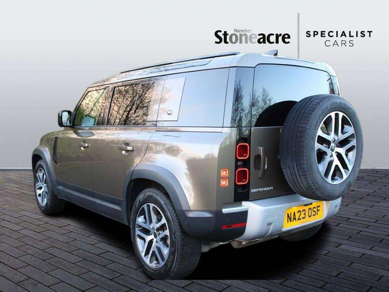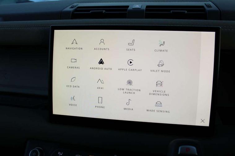 11.4" touchscreen, 360 degree parking aid, 3D Surround Camera with 360 View, 180 Rear View, Front Traffic Detection, Forward Vehicle Guidance, Tow Hitch Assist and clear sight Ground View, Adaptive cruise control, Android Auto, Apple CarPlay, Assisted tailgate with soft close, Blind spot assist, Bluetooth system, Brake pad wear indicator, Clear exit monitor, Connected navigation pro, Driver condition monitor, Electric power assisted steering (EPAS), Interactive driver display, Lane keep assist, Less CE Device Charging, Push button start, Rear collision monitor, Rear traffic monitor, Traffic sign recognition with adaptive speed limiter, Trip computer, Wade Sensing, 8 speed automatic transmission, All wheel drive system, Twin speed transfer box, DAB Radio (Digital Audio Broadcasting), Meridian 400w sound audio system with 11 speakers and subwoofer, Pivi pro connected, Automatic headlight levelling, Automatic headlights, Centre high mounted stop light, ClearSight interior rear view mirror, Electric heated/power fold door mirrors with approach lights and auto dimming driver side, Electric windows with one touch open/close and anti-trap, Follow me home lighting, Front fog lights, Heated rear window with timer, Heated windscreen, LED tail lights, Puddle lights, Rain sensing windscreen wipers, Rear fog lights, Rear side wing doors, Rear wiper, Side hinged tailgate, Trailer stability assist, 12V power socket in loadspace, 14 way heated and cooled electric adjustable memory front seats with 4 way manual headrests, 3 seat bench in 2nd row, Alpine lights, Configurable cabin lighting, Durable rubber cabin flooring, Durable rubber loadspace flooring, Electric reach + rake adjustable steering column, Extended leather upgrade, Footwell lights, Front passenger isofix child seat attachment, Heated steering wheel, LESS Wireless charger, Loadspace Hook, Multifunction steering wheel, Overhead stowage for sunglasses, Premium cabin lighting, Rear headrests, Rear ISOFIX, Rear reading lights, Storage glovebox, Sunvisors with illuminated vanity mirrors, Two front passenger seat, Online pack with data plan - Defender, 6 x 3 point seatbelts, ABS, Brake hold function, Cornering brake control (CBC), Customer configurable autolock, DSC - Dynamic Stability Control, EBD - Electronic brakeforce distribution, Electric parking brake (EPB), Emergency brake assist, Emergency braking, ESP + traction control, Front airbags with passenger seat occupant detector, HDC - Hill descent control, Hill launch assist, Low traction launch, Power operated child locks, Remote for (e-Call, Optimised assistance call, InControl app, Climate, beep and flash and door), RSC - Roll stability control, Seat belt reminder, TPMS (Tyre pressure monitoring system), Alarm, Immobiliser, Intrusion sensor, Keyless entry, Locking wheel nuts,