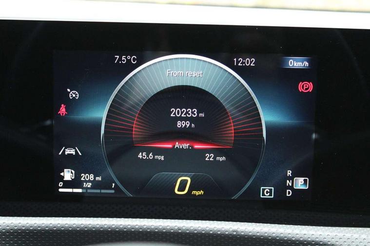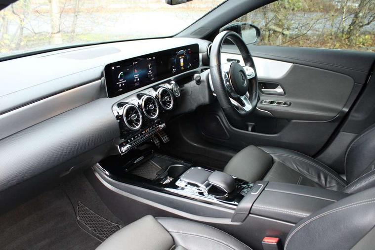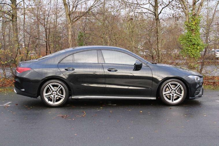 10.25" media display, 180 degree reversing camera, 7 inch display in instrument panel, Active lane keeping assist, Active park assist with parktronic system, Attention assist - Monitors steering behaviour and long journey fatigue, Cruise control + speed limiter, Direct steering, DYNAMIC SELECT with a choice of driving modes (ECO, Comfort, Sport, Sport+ and Individual), ECO start/stop function, Fluid level warning indicator for fuel, oil, coolant and washer fluid, Front and rear parking sensors, Hard-disk navigation, Hey Mercedes Voice activation, Lamp failure indicator, Outside temperature gauge, Pre-installation for private car sharing, Preinstallation for Mercedes Benz link, Radio aerial integrated into front and rear windshields, Service indicator (ASSYST), Smartphone integration, Trip computer in multifunction display with current consumption indicator, Wireless charging, Lowered comfort suspension, Rear axle multi-link, DAB digital radio tuner, MBUX multimedia system with DAB digital radio and touchpad including satellite navigation, Rear stowage compartment with 1 front centre console, 2 x USB ports (type C), Active radiator shutters open for cooling air and close when not needed to improve aerodynamics and fuel efficiency, Adaptive brake lights, AMG body styling front apron, rear apron and side skirts, Beltline strips and weather strip in chrome, Body colour bumpers, Body colour door handles with chrome inserts, Diamond radiator grille pins in chrome with silver painted louvres and chrome insert, Electric windows, Electrically adjustable and heated door mirrors with integrated LED indicators, Exhaust system - Twin trapezoidal tailpipes in polished stainless steel, Headlamp assist automatic headlamp activation, Heated glass rear windscreen + timer control, High level LED third brake light, LED high performance headlamps with integrated LED daytime running lights, LED tail lamp, Privacy glass, Rain sensing windscreen wipers with two sensitivity settings, Rear fog lamp, 3 spoke flattened bottom nappa leather multifunction steering wheel with perforated leather in grip area, 40:20:40 split folding rear seat backrests, Air conditioning - Two zone thermotronic luxury automatic climate control with display, Air vents with surround in silver chrome, Ambient lamp and signal, Automatic child seat recognition sensor, Black roof lining, Brushed stainless steel sports pedals with rubber studs, Cup holder and stowage compartment lighting, Floor mats with AMG lettering, Freight packaging with tie-down hooks, Front and rear Handle recess/closing handle light in left and right, Front centre armrest with stowage, Front door sills with Mercedes Benz lettering, Front footwell lights, Front reading lamps in left and right console downlighter, Front seat cushion length adjustment, Front signal exit lamp in left and right, Front vanity light in left and right, Galvanished gear shift paddles on steering wheel, Heated front seats, Illuminated glove compartment stowage, Luggage net on driver/front passenger seat backrest, Manually adjustable front seats, Manually height and reach adjustable steering column, Oddments tray lighting, Rear interior lamp, Rear reading lamp in support plate in left and right, Spectacles compartment for driver, Sport seats with fixed head restraints, Stowage compartment in centre console with retractable cover, Sunvisors with illuminated vanity mirrors, Touchpad illumination, Touchpad on center console, Twin front cupholders, Two outer rear seat isofix and top tether child seat fixing points, Light and sight pack - CLA, Mirror pack - CLA, Seat comfort pack - CLA, Active bonnet pedestrain safety measure which detects an impact and raises bonnet by 65mm, Active brake assist includes forward collision warning system with autonomous braking, Adaptive brake assist with hold function and hill start assist, Anti-lock braking system (ABS) with brake assist, Brake pad wear warning indicator, Childproof locks manually operated for rear doors and electrically operated for rear power windows, Crash responsive emergency lighting, Driver and front passenger head and sidebags, Driver and front passenger windowbags, Drivers knee airbag, Dual stage driver and front passenger airbags, Electric parking brake, Electronic stability programme with acceleration skid control, ESP curve dynamic assist, Front and rear seatbelt reminder, Front brake callipers with Mercedes Benz lettering, Front passenger seat occupancy sensor, Three point rear seat belts, Tyre pressure monitoring system, Warning triangle and first aid kit, Alarm system with immobiliser and interior protection -Thatcham category 1, Keyless Go starting function, Remote central locking and crash sensor with emergency opening function, Light aluminium with longitudinal grain interior trim, 18" 5 twin spoke design alloy wheels painted in titanium grey with high sheen finish, Summer tyres, Tirefit tyre sealant kit,