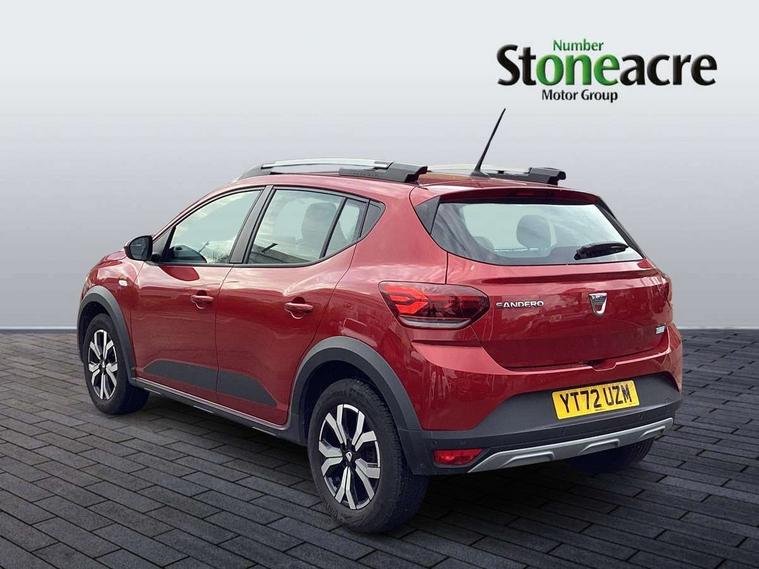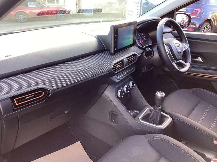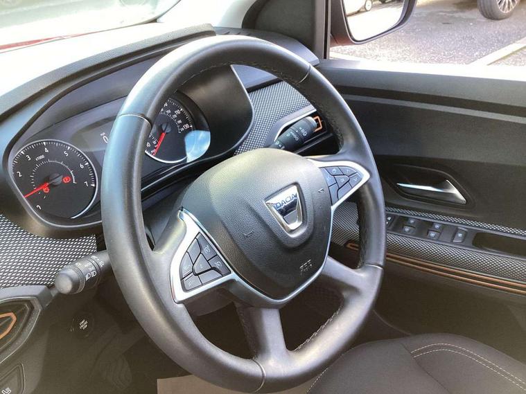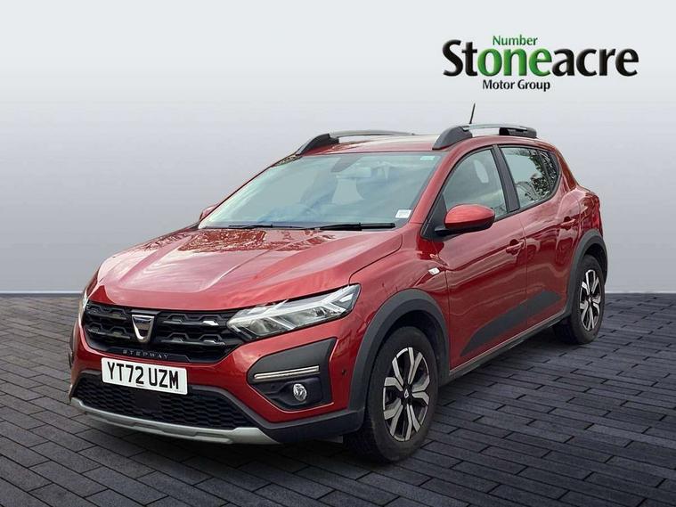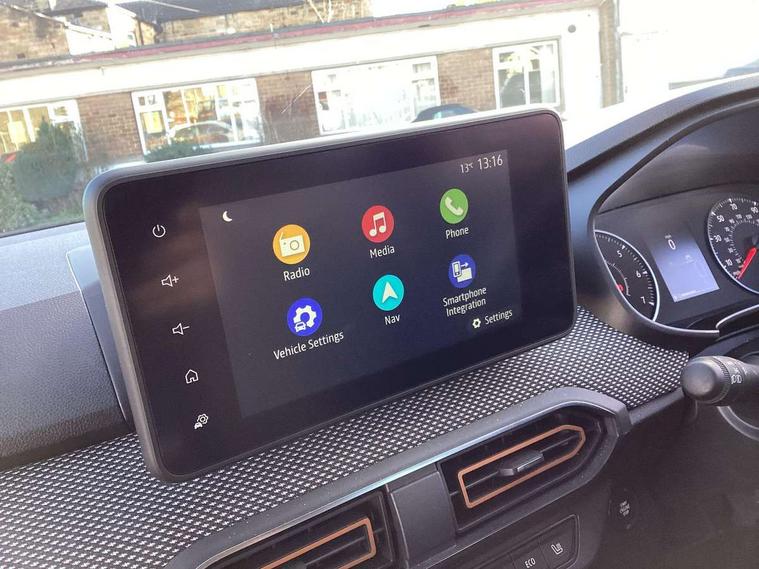 3.5" TFT instrument panel with on-board computer, Blind spot warning, Cruise control with speed limiter, eCall emergency call system, Eco mode, Electric power assisted steering, Front parking sensors, Rear parking sensors, Rev counter, Reversing camera, Stop/start system, 8" MediaNav - DAB Radio, Wifi smartphone replication, Bluetooth, 6 speakres, Apple CarPlay and Android Auto, USB connection for data transfer and charging, USB socket, 3 speed windscreen wipers, Auto lighting, Automatic wipers, Body colour door handles, Body colour door mirrors, Body coloured bumpers, Chrome longitudinal roof bars, Chrome radiator grille, Electrically adjustable and heated door mirrors, Front fog lights, Heated rear window, High level third brake light, LED automatic daytime running lights, LED Y-shape Dacia signature lighting, Modular roof bars, One touch electric front windows, Rear electric windows, Rear side wing doors, Rear wash/wipe, Stepway inscription on radiator grille and roof bars, Tinted windows, 1/3 to 2/3 split folding rear seats, 12 volt front socket, 12 volt rear socket, 3 height adjustable rear headrests, 3 seat rear bench, Automatic air conditioning, Driver + passenger vanity mirrors, Fabric upholstery, Fixed smartphone holder on dashboard, Gear shift indicator, Height adjustable driver seat, Height adjustable front headrests, Height/depth adjustable steering wheel, High central armrest with console storage, Isofix points for child seats in both outer rear seats, Satin chrome interior door handles, Satin Chrome/Copper orange air vents, Single front passenger seat, Soft feel steering wheel, Steering wheel controls, 3x3 point rear seatbelts, ABS and Emergency brake assist, Automatic emergency braking system, Child locks on rear doors, Door open warning, Driver airbag, Electronic parking brake, ESC (Electronic Stability Control), ESP + Hill Start Assist, Front curtain airbags, Front seatbelt pretensioners, Front side airbags, Height adjustable front seatbelts, Passenger airbag, Seatbelt reminder for driver and front passenger, Tyre pressure monitor, Automatic central locking, Immobiliser, Keyless entry, Remote central locking, Decopart on instrument panel and door with textile, 16" Diamond-effect alloy wheels, Tyre inflation kit,