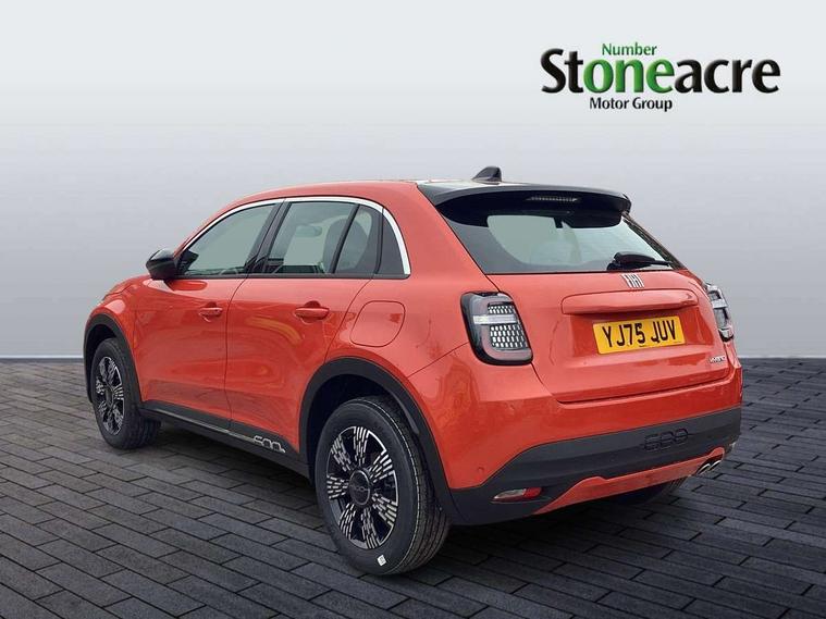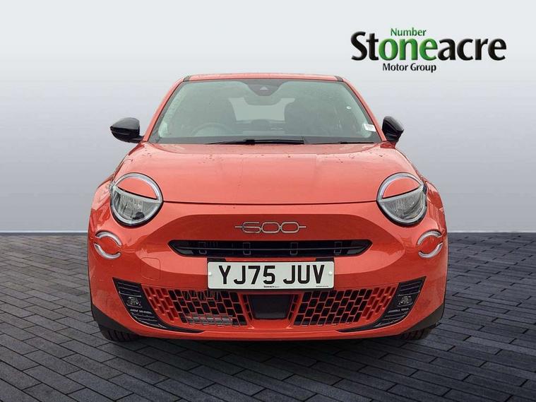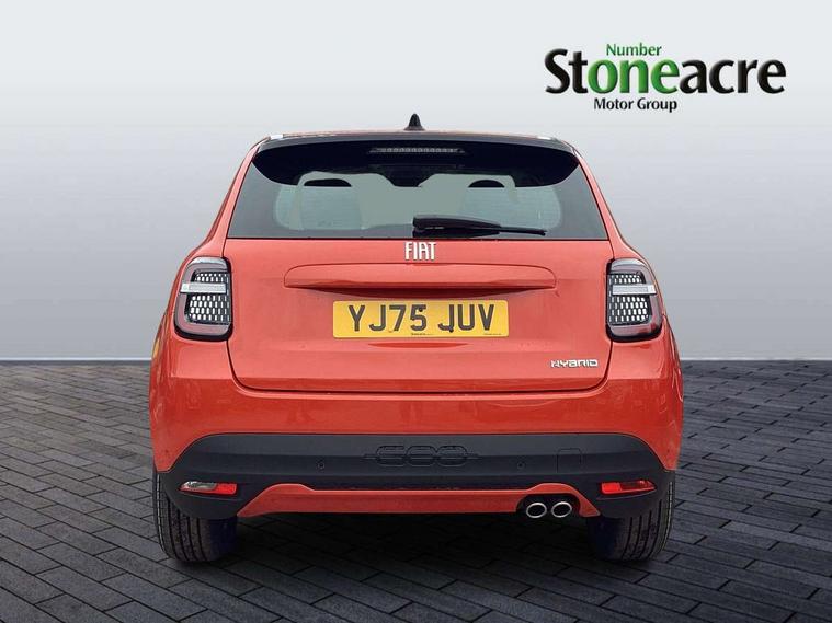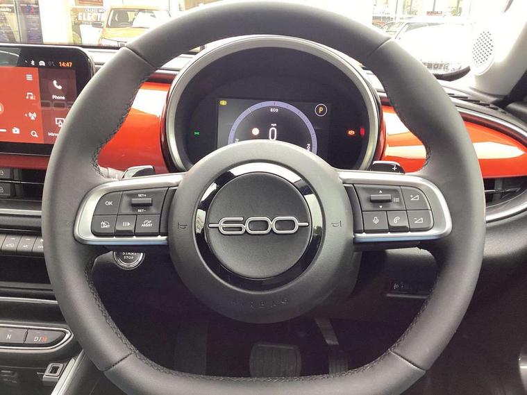7" TFT digital cluster, Bluetooth connectivity, BSRF connectivity box, Connected services, Cruise control, Drowsy driver detection, Emergency E-call assist, Engine emission level default, GSR II step 1, Intelligent speed assist, Lane keeping assistant (LKA), Odometer, Power assist steering, Rain and dusk sensors, Rear parking sensors, Traffic sign recognition, Wireless apple car play/android Auto, Without drive mode selector, L2-AGM 12V battery, 1st Row USB type-A and USB type-C, 4 speaker audio system, Radio, Uconnect infotainment 10.25" touchscreen with DAB, All power windows express Up/Down, Auto dimming frameless rear view mirror, Automatic headlights, Body coloured door handles, Chrome day light openings, Electric adjustable door mirrors, Exterior chrome accents, Front and rear Chromed 600 logo, Gloss black finish B pillar, Gloss black shark fin antenna, Glossy black door mirrors, Heated windscreen wiper blade area, LED 3rd brake light, LED daytime running lights, LED Fog lamps with cornering function, LED front signature lighting, LED front turn indicators and position lights, LED rear lights, LED rear signature lighting, LED reflector headlamps, Matt black side skirts with 600 chromed logo, Rear bumper embossed 600 logo, Rear roof spoiler, Rear side wing doors, Rear wiper, 2 Spoke synthetic leather steering wheel with audio control, 3 rear headrests, 3 seat bench in 2nd row, 4 way manually adjustable passenger seat, 6 way manually adjustable drivers seat, Auxilliary 12V power socket, Body colour dashboard fascia, Chrome interior door handles, Dark metachrome dashboard ring, English handbook, Front centre armrest, Front headrests, Front passenger grab handle, Front seatback pockets, ISOFIX attachment on front passenger and rear passenger seats, Manual climate control, Metachrome central compartment bezel, Monogram fabric upholstery, Paddle shifts, Partial body cover for shipment, Predisposal for accessory upgrade to default tunnel pad cover (dedicated prnd bezel), Rear seat 40/60 split, Single front passenger seat, Smart 15L storage central tunnel with tunnel pad cover, Sunvisor label ciao Fiat, Sunvisors with vanity mirrors, 3x3 point rear seatbelts, 6 airbags, ABS, Autonomous Emergency Brake (AEB) & Vulnerable Road User (VRU) Protection, Child locks on rear doors, Electronic parking brake with auto hold, ESC (Electronic Stability Control), Front passenger airbag deactivation, Seatbelt reminder and pretensioners for all seats, Anti-theft volumetric alarm, Anti-theft wheel bolts, Keyless Go, 17" Diamond cut alloy wheels, Fix and go puncture repair kit,