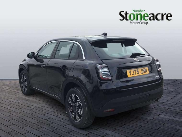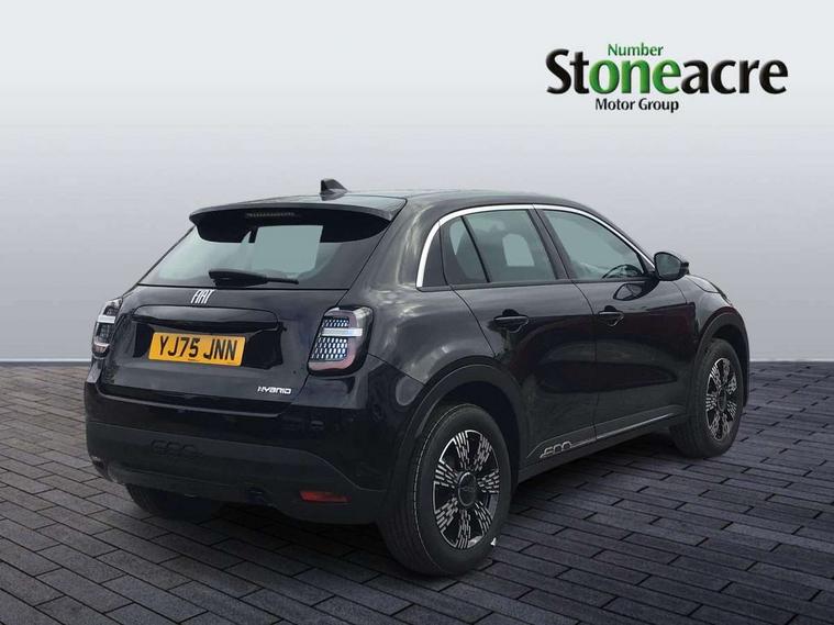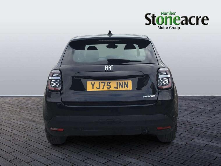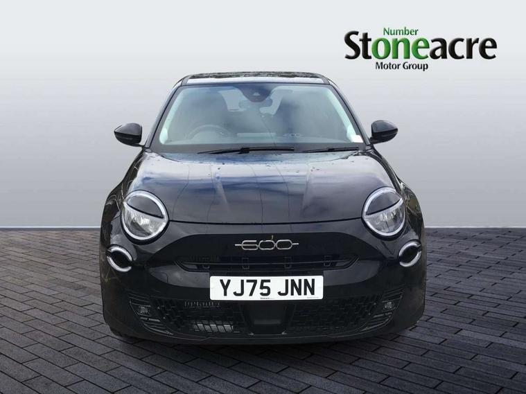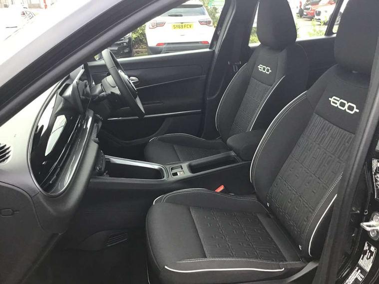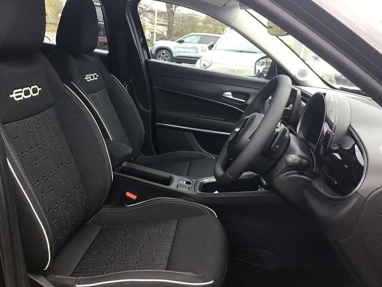 7" TFT digital cluster, Bluetooth connectivity, BSRF connectivity box, Connected services, Cruise control, Drowsy driver detection, Emergency E-call assist, Engine emission level default, GSR II step 1, Intelligent speed assist, Lane keeping assistant (LKA), Odometer, Power assist steering, Rain and dusk sensors, Rear parking sensors, Traffic sign recognition, Wireless apple car play/android Auto, Without drive mode selector, L2-AGM 12V battery, 1st Row USB type-A and USB type-C, 4 speaker audio system, Radio, Uconnect infotainment 10.25" touchscreen with DAB, All power windows express Up/Down, Auto dimming frameless rear view mirror, Automatic headlights, Body coloured door handles, Chrome day light openings, Electric adjustable door mirrors, Exterior chrome accents, Front and rear Chromed 600 logo, Gloss black finish B pillar, Gloss black shark fin antenna, Glossy black door mirrors, Heated windscreen wiper blade area, LED 3rd brake light, LED daytime running lights, LED Fog lamps with cornering function, LED front signature lighting, LED front turn indicators and position lights, LED rear lights, LED rear signature lighting, LED reflector headlamps, Matt black side skirts with 600 chromed logo, Rear bumper embossed 600 logo, Rear roof spoiler, Rear side wing doors, Rear wiper, 2 Spoke synthetic leather steering wheel with audio control, 3 rear headrests, 3 seat bench in 2nd row, 4 way manually adjustable passenger seat, 6 way manually adjustable drivers seat, Auxilliary 12V power socket, Body colour dashboard fascia, Chrome interior door handles, Dark metachrome dashboard ring, English handbook, Front centre armrest, Front headrests, Front passenger grab handle, Front seatback pockets, ISOFIX attachment on front passenger and rear passenger seats, Manual climate control, Metachrome central compartment bezel, Monogram fabric upholstery, Paddle shifts, Partial body cover for shipment, Predisposal for accessory upgrade to default tunnel pad cover (dedicated prnd bezel), Rear seat 40/60 split, Single front passenger seat, Smart 15L storage central tunnel with tunnel pad cover, Sunvisor label ciao Fiat, Sunvisors with vanity mirrors, 3x3 point rear seatbelts, 6 airbags, ABS, Autonomous Emergency Brake (AEB) & Vulnerable Road User (VRU) Protection, Child locks on rear doors, Electronic parking brake with auto hold, ESC (Electronic Stability Control), Front passenger airbag deactivation, Seatbelt reminder and pretensioners for all seats, Anti-theft volumetric alarm, Anti-theft wheel bolts, Keyless Go, 17" Diamond cut alloy wheels, Fix and go puncture repair kit,