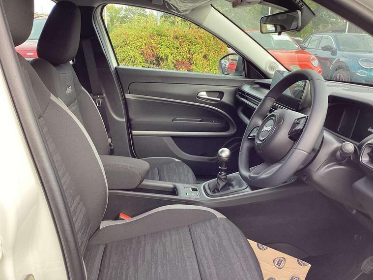 All-Terrain Mode Selector, Apple Carplay/Android Auto with wireless mirroring, BSRF connectivity box, Connectivity services, Driver attention alert system with camera, Drowsy driver detection system, eCall emergency call system, Keyless Start/Engine On Button, Lane keep assist, Odometer, PAS, Quick Guide English, Rear parking sensors, Telematic box and connected services, Traffic sign recognition, Warranty Booklet - UK, Battery default, High efficiency alternator, Audio system with 6 speakers, 3rd brake light, All power windows express Up/Down, Automatic headlights, Black mirror caps, Body colour exterior door handles, Day time running light, Grey skid plates, Halogen rear lights, Heated and electrically folding outside mirrors, LED reflector headlamps, Manual control rear view mirror, Rain sensor, Rear side wing doors, Rear wiper, Wiring preperation for towing group by Mopar, 3 rear headrests, 3 seat bench in 2nd row, 4 way manually adjustable passenger seat, 6 way manually adjustable drivers seat, Central console dividers x2, Cloth upholstery, Driver and front passenger sunvisor with vanity mirror, Foldable second row seats 40/60 - Fix and Fold, Front central armrest with storage, Front head restraints, Front passenger grab handle, Front passenger isofix child seat attachment, Front seat backrest pocket, Full black upper interior and headlining, I am Jeep label, Manual air conditioning, Partial body cover for shipment, Single front passenger seat, Anti-lock braking system (ABS), Child locks on rear doors, Electric parking brake, ESC - Electronic Stability Control + traction control, Hill descent control, Kit fix and go predisposition/housing only, Rear seat ISOFIX, Three 3 point rear seatbelts, Vulnerable road user recognition - Pedestrian/Cyclist incl. AEB, Volumetric anti theft alarm, 16" alloy wheels painted in medium glossy grey with summer chainable, Fix and go tyre repair kit,