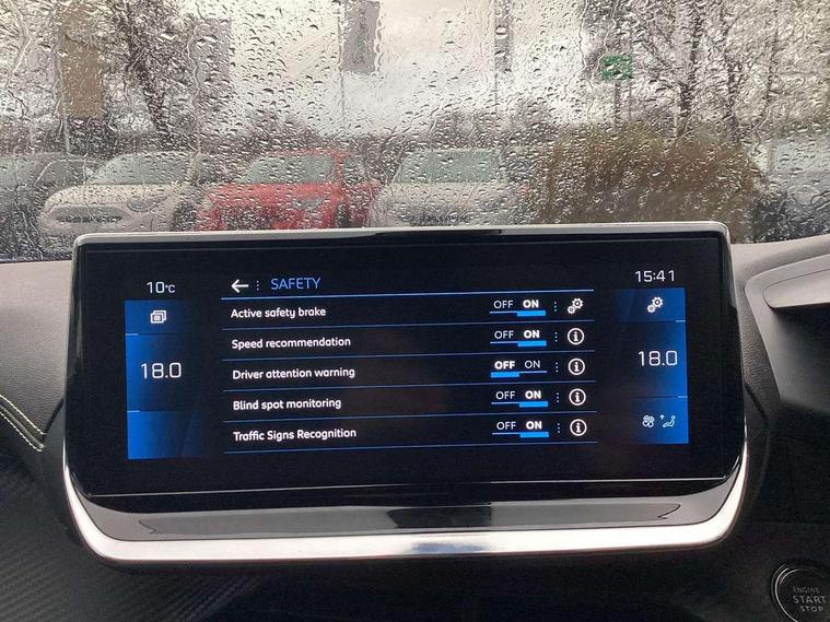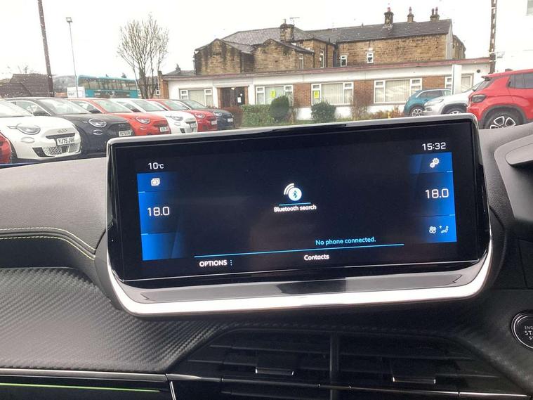 Blind spot monitoring, Bluetooth telephone facility, Connected 3D navigation, Driver attention warning, Exterior temperature indicator with ice warning, Front and rear parking sensors, Lane keep assist, Mirror screen with mirror link, apple carplay and android auto, Multi function trip computer, Peugeot connect SOS and assistance, PEUGEOT i-Cockpit with 10" capacitive colour touchscreen, PEUGEOT i-Cockpit with compact steering wheel, PEUGEOT i-Cockpit with configurable 3D headup instrument panel, Smart phone docking station, Smartphone charging plate, Speed limit recognition and recommendation, Visio Park 1 with 180 degree Colour reversing camera, 2 front USB socket with USB-C, 2 USB sockets in rear, DAB Radio (Digital Audio Broadcasting), Voice recognition for radio, navigation and telephony features, 2 X Rear number plate lights, Automatic front windscreen wipers, Black diamond roof, Black front wing trim with gloss black detail and GT badging, Body coloured exterior door handles, Dark tinted Rear side and tailgate windows, Diamond black mirror shells, Diamond black rear spoiler, Electric heated and power folding door mirrors, Frameless electrochrome interior rear view mirror, Front bumper - Silver lower trim, Full LED headlights with smartbeam assist, Gloss black finish on B pillar, Gloss black longitudinal roof rails, Gloss black rear cluster connecting strip, Gloss black roof bars, Gloss black window surround, GT model designation badging on tailgate, Headlights left on audible warning, LED daytime running lights with 3 claw headlight with distinctive tooth design, LED front fog lamps with remote cornering function, LED side indicator lights integrated into door mirrors, Model designation badges front and rear, One touch electric front/rear windows with pinch protection, Radiator grille - Dark chrome chequered and gloss black edge trim, Radiator grille - gloss black top edge trim, Rear full LED 3D peugeot signature claw effect lights with daylight function, Rear reversing lights, Rear windscreen wiper triggered automatically in reverse gear, Stainless steel door sill scuff plates, Tailgate with heated rear windscreen and wiper blade, Twin chromed exhaust pipes, Wheel arch extensions, 1/3 to 2/3 split folding rear seats, 12V socket, 8 Colour personalisable ambient lighting, Aluminium pedals, Automatic air conditioning with pollen and active carbon filter, Central front armrest with storage compartment, Driver and front passenger sport seats, Electric power steering with reach and rake adjustable steering column, Front and rear carpet mats in black with lime green stitch detail, Front LED interior light with 2 reading spotlights and rear interior light with timer, Front passenger seat manual adjustment - height, longitudinal and back rest angle, Heated front seats, High centre console, ISOFIX child seat mounting points on passenger seat, Lime green contrast stitching to front centre console, door panels and dashboard facia, Mistral full-grain perforated leather steering wheel with Lime Green stitch detail and satin chrome 'GT' emblem, Modular boot floor, Piano keys: Gloss black and chrome toggle switches to access main functions of the vehicle and touchscreen functions, Roof lining - Mistral black, Seatbelt unfastened on the move audible and visual alert for front and rear seats, Visibility pack - 2008, 2x 2nd row ISOFIX child seat mountings, ABS (Anti-lock Braking System) with EBD (Electronic Braking Distribution) and EBA (Emergency Braking Assistance), Acoustic vehicle alerting system, Active safety brake with night function/cyclists/pedestrians, Adaptive driver and front passenger airbags with passenger airbag deactivation function, Child locking functionality on rear doors, Driver/front passenger side airbags, Electric parking brake, ESP (Electronic Stability Program) + Hill Start Assist, Front and rear curtain airbags, Front and rear disc brakes, Front and rear three-point retractable seatbelts, with force limiters, Front optimised safety headrests and rear retractable headrests (x3), height adjustable, Tyre pressure sensor, Automatic door locking when moving off, Automatic hazard light activation upon heavy brake application, Deadlocks, Electronic code immobiliser, Thatcham Cat.1 alarm, Carbon effect Dashboard, front and rear door panel finish, 17" Salamanca diamond cut alloy wheels,