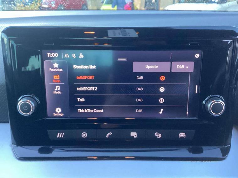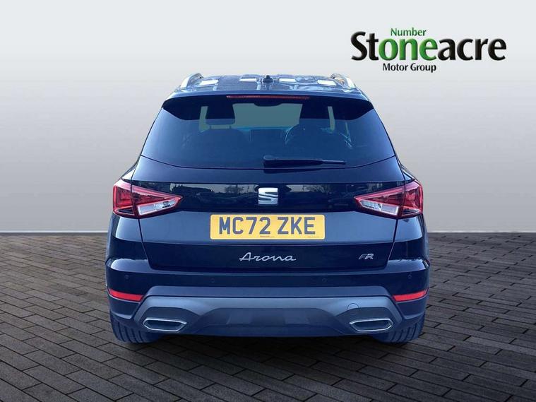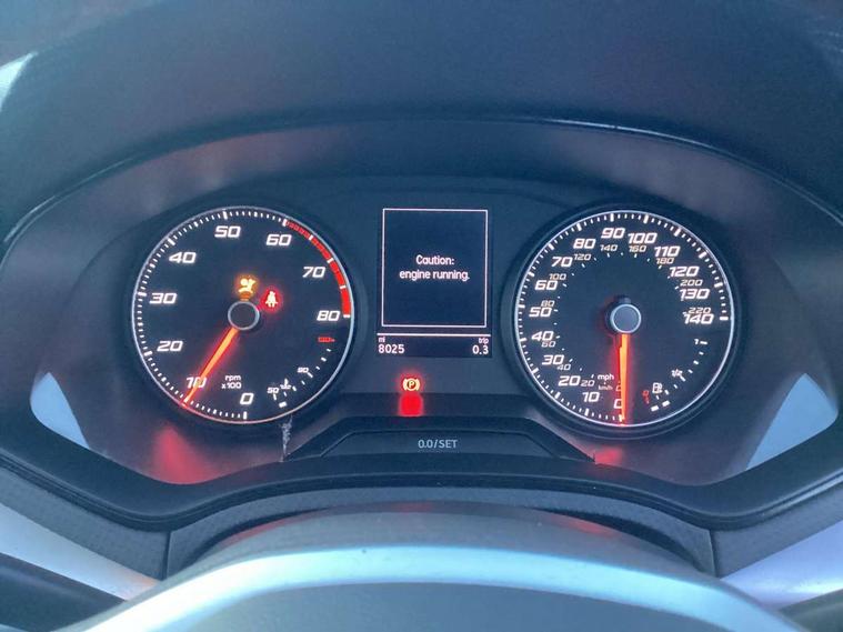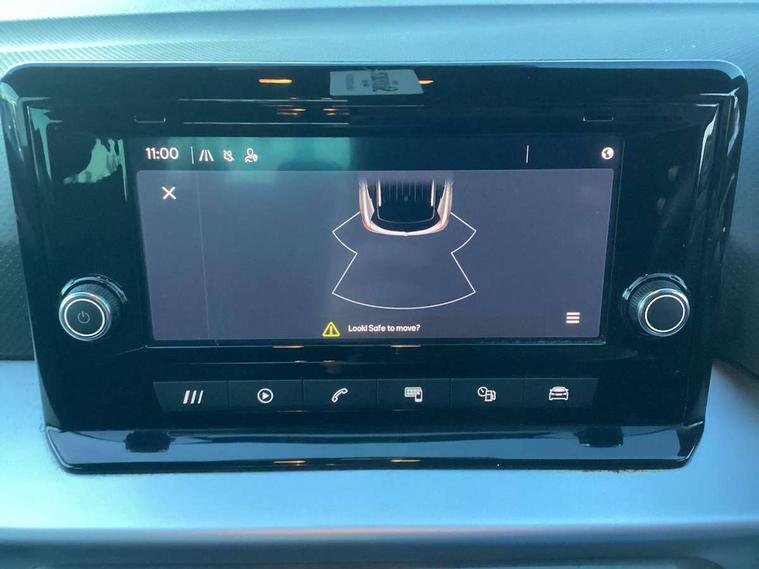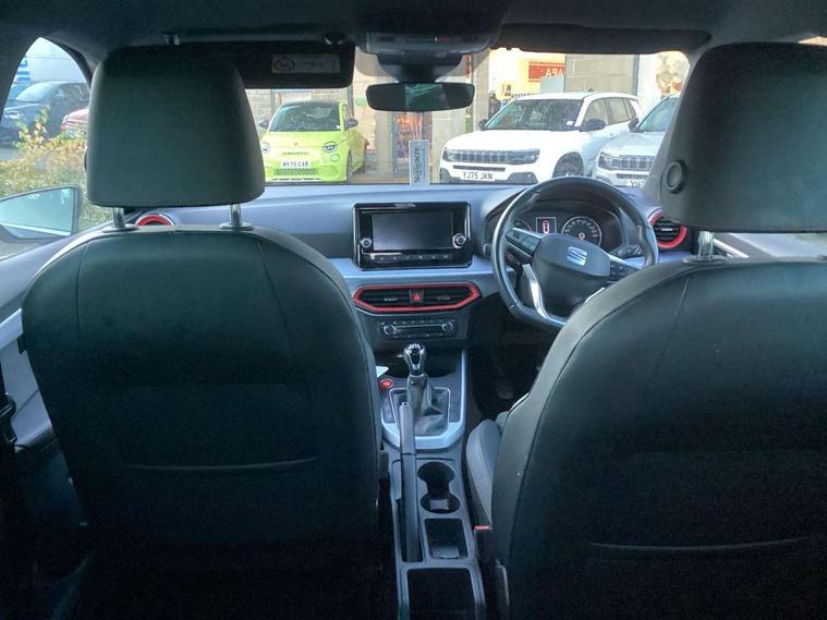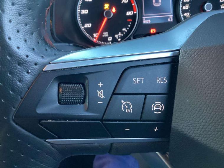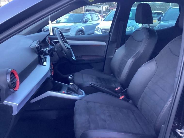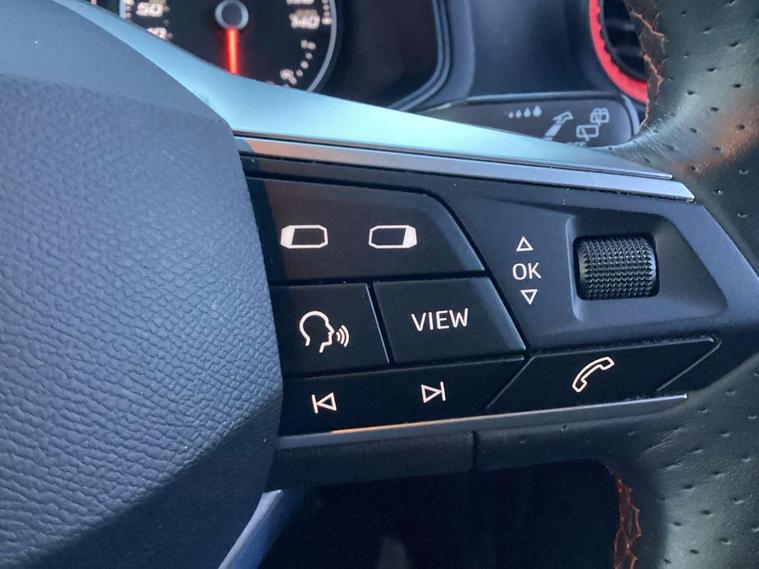 'Lights On' Reminder warning buzzer, Analogue cockpit with physical dials, Digital clock, E-call, Electric speed sensitive power steering, Full Link Smartphone Integration with Mirror Link, Apple Car Play, Google Android Auto with USB Type C cable for Apple and Android compatibility, Lane keeping system, Low fuel warning light, Outside temperature display, Rear parking sensor, RPM counter, Seat connect with safety, service and remote, SEAT Drive profile - Four different models normal-sport-eco-individual, steering response, throttle response, Trip computer, Wireless phone charger, Bluetooth interface for hands free and audio streaming, DAB digital radio and AM/FM radio, Media system with 8.25" colour touchscreen with USB port (type c), Steering wheel mounted audio controls, Anti theft roof antenna, Automatic activation of hazard warning lights, Body coloured bumpers, Body coloured door handle inserts, Chrome roof rails and window surrounds, Dark tinted rear windows, Dimming rear view mirror, Electric front/rear windows, Electrically adjustable and heated door mirrors, Front fog lights with cornering function and rear fog light, FULL LED automatic headlights with dynamic headlight range control, coming and leaving home, LED daytime running lights, LED rear tail lights and licence plate lights, Protective side mouldings, Rear side wing doors, Rear spoiler, Rear window wash/wipe, Roof colour door mirrors, Third brake light, Twin exhaust pipe styling hidden exhaust pipe, Visible VIN plate, Windshield wiper with intermittent control and potentiometer, 2 cupholders, 3 seat bench in 2nd row, 60/40 split folding rear seat, Aircare filter, Black interior roof, Double boot floor, Driver sunvisor with covered mirror + card holder, Dual zone climate control, Front comfort seats, Front courtesy light with 2x front and 2x rear reading lights, Gear shift indicator, Height adjustable front seats, Height/reach adjustable steering column, Illuminated boot, Instrument lighting with brightness control, Interior ambient lighting, Interior light in footwell, central console and door panel, ISOFIX points in outer rear seats with top tether anchorage points, Microsuede cloth upholstery, Passenger sunvisor with vanity mirror, Perforated flat bottomed leather steering wheel/gear knob/handbrake with red stitching and FR logo, Single front passenger seat, Two front and three rear height adjustable headrests, Interior chrome pack - Arona, 3 point seatbelts on all rear seats, ABS, Active front headrests, Child locks on rear doors, Driver and front passenger airbags with front passenger airbag de activation, front side and curtain airbags, Electronic stability control, Emergency Brake Assist (EBA) and front assist, Front and rear seatbelt reminder, Hill hold control, Multi-Collision braking, Tiredness recognition system, Traction control, Tyre pressure monitoring system, Alarm with back-up horn, Electronic engine immobiliser, KESSY Keyless entry and go, Locking wheel bolts, Remote central locking + deadlocks, Tow away protection, Titan black dashboard,