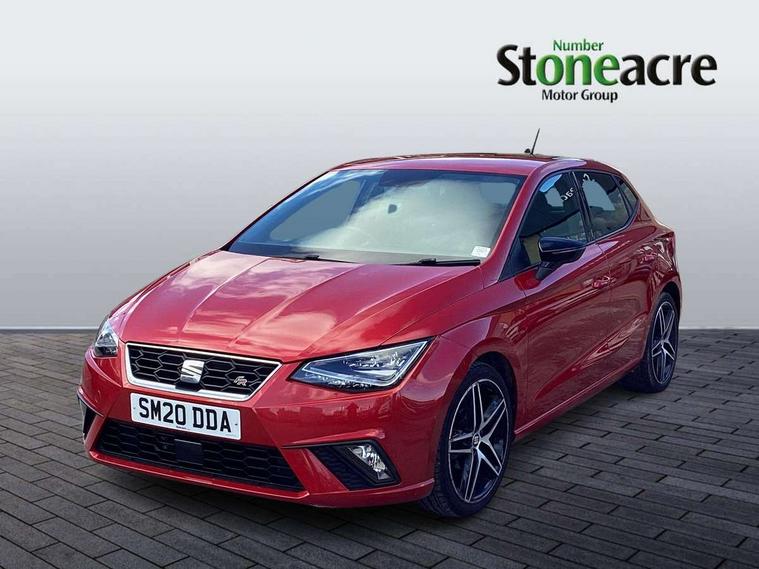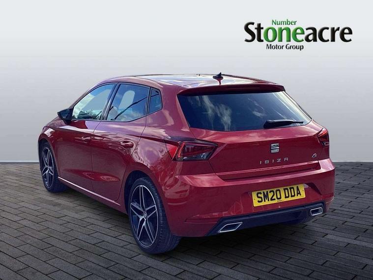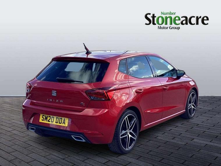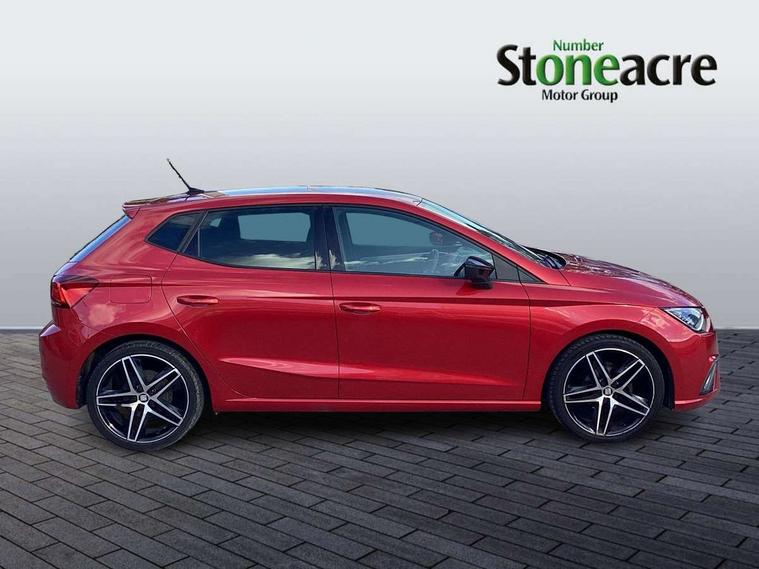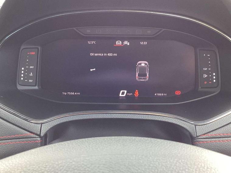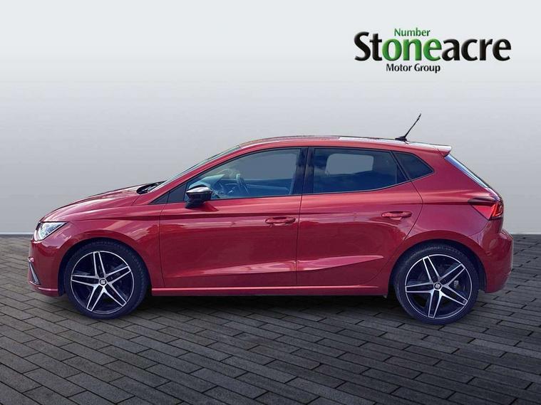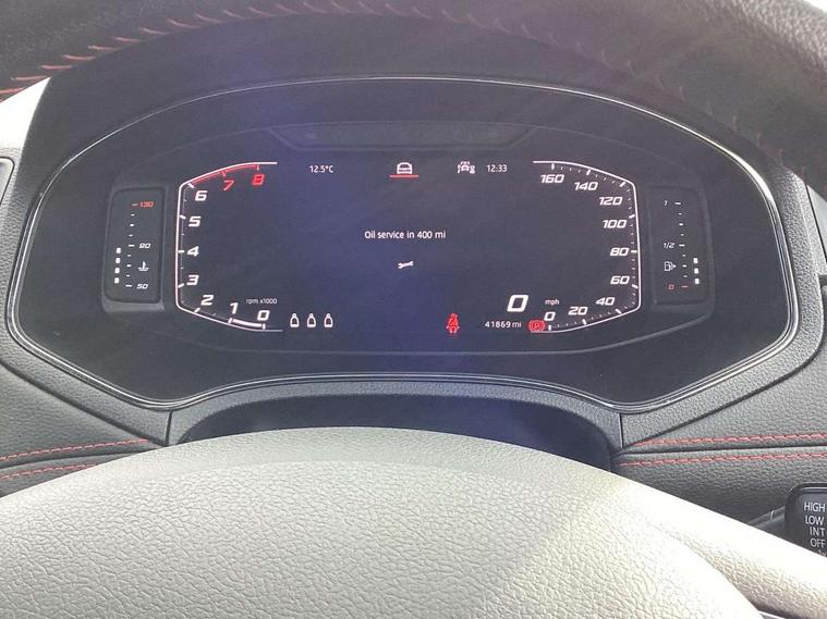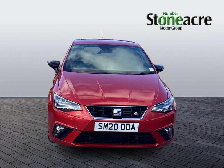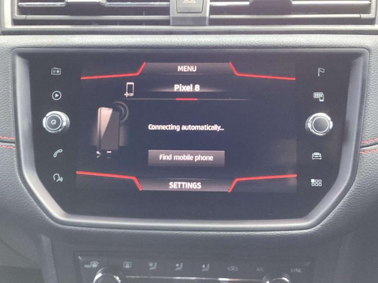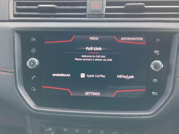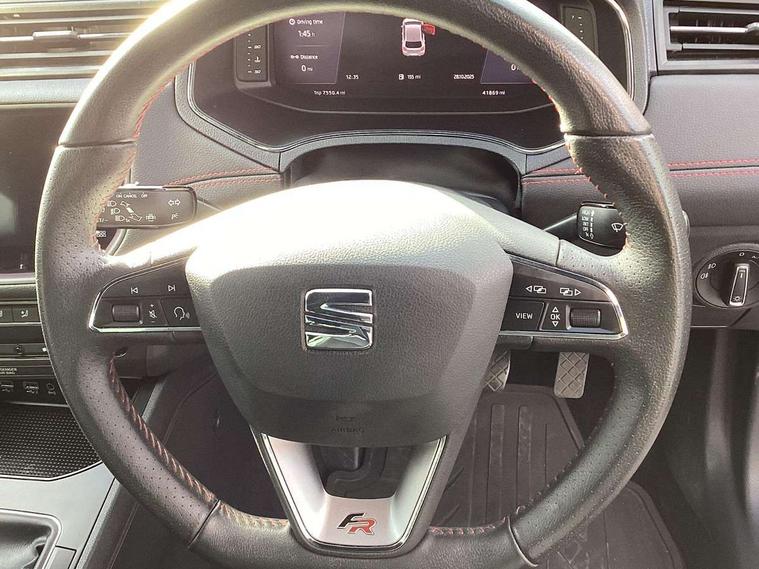 'Lights On' Reminder warning buzzer, Bluetooth Handsfree Phone Connection, Cruise control, Digital clock, Digital cockpit, Full Link Smartphone Integration with Mirror Link, Apple Car Play, Google Android Auto, Low fuel warning light, Outside temperature gauge, Power Steering, Satellite navigation system with 3D mapping, 8" touch screen, voice control and additional USB port, SEAT Drive profile, SEAT logo boot release, Trip computer, Sports suspension, 6 speakers, Auxiliary input socket, CD player, Digital Audio Broadcast (DAB) Tuner, Radio/MP3 player, SD card slot, SEAT USB media cable, Steering wheel mounted controls, USB port, Anti theft roof antenna, Auto dimming rear view mirror, Automatic headlights, Automatic rain sensing wipers, Body colour bumpers, Body colour door handles, Brilliant black door mirrors, Chrome front grille frame, Chrome grille, Coming/leaving home lighting function, Cornering front fog lights, Dark tinted rear windows, Electric folding door mirrors, Electric front windows, Electric headlight adjustment, Electrically adjustable and heated door mirrors, Exclusive FR rear bumper, Full LED headlights, LED daytime running lights, LED tail lights, Rear fog lights, Twin exhaust pipes, 3 rear headrests, 60/40 split folding rear seat, Door and steering wheel ice metal decorative inserts, Driver's sunvisor with ticket holder/vanity mirror, Dual zone climate control, Dust/pollen filter, Flat bottomed perforated leather steering wheel with red stitching and FR logo, Front courtesy lights, Front cupholders x 2, Front reading lights, Gear shift indicator, Glovebox, Height adjustable driver's seat, Height adjustable front/rear head restraints, Height adjustable passenger seat, Height/reach adjust steering wheel, Illuminated boot, Instrument lighting with brightness control, Leather dashboard, Leather handbrake, Microsuede cloth upholstery, Multi-colour ambient interior lighting, Passenger sunvisor, Rear top tether child seat ISOFIX attachment, Sports seats, Full LED headlight pack - Ibiza, 3 point seatbelts on all 3 rear seats, ABS, Active front headrests, Child locks on rear doors, Curtain airbags, Driver/Front Passenger airbags, ESP+EBA, Front assist (AEB), Front passenger airbag deactivation, Front side airbags, Hill hold control, Multi-Collision braking, Seatbelt warning, Tiredness recognition system, Tyre pressure monitoring system, Electronic engine immobiliser, Locking wheel bolts, Remote central locking + deadlocks, Volumetric alarm with back up horn, 18" Performance machined bi-colour alloy wheels,
