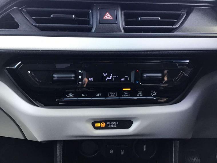 Adaptive cruise control, Automatic start/stop system, Blind spot monitoring, Colour LCD information display, Digital clock, Driver monitoring system, eCall, Fuel consumption display (average/instantaneous) and range display, Intelligent speed control support, Lane departure prevention, Lane departure warning system, Lane keeping assist (LKA), Low fuel level warning light, Navigation system, Outside temperature display, PAS, Rear cross traffic alert, Rear parking camera, Rear parking sensors, Remote fuel cap release, Smartphone integration with Apple CarPlay and Android auto, Suzuki connect, Tailgate, Traffic sign recognition, Weaving alert, 4 speakers + 2 tweeters, 9-inch infotainment display, Auxiliary input socket, Bluetooth audio streaming, DAB Digital radio, Steering wheel audio controls, USB Type A and C, 'Guide me home' headlamps, 1 speed with intermittent rear wiper + washer, 2 speeds front wiper with intermittent + washer, Automatic headlights, Black coloured A & B pillars, Black Upper and lower front grille, Body colour door mirrors and handles, C pillar trim moulding, Electric door mirrors, Electric front windows, Electric rear windows, Green tinted glass, Heated door mirrors, High beam assist, LED daytime running lights, LED High mounted stop light, LED position lamps, LED projector headlamps, LED rear combination lamp, Manual headlamp level control, Rain sensor, Rear fog lights, Rear privacy glass, Rear side wing doors, Rear spoiler, Side spoiler, 1 cup holder in rear, 12V Accessory socket in front console, 2 cup holders in front, 2 Isofix seat anchors, 3 bench rear seats in 2nd row, 3 rear head restraints, 3 spoke leather covered steering wheel, 60/40 split rear seats, Accessory socket, Centre console storage, Centre lower box, Child seat tether anchorages x 2, Chrome handbrake release button, Chrome interior door handles, Cloth upholstery, Door pockets with bottle holder, Driver/passenger sunvisors with ticket holders + vanity mirrors, Front cabin lights, Front headrests, Front map light, Front passenger side assist grip, Glovebox, Heated front seats, Heater, Height adjustable driver's seat, Luggage area lamp, Manual air conditioning with digital control panel, Material door trim ornament, Parcel shelf, Passenger seat back pocket, Pollen filter, Single front passenger seat, Tilt adjustable steering wheel, Tilt/telescopic adjustable steering wheel, 3 point ELR seatbelts for centre seat, 3 point ELR seatbelts front and rear, ABS+EBD+Brake assist, Curtain airbags, Driver airbag, Dual sensor brake support, ESP + traction control, Front and rear seatbelt reminder, Front passenger airbag, Front passenger airbag deactivation, Front seatbelt pretensioners with force limiters, Hill hold control, Rear child proof door locks, Rear seatbelts with pre-tensioners and load limiters, Side airbags with incorporated into front seats, Tyre pressure indicator, Deadlocks, Freewheeling key cylinders, Immobiliser, Keyless entry and start, Light - on and Key in reminder, Locking wheel nuts, Remote central locking, Painted instrument panel ornament, 16" Painted alloy wheels, Emergency flat tyre repair kit,