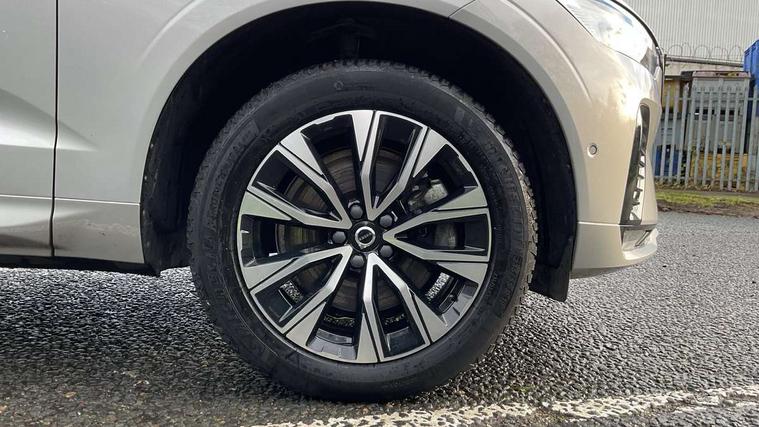12.3" Progressive Driver Display, 360 degree surround view parking camera with side proximity sensors, 9" centre console touch screen, Adjustable steering wheel force, Bluetooth handsfree system, Driver alert control with lane keeping aid, Driver assistance (pilot assist and adaptive cruise control), Driver awareness - Blind spot information system with steer assist, cross traffic alert with autobrake and rear collision warning and mitigation, Emergency services call system, Front and rear park assist, Google Automotive Services, Oncoming Lane Mitigation, Service interval indicator, Speed limiter, Speed sensitive steering, Trip computer, Volvo on call with App, Wireless/Inductive Mobile Phone Charging, 8 speed automatic transmission with start/stop + manual change functions, Dynamic chassis, DAB Digital radio, Premium Sound by Harman Kardon, dirac unison, dolby pro logic II surround sound, 13 speakers/600W output and fresh air subwoofer, Steering wheel remote infotainment controls, Adaptive brake lights with high level LED brake lights, Auto dimming interior + exterior mirrors, Automatic headlight levelling system, Automatic LED Headlights + Active high beam incorporating daytime running lights, Electric adjustable/heated/auto power folding door mirrors, Electric front+rear windows, Front aluminium tread plates, Heated front windscreen, High gloss black door mirrors and window surround, High gloss black front and rear bumper decoratives, High gloss black mesh front grille with high gloss black surround, Home safe and approach lighting, Integrated roof rails in high gloss black, LED front fog lights, Puddle lights, Rain sensor with automatic windscreen wiper activation, Rear side wing doors, Rear wiper, Roof antenna, Roof spoiler, Tinted windscreen, Visible VIN plate, 12V socket in front tunnel console and luggage compartment, 3 seat bench in 2nd row, 4 Zone electronic climate control, A-pillar parking ticket holder, Air purifier particulate matter (PM) 2.5 filter, B Pillar ventilation, Bright metal luggage threshold, Centre console cupholders and storage, Charcoal floor mats, Front and rear courtesy lights, Front and rear door pocket illumination, Front cupholder illumination, Front footwell illumination, Front reading lights, Front seat cushion extensions, Glovebox compartment with illumination, Head restraints for all seats, Heated front seats, Heated steering wheel, Height/reach adjustable steering column, Illuminated luggage compartment, Illuminated vanity mirrors + ticket holder, ISOFIX attachment on outer rear seats, Load cover, Load protection net, Multi directional lumbar support, Power driver seat with memory + exterior mirrors memory, Power height adjustable passenger seat, Rear armrest with cupholder, Rear footwell and front and rear side step illumination, Rear seat concealed storage, Single front passenger seat, Tailgate illumination and ambient door lighting, Underfloor stowage compartment, Versatile split folding rear seat - 60/40, 5 three point seatbelts, City safety with steering support with Pedestrian + cyclist + large animal detection + front collision warning with full auto brake, Drivers knee airbag, Dual stage driver/passenger airbags, Electronic parking brake with auto hold, First aid kit, Front seats SIPS airbags, Hill descent control - Off-road drive mode, Hill start assist, IC (Inflatable Curtains) - Full Length, Passenger airbag cut-off device, Power child locks on rear doors, Road sign information display, Run off Road Mitigation, Run off Road Protection, Seatbelt reminder and pretensioners, SIPS (Side Impact Protection System), Slippery road and hazard light alert, Stability and Traction Control with Spin control, Engine Drag Control and Corner Traction Control, Tyre pressure monitoring system, Vehicle deceleration control with Anti-lock Brake System, Electronic Brake Distribution and Emergency Brake Assist, Warning triangle, WHIPS whiplash protection system - front, Anti-theft alarm including immobiliser/volume sensor + level sensor, Care key with user defined top speed, Key integrated remote control central locking + fuel flap with deadlocking system and auto open/close power windows, Keyless Drive (includes Keyless Entry and Keyless Start) with Handsfree Tailgate Opening/Closing, Locking wheel nuts, Private locking for tailgate,