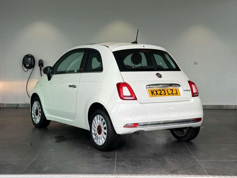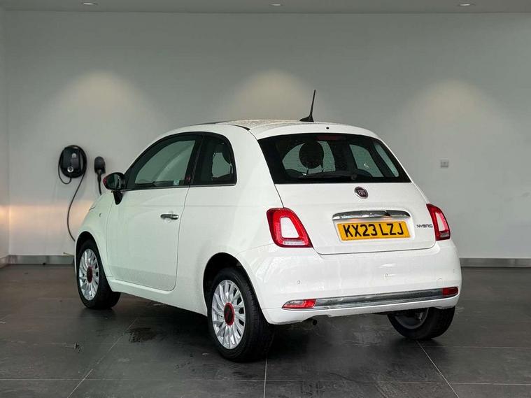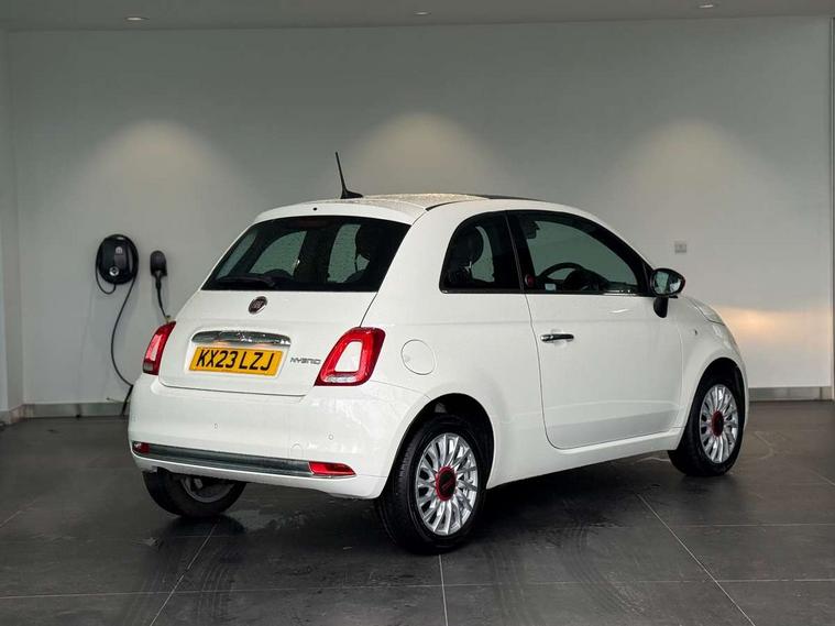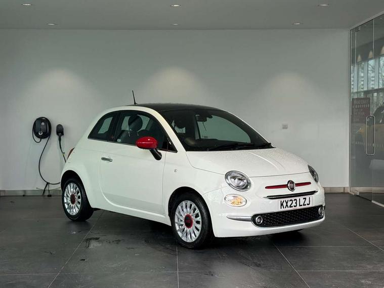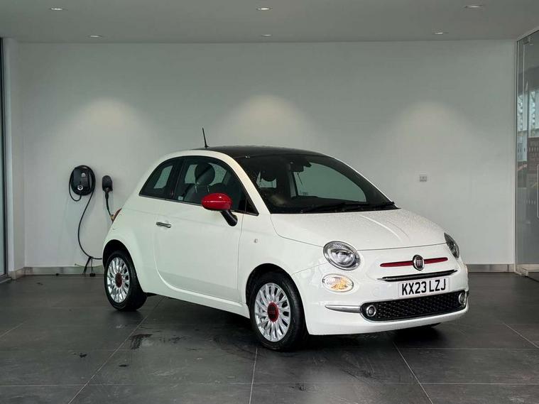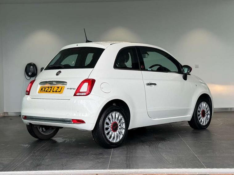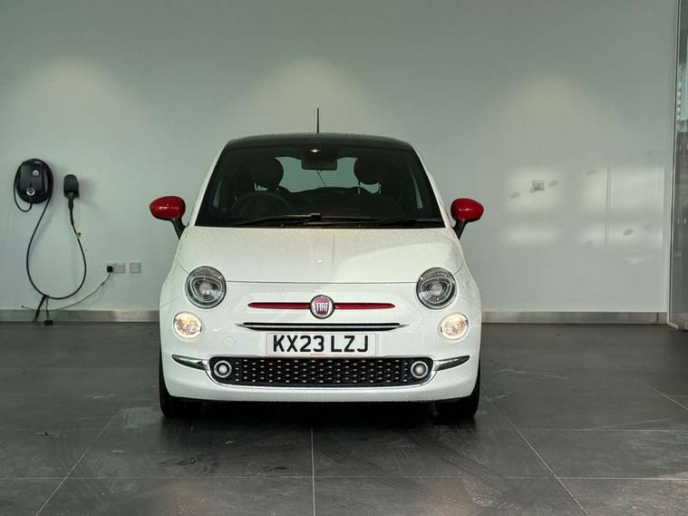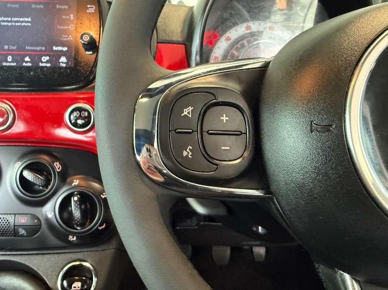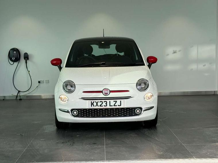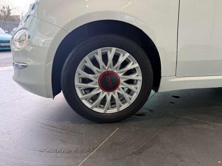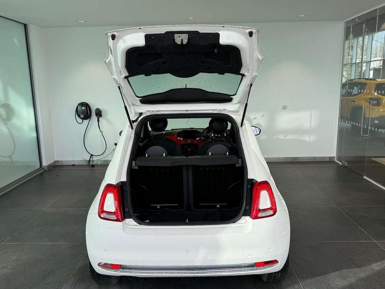 Apple car play/Android Auto, Cruise control, E-call, External temperature gauge, Power assist steering, Rear parking sensor, Speed limiter, Stop/start system, Trip computer, 4 speakers, 7" HD Touchscreen Radio, Bluetooth, USB and DAB, Rear speakers, 3rd brake light, Auto headlights, Body colour bumpers, Chrome plated exterior door handles, Dusk and rain sensors, Electric front windows, Electrically adjustable and heated door mirrors, Fixed glass sunroof with sunblind, Front fog lights, Halogen headlamps, Heat insulated glass, Heated rear windows with wash wipe, LED daytime running lights, Rear side wing doors, Rear wiper, Red logo on B-Pillar, Unique exterior red finished door mirror covers, Unique exterior red finished front logo and moustache, Unique exterior red finished wheel centre hubcaps, 1 passenger grab handle, 2 seat bench in second row, 50/50 split folding rear seats with height adjustable rear headrests, Air conditioning, Auxilliary 12V power socket, Chrome kit, Fabric upholstery with red detailing, Front headrests, Height adjustable drivers seat, Height adjustable steering wheel, Isofix child seat preparation, Red dashboard and specific floor mats by mopar with red logo, Single front passenger seat, Specific floor mats with red logo, Techno leather steering wheel with audio controls, Red kit pack - 500/500C, 7 airbags - Driver, passenger, side, window and drivers knee airbags, ABS/EBD, ESC + ASR/MSR + HBA + Hill holder, Manual passenger airbag deactivation function, Traction control, Tyre pressure monitoring system, Automatic door locking, Immobiliser, Locking fuel filler cap, Remote central locking, 15" Alloy wheels,