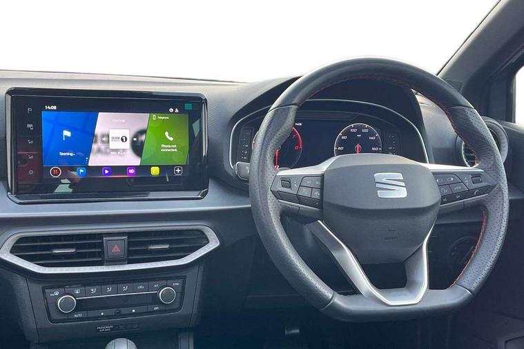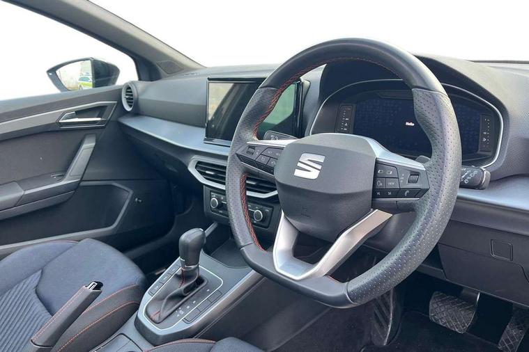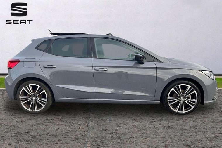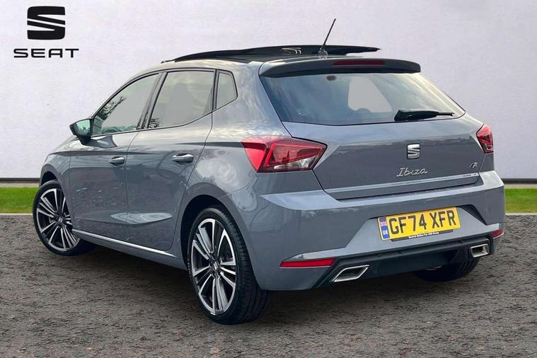 'Lights On' Reminder warning buzzer, 10" Digital cockpit, 9.2" touchscreen navigation system with type C USB socket, Voice control and DAB/AM/FM radio, Auto start and stop system, Bluetooth audio streaming with handsfree system, Digital clock, E-call, Full link smartphone integration with mirror link, wireless apple carplay, Google android auto + USB Type C cable for apple and android devices, Lane assist, Low fuel warning light, Outside temperature gauge, Power Steering, Rear parking sensor, Seat connect plus with safety, service, remote and online, SEAT drive profiles and ECO function, SEAT logo boot release, Speed limiter, Traffic sign recognition, Trip computer, Sports suspension, Auxiliary input socket, Beats audio system with 18" space saver spare wheel and luggage compartment lining, Radio/MP3 player, SD card slot, Steering wheel mounted controls, Anti theft roof antenna, Auto dimming rear view mirror, Automatic rain sensing wipers, Black door mirror caps, Body colour bumpers, Body colour door handles, Brilliant black window surrounds, Dark tinted rear windows, Doorstep with anniversary limited edition, Electric adjustable/heated/folding door mirrors, Electric front windows, Electric headlight adjustment, Electric panoramic sunroof, Electric rear windows, Front/rear fog lights, FULL LED automatic headlights with dynamic headlight range control, coming and leaving home, LED daytime running lights, Lassered lettering Anniversary Edition in B pillar, LED 3rd brake light, LED tail lights, Rear roof spoiler with FR twin exhausts, Rear side wing doors, Rear wiper, 3 seat bench in 2nd row, 60/40 split folding rear seat, Ambient interior lighting, Chrome detailing and black headlining, Dual zone climate control with combination filter, Front courtesy lights, Front cupholders x 2, Front reading lights, Gear shift indicator, Glovebox, Grey interior air vents, Grey interior styling, Height adjustable front and rear headrests (five), Height adjustable front seats, Height/reach adjust steering wheel, Illuminated air vent surrounds, Illuminated boot, Instrument lighting with brightness control, Isofix, Leather multifunction flat bottomed sports steering wheel with gearshift paddles, Microsuede cloth upholstery, Passenger sunvisor, Single front passenger seat, Sports bucket seats, Storage pockets on back of front seats, Sunvisors with mirror and driver side card holder, Safety and driving pack (S) - Ibiza, 3 point seatbelts on all 3 rear seats, ABS, Active front headrests, Child locks on rear doors, Electronic stability control, Energy recovery system, Front driver and passenger side airbags with curtain airbag and front passenger airbag deactivation, Hill hold control, Multi-Collision braking, Seat belt reminder for front and rear seats, Tiredness recognition system, Tyre pressure monitoring system, KESSY Keyless entry and go, Locking wheel bolts, Perimeter alarm and interior monitoring inc.backup horn, tow away protection and electronic engine immobiliser, Remote central locking + deadlocks, 18" Alloy wheels in cosmo grey,