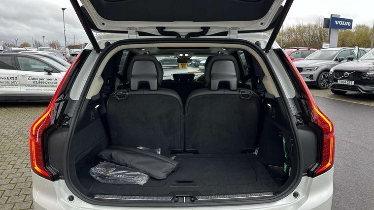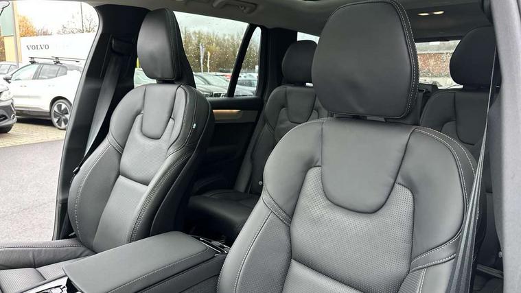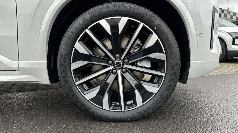 11.2" centre console touch screen, 12.3" Progressive Driver Display, 360 degree surround view parking camera with side proximity sensors, Adjustable steering wheel force, Apple carplay (wired), Bluetooth handsfree system, Drive mode settings, Driver alert control with lane keeping aid, Driver assistance (pilot assist and adaptive cruise control), Driver awareness - Blind spot information system with steer assist, cross traffic alert with autobrake and rear collision warning and mitigation, Driver monitoring system, Emergency call service, Front and rear park assist, Google Automotive Services - Navigation with Voice recoginition and google assistant, Handsfree power tailgate opening and closing, Intelligent speed assistance, Oncoming Lane Mitigation, PAS, Power operated tailgate, Service interval indicator, Speed sensitive steering, Trip computer, Volvo on call, Wireless/Inductive Mobile Phone Charging, 6m 3 phase 16amp Type 2 / mode 3 charge cable, 8 speed automatic transmission with start/stop + manual change functions, Active four C chassis - four corner adaptive dampers with electronic air suspension, Electric rear axle drive, Lithium-ion battery, On board charger - 6.4 kW 2 phase/3.7kW single phase, Recharging port located in nearside front wing, DAB Radio (Digital Audio Broadcasting), Low speed exterior sound speaker, Premium Sound by Harman Kardon, dirac unison, dolby pro logic II surround sound, 13 speakers/600W output and fresh air subwoofer, Steering wheel remote infotainment controls, Adaptive brake lights with high level LED brake lights, Auto dimming interior + exterior mirrors, Auto folding and heated power door mirrors, Automatic headlight levelling system, Automatic matrix LED headlights with Adaptive shadow technology and Active high beam, incorporating Day running lights, Body colour bumpers, Dark tinted windows - rear side windows and rear screen, Front and rear power windows, Headlight cleaning system, Heated front windscreen, High gloss black door mirrors and window surround, High gloss black front and rear bumper deco, High gloss black front grille and deco, Home safe and approach lighting, Integrated roof rails in high gloss black, Power glass tilt and slide panoramic sunroof with sun curtain, Puddle lights, Rain sensor with automatic windscreen wiper activation, Rear side wing doors, Rear wash/wipe with intermittent wipe setting, Roof antenna, Roof spoiler, Visible VIN plate, 12V socket in luggage compartment, 2nd Row centre armrest with and cupholders, 3 Spoke tailored sport steering wheel with chrome trim, 4 zone electronic climate control with Clean zone air quality system + pollen filter, A-pillar parking ticket holder, Air conditioning for 3rd row of seats, Air purifier PM2.5, Ambient door and instrument panel lighting, B Pillar ventilation, Bright metal luggage scuff plate, Centre console cupholders and storage, Floor mats, Front and rear courtesy lights, Front and rear door pocket illumination, Front footwell and side step illumination, Front headrests, Front reading lights, Front seat cushion extensions, Front seat power side support, Front tunnel storage illumination, Glovebox compartment light, Heated front seats, Heated rear seats, Heated steering wheel, Height/reach adjustable steering column, Illuminated front and rear aluminium tread plates, Illuminated luggage compartment, Illuminated tailgate, Illuminated vanity mirrors + ticket holder, Inner door release handle illumination, Isofix outer rear child seat preparation in 2nd row, Load cover, Load protection net, Lockable glovebox compartment, Luggage compartment divider with grocery bag holder, Nappa soft leather perforated /ventilated upholstery, Outboard armrest with cupholder and storage for third row passengers, Power driver seat with multi directional lumbar support and memory for seat and exterior mirrors, Power folding 2nd row headrests, Power passenger seat with multi directional lumbar support and memory, Rear footwell and side step illumination, Rear headrests, Rear reading lights, Second row integrated child seat for centre seat, Single front passenger seat, Textile headlining, Three 2nd row individual folding passenger seats with fore/aft adjustment, Two 3rd row individual folding passenger seats, Underfloor luggage compartment storage, 7 three point seatbelts, City safety with steering support includes pedestrian, cyclist detection, front collision warning with full auto brake and rear auto brake, Driver and passenger airbags, Drivers knee airbag, First aid kit, Front seats SIPS airbags, Hill descent control - off drive mode, Hill start assist, IC (Inflatable Curtains) - Full Length, Passenger airbag cut-off switch, Power child locks on rear doors, Power parking brake with auto hold function, Road sign information display, Run off Road Protection, Seatbelt reminder and pretensioners for all seats, SIPS (Side Impact Protection System), Slippery road and hazard light alert, Stability and Traction Control with Spin control, Engine Drag Control and Corner Traction Control, Tyre pressure monitoring system, Vehicle deceleration control with Anti-lock Brake System, Electronic Brake Distribution and Emergency Brake Assist, Warning triangle, WHIPS whiplash protection system - front, 2x Key integrated remote control central locking + deadlocking system and auto open/close windows, Anti-theft alarm including immobiliser/volume sensor + level sensor, Keyless drive includes keyless entry and keyless start, Locking wheel nuts, Tailored instrument panel and door tops, 21" 5 Multispoke diamond cut black alloy wheels with summer tyres, Tyre sealant kit and compressor,