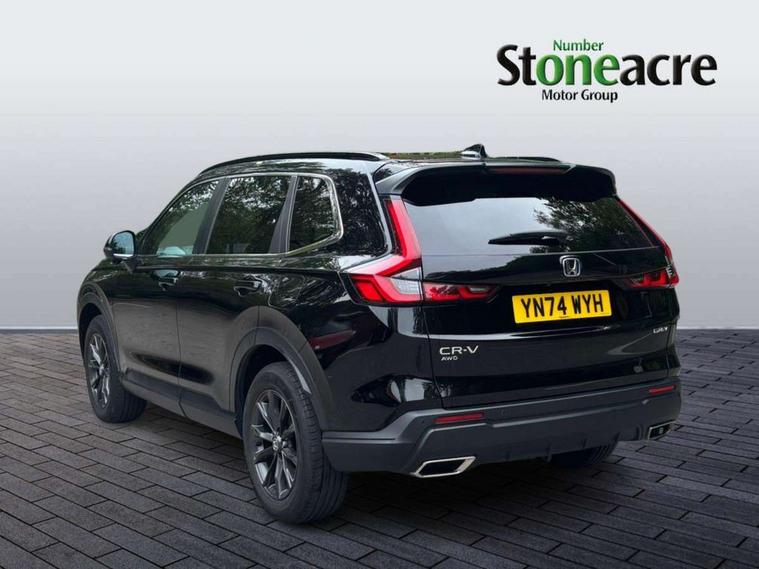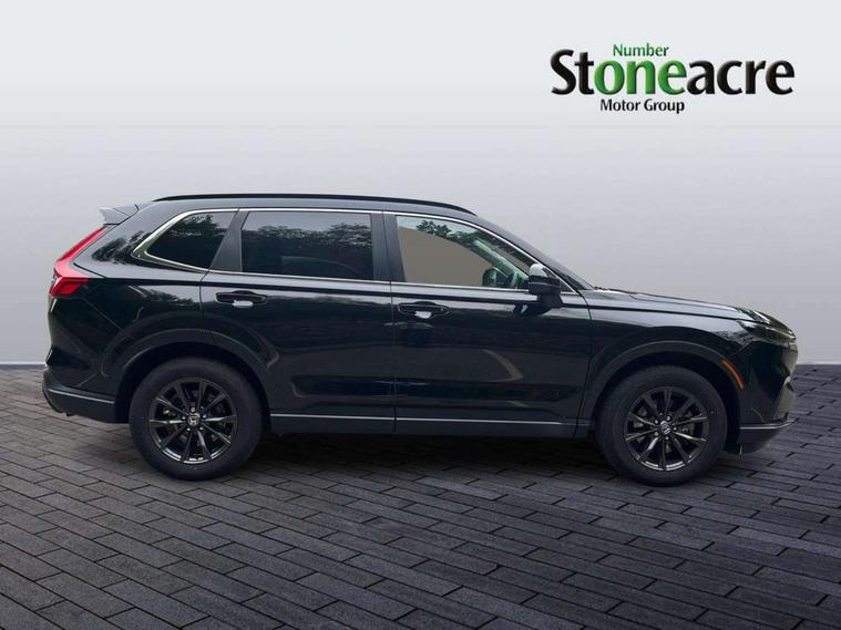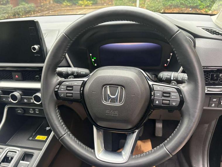 10.2" Multi information display, 4 x front and 4 x rear parking sensors, Active lane change assist, Adaptive cruise control with Cornering speed assist, Adjustable speed limiter, Agile handling assist, BLIS (Blind Spot Information System) with Cross Traffic Monitor, Bluetooth hands free telephone connection, Crossing traffic warning front, Drive mode (Econ, Normal, Snow, Sport), Driver attention monitoring system, E-call, eCall emergency call system, Electric power steering, Emergency stop signalling system, Forward collision warning, Handfree power tailgate with kick sensor and walk away close, HEV mode, Honda 360 sensing, Honda CONNECT with Navigation 9" touchscreen, AM/FM/DAB, Apple Carplay and Android Auto, live traffic info, Intelligent speed limiter, Lane change collision mitigation, Lane departure warning system, Lane keep assist system, Lane watch, Lead car departure notification system, Low speed following, Power meter, Rear view camera, Road departure mitigation, Traffic jam assist, Traffic sign recognition, Wireless apple carplay, Wireless charging, Amplitude reactive damper, Vehicle stability assist, 1X USB (A/2.5A) and 1x Charger (C/3A) on Front, 8 Speakers, DAB+ radio, Dashboard centre speaker, Front tweeters, Premium audio speakers, Rear USB 2x Charger (C/3A), Steering wheel mounted controls, Auto dimming rear view mirror, Auto headlights, Auto wipers, Body colour bumpers, Body colour door handles, Body colour plus material colour roof spoiler, Body coloured shark fin antenna, Chrome + black paint grille, Electrically adjustable and heated door mirrors, Electrically folding door mirrors, Exhaust pipe finisher, Exterior mirror tilt for reverse, Front and rear electric windows, Front LED Indicator lights, Front turn type led with sequential, Headlight auto on/off timer, High beam assist, LED 3rd brake light, LED daytime running lights, LED front fog lights, LED Headlights, LED rear lights, Low gloss black window garnish, Panoramic opening glass sunroof, Privacy glass, Rain sensor, Rear side wing doors, Rear wiper, Roof rails, Trailer stability assist, Welcome home function, 3 seat bench in 2nd row, 4 way driver lumbar support, 4 way electrically adjustable passenger seat without height adjust, 60/40 split folding rear seat, 8 way electrically adjustable drivers seat, Accessory sockets in Front & Trunk, Air conditioning - Rear vent, Ambient light in roof, Cargo net hooks, Courtesy lights, Driver and front passenger seat armrests, Driver/passenger front seatback pockets, Driver/passenger sunvisors and vanity mirrors, Driver/passenger sunvisors with illuminated vanity mirrors, Dual zone automatic climate control, Film hairline interior panels, Footwell ambient interior light front and rear, Front and rear ambient light (door handle&door line) and front cup holder, Front centre armrest, Front map lights, Genuine leather steering wheel, Heated front seats, Heated steering wheel, Hybrid emblem, I-Size ISO Fix Points, Instrument panel with garnish wood film, Leather upholstery, Light roof lining, Luggage floor box, Meter illumination, Normal pedals, Platinum chrome interior door handles, Rear centre armrest, Rear headrests, Rear reading lights, Reclining rear seats, Single front passenger seat, Sunglasses holder, Synthetic headrest, Tilt/telescopic adjustable steering wheel, Tonneau cover, Trunk light, Exclusive styling pack - CR-V, 5 x 3 point seatbelts, ABS/EBD, Anti-whiplash front headrests, Brake assist function, Collision mitigation braking system, Deflation detection system, Driver airbag, Driver SRS airbag (single stage inflation), Electronic parking brake with auto hold, Front and rear collision mitigation throttle control, Front and rear curtain airbags, Front and rear seat belts with emergency locking retractor (ELR), Front centre airbag, Front passenger airbag, Front side airbags, Hill descent control, Hill start assist, Knee airbags (DR) and (AS), Low speed brake system, Manual child lock in rear doors, Paddle deceleration control, Passenger SRS airbag with cut off switch, Rear side airbags, Honda super locks, Immobiliser, Mirrors and windows key fob operation, Remote central locking with 2 key fobs, Security alarm, Selectable door unlock, Smart entry + Smart start, Tilt sensors, Ultrasonic security sensor, Flat tyre solution temper tyre/repair kit,