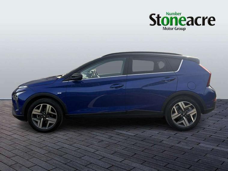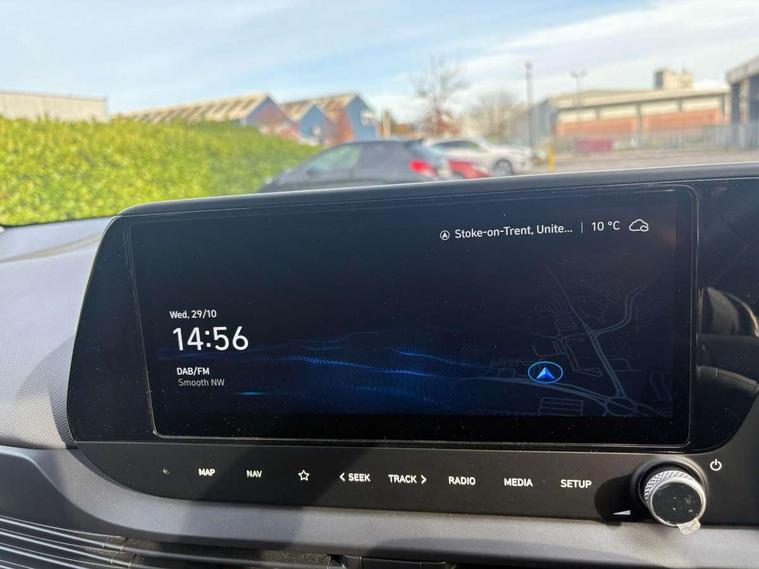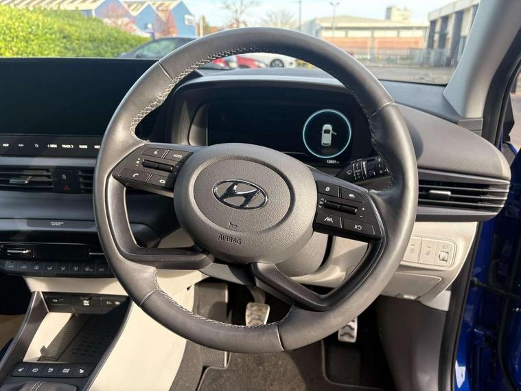 10.25" digital supervision cluster, 10.25" touchscreen centre console display satellite navigation including traffic messaging channel, map care and live services, Blind spot Collision Warning (BCW), Bluelink telematics, Bluetooth connectivity with voice recognition, Cruise control with speed limiter, Drive mode selector, Driver attention alert system, eCall emergency call system, Electric power steering, Emergency stop signalling system, Forward collision assist with pedestrian monitoring and cycle detection, Lane departure warning system with lane keep assist - LKAS, Lane follow assist, Phone connection with apple carPlay and android auto, Rear parking sensors, Rear view camera, Trip computer, Wireless charging pad, BOSE Premium Sound System with Subwoofer, DAB radio, Steering wheel mounted audio/phone controls, USB and aux connection in front, Adjustable intermittent front windscreen wipers with aero wiper blade, Auto dimming rear view mirror, Automatic headlights with dusk sensor, Automatic windscreen wipers with rain sensor, Black two tone roof, Body colour bumpers, Body colour door handles, Chrome finish window surround, Electric adjustable/heated/folding door mirrors, Electric front/rear windows with drivers one touch/anti-trap, Gloss black door mirrors with integrated indicators, Gloss black radiator grille, High beam assist, LED daytime running lights, LED headlamps, LED rear combination lights, Privacy glass - Rear windows and tailgate, Rear roof spoiler with integrated LED brake light, Rear side wing doors, Rear wash/wipe with intermittent wipe setting, Roof rails, Shark fin antenna, Static Cornering lights, Tinted windshield, 12V power outlet in front console, 3 rear seats, 60/40 split folding rear seat, Adjustable head restraints, Automatic climate control with defog system for front windscreen, Blue interior mood lighting, Cabin and luggage compartment interior lighting, Cloth seat trim, Driver's seat manual height adjustment, Front armrest/storage, Heated front seats, Heated steering wheel, Height/reach adjustable steering column, Illuminated driver/passenger vanity mirror, Interior front map reading light, Leather wrapped gear shift knob, Leather wrapped steering wheel, Luggage board, Satin chrome interior door handles, Single front passenger seat, 3 point front seatbelts with pre-tensioners, 3 point rear seatbelts, Airbags - front, front side and curtain airbags, Anti-lock braking system (ABS), Autonomous emergency braking, Childproof rear door locks, Electronic Stability Programme (ESP), Front and rear seatbelt reminder, Front passenger airbag deactivation switch, Height adjustable front seatbelts, Hill start assist control (HAC), Impact sensing auto door unlocking, Isofix child seat anchorage points - rear, Tyre pressure monitoring system, Vehicle stability management, Deadlocks, Immobiliser, Locking wheel nuts, Perimeter alarm, Remote control central locking, Smart key with keyless entry and engine start/stop button, Speed sensitive automatic door locking, Black/grey interior trim, 17" Alloy wheels, Michelin Tyre brand, Tyre repair kit,