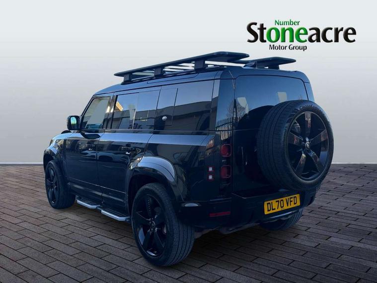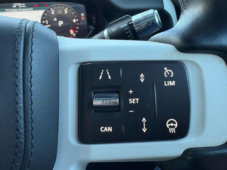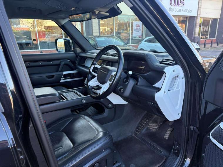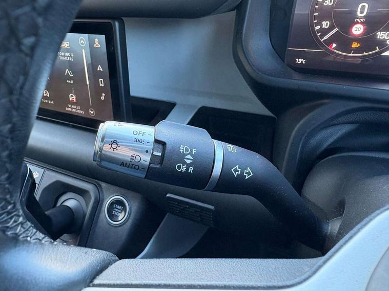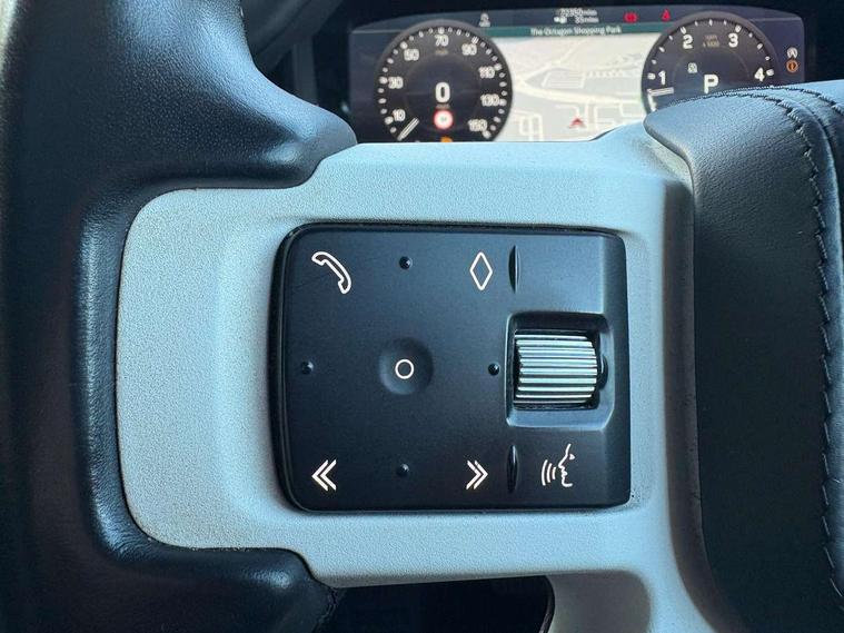 10" touch screen, 360 degree parking aid, 3D Surround Camera with 360 View, 180 Rear View, Front Traffic Detection, Forward Vehicle Guidance, Tow Hitch Assist and clear sight Ground View, Adaptive cruise control, Android Auto, Apple CarPlay, Blind spot assist, Bluetooth system, Clear exit monitor, Click and go integrated base unit, Connected navigation pro, Driver condition monitor, Interactive driver display, Lane keep assist, PAS, Pivi Pro connected navigation system with upgraded Infotainment, Rear collision monitor, Rear traffic monitor, Traffic sign recognition with adaptive speed limiter, Trip computer, Wade Sensing, Adaptive dynamics, Electronic air suspension, DAB Radio (Digital Audio Broadcasting), Automatic headlight levelling, Automatic headlights, ClearSight interior rear view mirror, Front fog lights, Heated windscreen, LED tail lights, Matrix LED headlights with signature DRL, Power fold, auto-dimming, heated door mirrors with memory and approach lights, Puddle lights, Rain sensing windscreen wipers, Signature graphic (with interior storage), Sliding panoramic roof, Standard treadplates, 14 way heated and cooled electric adjustable memory front seats with 4 way manual headrests, Air quality sensor, Cabin air ionisation, Carpet mats, Electric reach + rake adjustable steering column, Extended leather upgrade, Front passenger isofix child seat attachment, Heated steering wheel, Leather gearshift, Leather steering wheel, Loadspace cover, Morzine headlining, Multifunction steering wheel, Rear headrests, Rear ISOFIX, Sunvisors with illuminated vanity mirrors, Three-zone Climate Control with Rear Cooling Assist, Twin front cupholders with cover, Windsor leather upholstery, Online pack with data plan - Defender, 7 three point seatbelts, ABS, Driver and passenger airbags, Emergency braking, ESP + traction control, TPMS (Tyre pressure monitoring system), Alarm, Immobiliser, Intrusion sensor, Keyless entry and go, Locking wheel nuts, Remote locking,