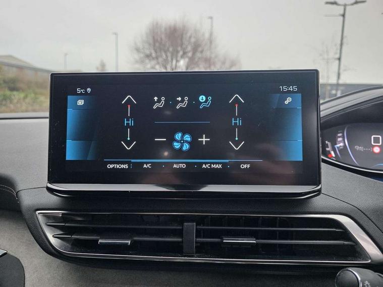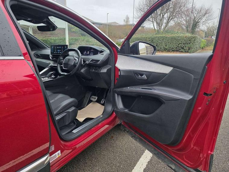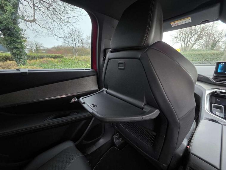 10" High Definition Capacitive Touchscreen, 180 degree colour reversing camera, 3D connected navigation + voice control, Apple car play and Android auto, Bluetooth telephone connection, Drive mode selector (Eco, Normal and Power), Driving timer alert system, Emergency services call system, Extended traffic sign recognition, Exterior temperature indicator with ice warning, Lane departure warning system, Multi function trip computer, Peugeot i-cockpit with configurable 12.3" headup digital instrumental panel and compact sports steering wheel, PEUGEOT SOS and assistance, Rear passenger USB charging sockets (x2) (type A), Speed limit recognition and recommendation, Sports button, Voice recognition for radio and telephone, Dynamic stability control and electronic anti-skid system, Bi Tuner radio including DAB, USB socket, Auto self levelling headlights, Automatic activation of hazard warning lights, Black diamond roof and nera black door mirror shells, Body colour door handles, Body coloured rear spoiler, Body protectors in black, Chrome side window trim, Dark tinted rear side and tailgate windows, Door mirrors with auto dipping function in reverse gear, Dynamic frameless design in front radiator grille, Electric folding door mirrors with exterior courtesy LED lighting, Electrically heated door mirrors, Frameless electrochrome rear view mirror, Front windscreen wiper with magic wash cleaning system, Full LED headlights with fog mode, Gloss black B and C pillar and aerodynamic deflector trim, Gloss black rear cluster connecting strip, GT emblem (front wings and tailgate), Headlights left on audible warning, Heated rear windscreen with integrated antenna, LED daytime running lights in fang style, LED front indicator, LED rear lights including reversing lights, scrolling indicators and PEUGEOT '3Claw Effect' light signature (with daylight function), LED rear number plate lighting, LED side indicator lights integrated into door mirrors, LED third brake light, One touch electric front/rear windows with pinch protection, Rear side wing doors, Rear windscreen wiper with auto activation when reversing, Silver front lower bumper, Twin exhaust effect trim, 2 cupholders in front centre console, 2 separate seats in 3rd row, 3 bench rear seats in 2nd row, 3 x 12V power sockets, 4 Grab handles retractable and damped, Aikinite stitching in armrest, gear lever and dashboard facia, Aluminium pedals, Automatic and dual zone diffusion air conditioning system, Blue ambient lighting for connecting zone, Blue ambient lighting to front door panels, central storage and cupholders, Blue ambient lighting to head up instrument panel, Brumeo fabric trimmed door armrests, Central front armrest with butterfly wing opening, Tramontane double stitching and illuminated storage compartment, Electric power steering with reach and rake adjustable steering column, Flocked front door pocket interior with blue ambient lighting, Flocked glovebox interior, Fold flat front passenger seat with picnic table, Footwell lighting, Front ambient lighting, Front interior light with reading spotlights (x2), row 2 interior light with reading spotlights (x2), Front passenger seat manual adjustment (longitudinal and back rest angle), Gear shift indicator, Height adjustable driver seat, Height adjustable passenger seat, Illuminated glovebox, Illuminated vanity mirror, Isofix child seat fittings x 3 in the second row, LED interior lighting, Map pocket on front seat backs, Mistral floor mats with Aikinite contrast stitching, Mistral full grain perforated leather steering wheel with aikinite stitch detail and satin chrome 'GT' emblem, Rear ventilation system, Retractable parcel shelf, Roof lining and windscreen pillars in Mistral black, Satin chrome digital instrument panel and touchscreen trim, Satin chrome front door panel recess trim, Satin chrome interior door handles, Satin chrome scorpion's tail and toggle switch trim, Seatbelt not fastened audible and visual alert for front seats, Seatbelt unfastened on the move audible and visual alert for front and rear seats, Single front passenger seat, Third row seats (can be stored under bootfloor or removed completely), Twin rear coat hooks, Children's pack - 5008, Drive Assist Plus Pack - 5008, Driver sport pack - 5008, Visibility pack - 5008, ABS + EBD + EBA, Adaptive driver and front passenger airbags including passenger airbag deactivation function, Electronic parking brake, ESP and ASR traction control with deactivation switch, Five 3 point rear safety belts, Front and rear curtain airbags, Front optimised safety headrests and rear retractable headrests (x3), height adjustable, Front side airbags, Front three point retractable seatbelts height adjustable with pre tensioners and force limiters, Front ventilated disc brakes, Hill start assist, Manual child lock in rear doors, Rear disc brakes, Rear three-point retractable seatbelts (x3) with pre-tensioners and force limiters in the outer rear seats, Two tone horn, Automatic door locking when moving off, Child lock control of rear doors and windows, Electronic code immobiliser, key operated exterior door lock from the left hand door, Keyless Start, Perimetric and volumetric alarm with lift and tilt sensor, Peugeot Open and Go System, Remote control central locking with two plip keys, Satin chrome dash trim,