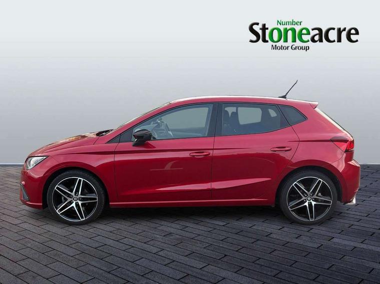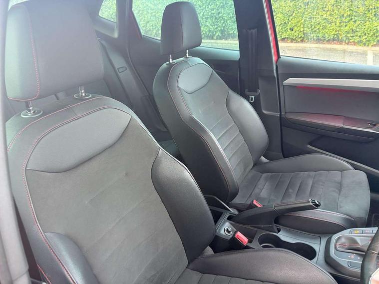 'Lights On' Reminder warning buzzer, Bluetooth audio streaming with handsfree system, Cruise control, Digital clock, Digital cockpit, Full Link Smartphone Integration with Mirror Link, Apple Car Play, Google Android Auto, Low fuel warning light, Navigation system with 8" touch screen + proximity sensor, voice control and USB type C sockets, Outside temperature gauge, Power Steering, Seat connect with safety, service, remote and online, SEAT Drive profile, SEAT logo boot release, Speed limiter, Trip computer, Sports suspension, 6 speakers, Auxiliary input socket, CD player, Digital Audio Broadcast (DAB) Tuner, Radio/MP3 player, SD card slot, Steering wheel mounted controls, USB (type C) cable for Apple and Android compatibility, Anti theft roof antenna, Auto dimming rear view mirror, Automatic headlights, Automatic rain sensing wipers, Body colour bumpers, Body colour door handles, Brilliant black door mirrors, Brilliant black window surrounds, Chrome front grille frame, Coming/leaving home lighting function, Dark tinted rear windows, Electric folding door mirrors, Electric front windows, Electric headlight adjustment, Electric rear windows, Electrically adjustable and heated door mirrors, Exclusive FR rear bumper, Front/rear fog lights, LED daytime running lights, LED headlights with dynamic headlight range control, LED tail lights, Rear spoiler with twin exhausts, 60/40 split folding rear seat, Ambient interior lighting, Chrome detailing, pearl grey headlining and leather effect door trim panels, Driver's sunvisor with ticket holder/vanity mirror, Dual zone climate control with combination filter, Front courtesy lights, Front cupholders x 2, Front reading lights, Gear shift indicator, Glovebox, Height adjustable driver's seat, Height adjustable passenger seat, Height/reach adjust steering wheel, Illuminated boot, Instrument lighting with brightness control, Leather multifunction flat bottomed steering wheel with FR logo, leather gear knob and handbrake, Microsuede cloth upholstery, Passenger sunvisor, Rear top tether child seat ISOFIX attachment, Steering column mounted gear shift paddles, Storage pockets on back of front seats, Two height adjustable front and rear headrests (three in rear), 3 point seatbelts on all 3 rear seats, ABS, Active front headrests, Child locks on rear doors, Curtain airbags, Driver/Front Passenger airbags, ESP+EBA, Front assist (AEB), Front passenger airbag deactivation, Front side airbags, Hill hold control, Multi-Collision braking, Rear disc brakes, Seat belt reminder for front and rear seats, Tiredness recognition system, Tyre pressure monitoring system, Anti theft wheel bolts, Electronic engine immobiliser, Perimeter alarm and interior monitoring with backup horn and tow away protection, Remote central locking + deadlocks, Leather dashboard, 18" Performance machined bi-colour alloy wheels,