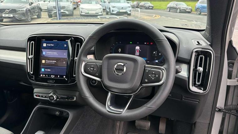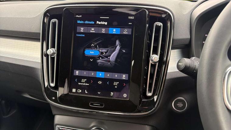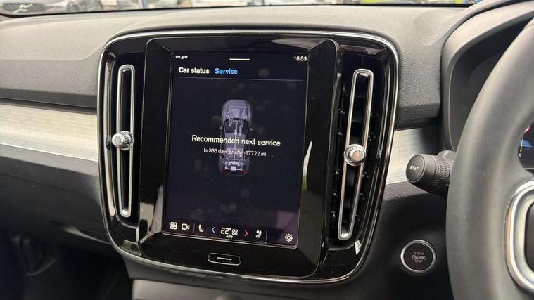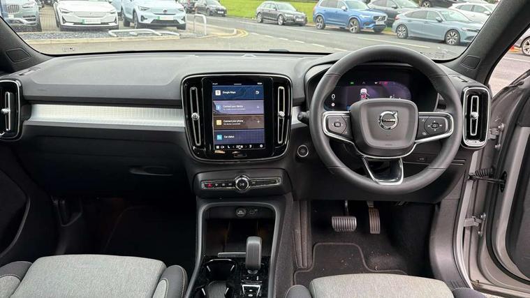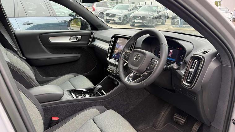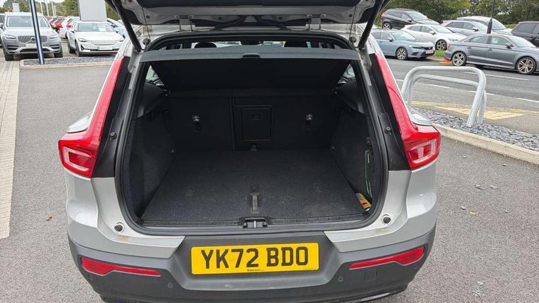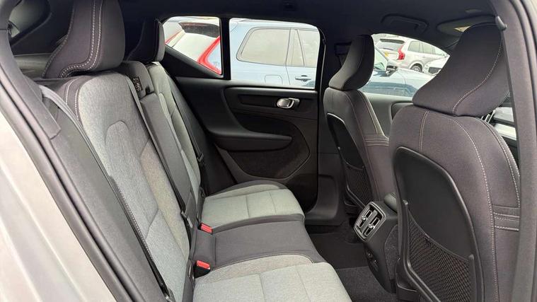 12.3" Progressive Driver Display, 9" centre console portrait touch screen, Adjustable steering wheel force, Bluetooth hands free telephone kit, E-call, eCall emergency call system, Front park assist, Google automatic services - Nav with google maps, apple carplay/android auto, voice recognition with google assistant, Hands free power tailgate, Lane keep assist with driver alert control, Oncoming Lane Mitigation, Rear park assist, Speed limiter, Speed sensitive steering, Wireless/Inductive Mobile Phone Charging, Dynamic chassis, DAB Digital radio, High performance sound, 8 speakers/250W, front USB and 2 rear type C USB, Steering wheel mounted remote controls, Adaptive brake lights with high level LED brake lights, Auto dimming interior mirror, Automatic headlamp levelling, Automatic LED Headlights + Active high beam incorporating daytime running lights, Front aluminium tread plates, Front and rear electric windows, High gloss black front and rear skid plate, High gloss black mesh front grille with high gloss black surround, High gloss black window trim, Home safe and approach lighting, Integrated roof rails in high gloss black, LED front fog lights, Puddle lights, Rain sensor with automatic windscreen wiper activation, Rear side wing doors, Rear wiper, Roof antenna, Roof spoiler, Visible VIN plate, 12V socket in front tunnel console and luggage compartment, 2-Zone electronic climate control with CleanZone air quality system and pollen filter, 3 seat bench in 2nd row, 3 Spoke tailored steering wheel with chrome trim, 60/40 versatile split folding rear seat, A-pillar parking ticket holder, Ambient front door and instrumental panel lighting, Centre console cupholders and storage, Flexible load floor and grocery bag holder, Floor mats, Front door pocket and front cupholder illumination, Front footwell illumination, Front headrests, Front reading light and theatre lighting, Front seat cushion extensions, Front tunnel pocket, Glovebox bag hook, Height adjustable passenger seat, Height/reach adjustable steering column, High gloss centre tunnel deco, Illuminated glovebox, Illuminated luggage compartment, Illuminated tailgate, Illuminated vanity mirrors, Integrated waste bin, Isofix attachments on outer rear seats, Load protection net, Multi directional lumbar support, Power driver seat with memory + exterior mirrors memory, Rear armrest / integral cup holders / storage tray, Rear headrests, Rear reading and courtesy lights, Single front passenger seat, Underfloor cargo storage, Climate pack - XC40, 3x3 point rear seatbelts, City safety with steering support with Pedestrian + cyclist + front collision warning with full auto brake and rear auto brake, Drivers knee airbag, Dual stage driver/passenger airbags, Electronic parking brake with auto hold, First aid kit, Front and outer rear seatbelt reminder and pretensioners, Front seats SIPS airbags, Hill descent control, Hill start assist, Inflatable curtain, Passenger airbag cut-off device, Power child locks on rear doors, Road sign information display, Run off Road Mitigation, Run off Road Protection, SIPS (Side Impact Protection System), Slippery road and hazard light alert, Stability and Traction Control with Spin control, Engine Drag Control and Corner Traction Control, Tyre pressure monitoring system, Vehicle deceleration control with Anti-lock Brake System, Electronic Brake Distribution and Emergency Brake Assist, Warning triangle, WHIPS whiplash protection system - front, Anti-theft alarm including immobiliser/volume sensor + level sensor, Care key with user defined top speed, Key integrated remote control central locking + fuel flap with deadlocking system and auto open/close power windows, Keyless drive includes keyless entry and keyless start, Locking wheel nuts, Private locking for tailgate,