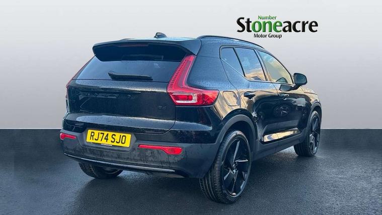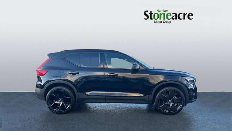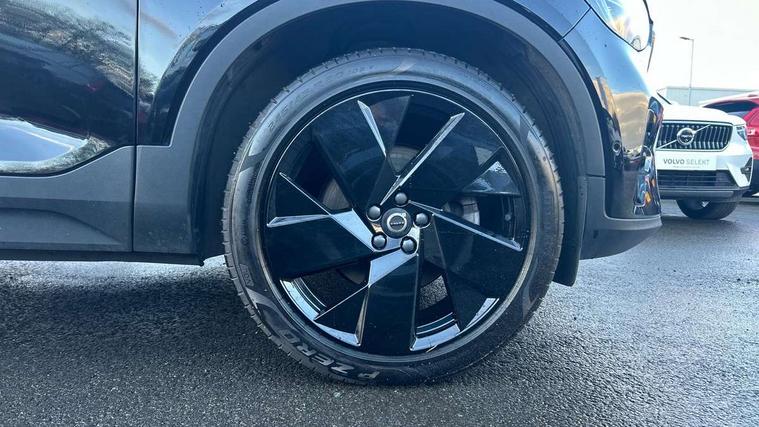 12.3" Progressive Driver Display, 360 degree surround view parking camera with side proximity sensors, 9" centre console portrait touch screen, Adjustable steering wheel force, Apple carplay (wired), Bluetooth handsfree system, Driver alert control, Driver assistance (pilot assist and adaptive cruise control), Driver awareness - Blind spot information system with steer assist, cross traffic alert with autobrake and rear collision warning and mitigation, E-call, Google automotive services - Enabled entertainment apps, navigation with google maps, voice recognition with google assistant, Hands free power tailgate, Intelligent speed assistance, Lane keeping aid, Oncoming Lane Mitigation, Speed sensitive steering, Volvo cars services with app - Driving journal, emergency and breakdown call, engine remote start, remote door locking/unlocking and vehicle dashboard, Wireless/Inductive Mobile Phone Charging, Automatic transmission with start/stop and manual change functions, Dynamic chassis, DAB Digital radio, Premium Sound by Harman Kardon, Dolby Pro Logic II Surround Sound, Dirac Unison, 12 speakers/600W and subwoofer, Steering wheel mounted remote controls, Active bending pixel LED headlights with adaptive shadow technology, Active high beam incorporating daytime running lights, Adaptive brake lights with high level LED brake lights, Auto dimming feature for exterior door mirrors, Auto dimming interior mirror, Automatic headlamp levelling, Colour coordinated auto folding and heated power door mirrors, Dark tinted windows - rear side windows and rear screen, Front aluminium tread plates, Front and rear electric windows, Headlight cleaning system, High gloss black front and rear skid plate, High gloss black front bumper deco, High gloss black front grille strikethrough and ironmark, High gloss black rear model, engine and volvo logo badges, High gloss black window trim, Home safe and approach lighting, Integrated roof rails in high gloss black, LED front fog lights with cornering function, Power glass tilt and slide panoramic sunroof with sun curtain, Puddle lights, Rain sensor with automatic windscreen wiper activation, Rear side wing doors, Rear wiper, Roof antenna, Roof spoiler, Special metallic paint, Visible VIN plate, 12V socket in front tunnel console and luggage compartment, 2-Zone electronic climate control with CleanZone air quality system and pollen filter, 3 seat bench in 2nd row, 3 Spoke tailored steering wheel with chrome trim, 60/40 versatile split folding rear seat, Centre console cupholders and storage, Charcoal headlining, Connect textile/microtech upholstery, Flexible load floor and grocery bag holder, Floor mats, Front cabin courtesy lights, Front door pocket, front cupholder, ambient front door, rear reading, rear courtesy, instrument panel and tailgate lighting, Front footwell illumination, Front headrests, Front reading lights, Front seat cushion extensions, Front side step illumination (under door), Glovebox bag hook, Heated front seats, Height/reach adjustable steering column, High gloss centre tunnel deco, Illuminated glovebox, Illuminated luggage compartment, Illuminated vanity mirrors + ticket holder, Integrated waste bin, Isofix attachments on outer rear seats, Load cover, Load protection net, Multi directional lumbar support for driver and passenger seat, Power driver seat with memory + exterior mirrors memory, Power folding rear headrests, Power passenger seat, Rear armrest with cupholders, Single front passenger seat, Underfloor cargo storage, Climate pack without heated front seats - XC40, 3x3 point rear seatbelts, City safety with steering support with Pedestrian + cyclist + front collision warning with full auto brake and rear auto brake, Driver and passenger airbags, Drivers knee airbag, Electronic parking brake with auto hold, First aid kit, Front and outer rear seatbelt reminder and pretensioners, Front seats SIPS airbags, Hill descent control, Hill start assist, Inflatable curtain, Passenger airbag cut-off device, Power child locks on rear doors, Road sign information display, Run off Road Protection, SIPS (Side Impact Protection System), Slippery road and hazard light alert, Stability and Traction Control with Spin control, Engine Drag Control and Corner Traction Control, Tyre pressure monitoring system, Vehicle deceleration control with Anti-lock Brake System, Electronic Brake Distribution and Emergency Brake Assist, Warning triangle, WHIPS whiplash protection system - front, 2 x Key integrated remote control central locking including with deadlocking system and auto open/close windows and sunroof, Anti-theft alarm including immobiliser/volume sensor + level sensor, Keyless drive includes keyless entry and keyless start, Locking wheel nuts, 20" 5 spoke high gloss black alloy wheels,