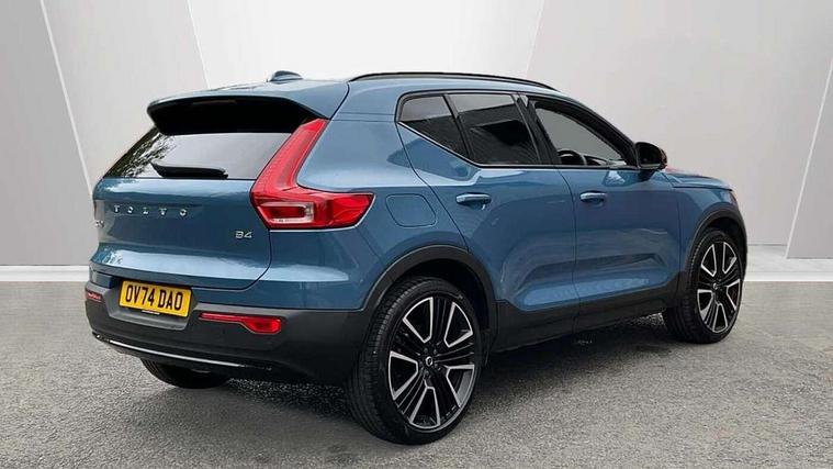12.3" Progressive Driver Display, 360 degree surround view parking camera with side proximity sensors, 9" centre console portrait touch screen, Adjustable steering wheel force, Apple carplay (wired), Bluetooth handsfree system, Driver alert control, Driver assistance (pilot assist and adaptive cruise control), Driver awareness - Blind spot information system with steer assist, cross traffic alert with autobrake and rear collision warning and mitigation, E-call, Google automotive services - Enabled entertainment apps, navigation with google maps, voice recognition with google assistant, Hands free power tailgate, Intelligent speed assistance, Lane keeping aid, Oncoming Lane Mitigation, Speed sensitive steering, Volvo cars services with app - Driving journal, emergency and breakdown call, engine remote start, remote door locking/unlocking and vehicle dashboard, Wireless/Inductive Mobile Phone Charging, Automatic transmission with start/stop and manual change functions, Dynamic chassis, DAB Digital radio, Premium Sound by Harman Kardon, Dolby Pro Logic II Surround Sound, Dirac Unison, 12 speakers/600W and subwoofer, Steering wheel mounted remote controls, Active bending pixel LED headlights with adaptive shadow technology, Active high beam incorporating daytime running lights, Adaptive brake lights with high level LED brake lights, Auto dimming feature for exterior door mirrors, Auto dimming interior mirror, Automatic headlamp levelling, Dark tinted windows - rear side windows and rear screen, Front aluminium tread plates, Front and rear electric windows, Headlight cleaning system, High gloss black front and rear skid plate, High gloss black front bumper deco, High gloss black mesh front grille with high gloss black surround, High gloss black window trim, Home safe and approach lighting, Integrated roof rails in high gloss black, LED front fog lights with cornering function, Power glass tilt and slide panoramic sunroof with sun curtain, Puddle lights, Rain sensor with automatic windscreen wiper activation, Rear side wing doors, Rear wiper, Roof antenna, Roof spoiler, Visible VIN plate, 12V socket in front tunnel console and luggage compartment, 2-Zone electronic climate control with CleanZone air quality system and pollen filter, 3 seat bench in 2nd row, 3 Spoke tailored steering wheel with chrome trim, 60/40 versatile split folding rear seat, Centre console cupholders and storage, Flexible load floor and grocery bag holder, Floor mats, Front cabin courtesy lights, Front door pocket, front cupholder, ambient front door, rear reading, rear courtesy, instrument panel and tailgate lighting, Front footwell illumination, Front headrests, Front reading lights, Front seat cushion extensions, Front side step illumination (under door), Glovebox bag hook, Heated front seats, Height/reach adjustable steering column, High gloss centre tunnel deco, Illuminated glovebox, Illuminated luggage compartment, Illuminated vanity mirrors + ticket holder, Integrated waste bin, Isofix attachments on outer rear seats, Load cover, Load protection net, Multi directional lumbar support for driver and passenger seat, Power driver seat with memory + exterior mirrors memory, Power folding rear headrests, Power passenger seat, Rear armrest with cupholders, Single front passenger seat, Underfloor cargo storage, Climate pack without heated front seats - XC40, 3x3 point rear seatbelts, City safety with steering support with Pedestrian + cyclist + front collision warning with full auto brake and rear auto brake, Driver and passenger airbags, Drivers knee airbag, Electronic parking brake with auto hold, First aid kit, Front and outer rear seatbelt reminder and pretensioners, Front seats SIPS airbags, Hill descent control, Hill start assist, Inflatable curtain, Passenger airbag cut-off device, Power child locks on rear doors, Road sign information display, Run off Road Protection, SIPS (Side Impact Protection System), Slippery road and hazard light alert, Stability and Traction Control with Spin control, Engine Drag Control and Corner Traction Control, Tyre pressure monitoring system, Vehicle deceleration control with Anti-lock Brake System, Electronic Brake Distribution and Emergency Brake Assist, Warning triangle, WHIPS whiplash protection system - front, 2 x Key integrated remote control central locking including with deadlocking system and auto open/close windows and sunroof, Anti-theft alarm including immobiliser/volume sensor + level sensor, Keyless drive includes keyless entry and keyless start, Locking wheel nuts,