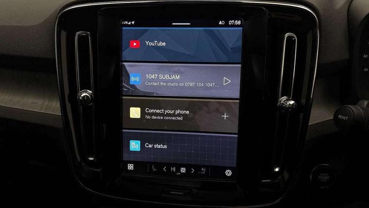 12.3" Progressive Driver Display, 360 degree surround view parking camera with side proximity sensors, 9" centre console portrait touch screen, Adjustable steering wheel force, Android auto (Wired), Apple carplay (wired), Bluetooth handsfree system, Driver alert control, Driver assistance (pilot assist and adaptive cruise control), Driver awareness - Blind spot information system with steer assist, cross traffic alert with autobrake and rear collision warning and mitigation, E-call, Front park assist, Google automotive services - Enabled entertainment apps, navigation with google maps, voice recognition with google assistant, Hands free power tailgate, Intelligent speed assistance, Lane keeping aid, Oncoming Lane Mitigation, Rear park assist, Speed sensitive steering, Volvo cars services with app - Driving journal, emergency and breakdown call, engine remote start, remote door locking/unlocking and vehicle dashboard, Wireless/Inductive Mobile Phone Charging, Automatic transmission with start/stop and manual change functions, Dynamic chassis, DAB Digital radio, Premium Sound by Harman Kardon, Dolby Pro Logic II Surround Sound, Dirac Unison, 12 speakers/600W and subwoofer, Steering wheel mounted remote controls, Active bending pixel LED headlights with adaptive shadow technology, Active high beam incorporating daytime running lights, Adaptive brake lights with high level LED brake lights, Auto dimming feature for exterior door mirrors, Auto dimming interior mirror, Automatic headlamp levelling, Dark tinted windows - rear side windows and rear screen, Front aluminium tread plates, Front and rear electric windows, Headlight cleaning system, High gloss black front and rear skid plate, High gloss black front bumper deco, High gloss black mesh front grille with high gloss black surround, High gloss black window trim, Home safe and approach lighting, Integrated roof rails in high gloss black, LED front fog lights with cornering function, Power glass tilt and slide panoramic sunroof with sun curtain, Puddle lights, Rain sensor with automatic windscreen wiper activation, Rear side wing doors, Rear wiper, Roof antenna, Roof spoiler, Visible VIN plate, 12V socket in front tunnel console and luggage compartment, 2-Zone electronic climate control with CleanZone air quality system and pollen filter, 3 seat bench in 2nd row, 3 Spoke tailored steering wheel with chrome trim, 60/40 versatile split folding rear seat, Centre console cupholders and storage, Flexible load floor and grocery bag holder, Floor mats, Front cabin courtesy lights, Front door pocket, front cupholder, ambient front door, rear reading, rear courtesy, instrument panel and tailgate lighting, Front footwell illumination, Front headrests, Front reading lights, Front seat cushion extensions, Front side step illumination (under door), Glovebox bag hook, Heated front seats, Height/reach adjustable steering column, High gloss centre tunnel deco, Illuminated glovebox, Illuminated luggage compartment, Illuminated vanity mirrors + ticket holder, Integrated waste bin, Isofix attachments on outer rear seats, Load cover, Load protection net, Multi directional lumbar support for driver and passenger seat, Power driver seat with memory + exterior mirrors memory, Power folding rear headrests, Power passenger seat, Rear armrest with cupholders, Single front passenger seat, Underfloor cargo storage, Climate pack without heated front seats - XC40, 3x3 point rear seatbelts, City safety with steering support with Pedestrian + cyclist + front collision warning with full auto brake and rear auto brake, Driver and passenger airbags, Drivers knee airbag, Electronic parking brake with auto hold, First aid kit, Front and outer rear seatbelt reminder and pretensioners, Front seats SIPS airbags, Hill descent control, Hill start assist, Inflatable curtain, Passenger airbag cut-off device, Power child locks on rear doors, Road sign information display, Run off Road Protection, SIPS (Side Impact Protection System), Slippery road and hazard light alert, Stability and Traction Control with Spin control, Engine Drag Control and Corner Traction Control, Tyre pressure monitoring system, Vehicle deceleration control with Anti-lock Brake System, Electronic Brake Distribution and Emergency Brake Assist, Warning triangle, WHIPS whiplash protection system - front, 2 x Key integrated remote control central locking including with deadlocking system and auto open/close windows and sunroof, Anti-theft alarm including immobiliser/volume sensor + level sensor, Keyless drive includes keyless entry and keyless start, Locking wheel nuts,