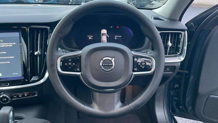 12.3" Progressive Driver Display, 9" centre console touch screen, Adjustable steering wheel force, Bluetooth handsfree system, Cruise control, Drive mode settings, Driver alert control with lane keeping aid, Driver awareness - Blind spot information system with steer assist, cross traffic alert with autobrake and rear collision warning and mitigation, Emergency and breakdown call function, Front and rear park assist, Google automotive services - Enabled entertainment apps, navigation with google maps, voice recognition with google assistant, Hands free boot opening, Oncoming Lane Mitigation, Service interval indicator, Speed limiter, Speed sensitive steering, Trip computer, Volvo cars services with app, 3.7 kW monophase on board charger, 7m 10amp charge cable with 3 pin plug and 7m 1 phase 16amp type 2/mode 3 charge cable, Automatic transmission with start/stop and manual change functions, Dynamic chassis, Electric rear axle drive, Lithium-ion battery, Recharging port located in nearside front wing, DAB Digital radio, Fresh air subwoofer, High performance sound, 2 x front and rear Type C USB, 10 speakers/220W output, Low speed exterior sound speaker, Steering wheel remote infotainment controls, Adaptive brake lights with high level LED brake lights, Auto dimming interior + exterior mirrors, Automatic headlight levelling system, Automatic LED Headlights + Active high beam incorporating daytime running lights, Body colour bumpers, Bootlid/tailgate illumination, Colour coordinated auto folding and heated power door mirrors, Front and rear power windows, Heated front windscreen, High gloss black door mirrors and window surround, High gloss black mesh front grille with high gloss black surround, Home safe and approach lighting, Puddle lights, Rain sensor with automatic windscreen wiper activation, Rear boot, Rear side wing doors, Roof antenna, Visible VIN plate, 12V socket in front tunnel console and luggage compartment, 2 zone electronic climate control with Clean zone air quality system + pollen filter, 3 rear head restraints, 60/40 versatile split folding 3 bench rear seats in 2nd row, A-pillar parking ticket holder, Advanced interior air cleaner PM2.5, B Pillar ventilation, Centre console storage, Charcoal carpets and floor mats, Extended front seat cushions, Front and rear courtesy and front reading lights, Front cupholders, Front footwell illumination, Front head restraints, Front/rear door pockets and front cupholder illumination, Glovebox compartment with illumination, Heated front seats, Heated rear seats outer positions, Heated steering wheel, Height/reach adjustable steering column, Illuminated vanity mirrors + ticket holder, ISOFIX attachment on outer rear seats, Luggage compartment baggage hooks, Luggage compartment illumination, Luggage compartment load hooks, Multi directional lumbar support, Power driver seat with memory + exterior mirrors memory, Power folding rear headrests, Rear armrest with cupholder, Rear footwell and front and rear side step illumination, Rear reading lights, Recharge aluminium tread plates, Single front passenger seat, 5 x 3 point seatbelts, City safety with steering support with Pedestrian + cyclist + front collision warning with full auto brake and rear auto brake, Dual stage driver/passenger airbags, First aid kit, Front seats SIPS airbags, Hill start assist, IC (Inflatable Curtains) - Full Length, Passenger airbag cut-off switch, Power child locks on rear doors, Power parking brake with auto hold function, Road sign information display, Run off Road Mitigation, Run off Road Protection, Seatbelt reminder and pretensioners for all seats, SIPS (Side Impact Protection System), Slippery road and hazard light alert, Stability and Traction Control with Spin control, Engine Drag Control and Corner Traction Control, Tyre pressure monitoring system, Vehicle deceleration control with Anti-lock Brake System, Electronic Brake Distribution and Emergency Brake Assist, Warning triangle, WHIPS whiplash protection system - front, Anti-theft alarm including immobiliser/volume sensor + level sensor, Care key with user defined top speed, Key integrated remote control central locking + fuel flap with deadlocking system and auto open/close power windows, Keyless drive includes keyless entry and keyless start, Locking wheel nuts, Private locking luggage compartment, Tyre sealant kit and compressor,