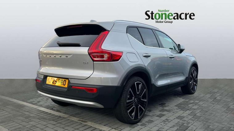 12.3" Progressive Driver Display, 360 degree surround view parking camera with side proximity sensors, 9" centre console portrait touch screen, Adjustable steering wheel force, Android auto (Wired), Apple carplay (wired), Bluetooth handsfree system, Driver alert control, Driver assistance (pilot assist and adaptive cruise control), Driver awareness - Blind spot information system with steer assist, cross traffic alert with autobrake and rear collision warning and mitigation, E-call, Front park assist, Google automotive services - Enabled entertainment apps, navigation with google maps, voice recognition with google assistant, Hands free power tailgate, Intelligent speed assistance, Lane keeping aid, Oncoming Lane Mitigation, Rear park assist, Speed sensitive steering, Volvo cars services with app - Driving journal, emergency and breakdown call, engine remote start, remote door locking/unlocking and vehicle dashboard, Wireless/Inductive Mobile Phone Charging, Automatic transmission with start/stop and manual change functions, Dynamic chassis, DAB Digital radio, Premium Sound by Harman Kardon, Dolby Pro Logic II Surround Sound, Dirac Unison, 12 speakers/600W and subwoofer, Steering wheel mounted remote controls, Active bending pixel LED headlights with adaptive shadow technology, Active high beam incorporating daytime running lights, Adaptive brake lights with high level LED brake lights, Auto dimming feature for exterior door mirrors, Auto dimming interior mirror, Automatic headlamp levelling, Dark tinted windows - rear side windows and rear screen, Front aluminium tread plates, Front and rear electric windows, Headlight cleaning system, High gloss black front and rear skid plate, High gloss black front bumper deco, High gloss black mesh front grille with high gloss black surround, High gloss black window trim, Home safe and approach lighting, Integrated roof rails in high gloss black, LED front fog lights with cornering function, Power glass tilt and slide panoramic sunroof with sun curtain, Puddle lights, Rain sensor with automatic windscreen wiper activation, Rear side wing doors, Rear wiper, Roof antenna, Roof spoiler, Visible VIN plate, 12V socket in front tunnel console and luggage compartment, 2-Zone electronic climate control with CleanZone air quality system and pollen filter, 3 seat bench in 2nd row, 3 Spoke tailored steering wheel with chrome trim, 60/40 versatile split folding rear seat, Centre console cupholders and storage, Flexible load floor and grocery bag holder, Floor mats, Front cabin courtesy lights, Front door pocket, front cupholder, ambient front door, rear reading, rear courtesy, instrument panel and tailgate lighting, Front footwell illumination, Front headrests, Front reading lights, Front seat cushion extensions, Front side step illumination (under door), Glovebox bag hook, Heated front seats, Height/reach adjustable steering column, High gloss centre tunnel deco, Illuminated glovebox, Illuminated luggage compartment, Illuminated vanity mirrors + ticket holder, Integrated waste bin, Isofix attachments on outer rear seats, Load cover, Load protection net, Multi directional lumbar support for driver and passenger seat, Power driver seat with memory + exterior mirrors memory, Power folding rear headrests, Power passenger seat, Rear armrest with cupholders, Single front passenger seat, Underfloor cargo storage, Climate pack without heated front seats - XC40, 3x3 point rear seatbelts, City safety with steering support with Pedestrian + cyclist + front collision warning with full auto brake and rear auto brake, Driver and passenger airbags, Drivers knee airbag, Electronic parking brake with auto hold, First aid kit, Front and outer rear seatbelt reminder and pretensioners, Front seats SIPS airbags, Hill descent control, Hill start assist, Inflatable curtain, Passenger airbag cut-off device, Power child locks on rear doors, Road sign information display, Run off Road Protection, SIPS (Side Impact Protection System), Slippery road and hazard light alert, Stability and Traction Control with Spin control, Engine Drag Control and Corner Traction Control, Tyre pressure monitoring system, Vehicle deceleration control with Anti-lock Brake System, Electronic Brake Distribution and Emergency Brake Assist, Warning triangle, WHIPS whiplash protection system - front, 2 x Key integrated remote control central locking including with deadlocking system and auto open/close windows and sunroof, Anti-theft alarm including immobiliser/volume sensor + level sensor, Keyless drive includes keyless entry and keyless start, Locking wheel nuts,