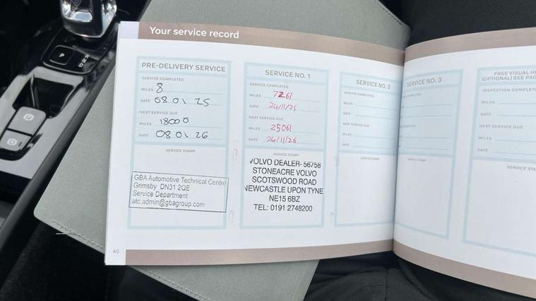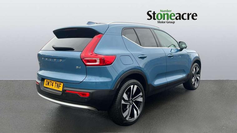 12.3" Progressive Driver Display, 360 degree surround view parking camera with side proximity sensors, 9" centre console portrait touch screen, Adjustable steering wheel force, Android auto (Wired), Apple carplay (wired), Bluetooth handsfree system, Driver alert control, Driver assistance (pilot assist and adaptive cruise control), Driver awareness - Blind spot information system with steer assist, cross traffic alert with autobrake and rear collision warning and mitigation, E-call, Front park assist, Google automotive services - Enabled entertainment apps, navigation with google maps, voice recognition with google assistant, Hands free power tailgate, Intelligent speed assistance, Lane keeping aid, Oncoming Lane Mitigation, Rear park assist, Speed sensitive steering, Volvo cars services with app - Driving journal, emergency and breakdown call, engine remote start, remote door locking/unlocking and vehicle dashboard, Wireless/Inductive Mobile Phone Charging, Automatic transmission with start/stop and manual change functions, Dynamic chassis, DAB Digital radio, Premium Sound by Harman Kardon, Dolby Pro Logic II Surround Sound, Dirac Unison, 12 speakers/600W and subwoofer, Steering wheel mounted remote controls, Active bending pixel LED headlights with adaptive shadow technology, Active high beam incorporating daytime running lights, Adaptive brake lights with high level LED brake lights, Auto dimming feature for exterior door mirrors, Auto dimming interior mirror, Automatic headlamp levelling, Dark tinted windows - rear side windows and rear screen, Front aluminium tread plates, Front and rear electric windows, Headlight cleaning system, High gloss black front and rear skid plate, High gloss black front bumper deco, High gloss black mesh front grille with high gloss black surround, High gloss black window trim, Home safe and approach lighting, Integrated roof rails in high gloss black, LED front fog lights with cornering function, Power glass tilt and slide panoramic sunroof with sun curtain, Puddle lights, Rain sensor with automatic windscreen wiper activation, Rear side wing doors, Rear wiper, Roof antenna, Roof spoiler, Visible VIN plate, 12V socket in front tunnel console and luggage compartment, 2-Zone electronic climate control with CleanZone air quality system and pollen filter, 3 seat bench in 2nd row, 3 Spoke tailored steering wheel with chrome trim, 60/40 versatile split folding rear seat, Centre console cupholders and storage, Flexible load floor and grocery bag holder, Floor mats, Front cabin courtesy lights, Front door pocket, front cupholder, ambient front door, rear reading, rear courtesy, instrument panel and tailgate lighting, Front footwell illumination, Front headrests, Front reading lights, Front seat cushion extensions, Front side step illumination (under door), Glovebox bag hook, Heated front seats, Height/reach adjustable steering column, High gloss centre tunnel deco, Illuminated glovebox, Illuminated luggage compartment, Illuminated vanity mirrors + ticket holder, Integrated waste bin, Isofix attachments on outer rear seats, Load cover, Load protection net, Multi directional lumbar support for driver and passenger seat, Power driver seat with memory + exterior mirrors memory, Power folding rear headrests, Power passenger seat, Rear armrest with cupholders, Single front passenger seat, Underfloor cargo storage, Climate pack without heated front seats - XC40, 3x3 point rear seatbelts, City safety with steering support with Pedestrian + cyclist + front collision warning with full auto brake and rear auto brake, Driver and passenger airbags, Drivers knee airbag, Electronic parking brake with auto hold, First aid kit, Front and outer rear seatbelt reminder and pretensioners, Front seats SIPS airbags, Hill descent control, Hill start assist, Inflatable curtain, Passenger airbag cut-off device, Power child locks on rear doors, Road sign information display, Run off Road Protection, SIPS (Side Impact Protection System), Slippery road and hazard light alert, Stability and Traction Control with Spin control, Engine Drag Control and Corner Traction Control, Tyre pressure monitoring system, Vehicle deceleration control with Anti-lock Brake System, Electronic Brake Distribution and Emergency Brake Assist, Warning triangle, WHIPS whiplash protection system - front, 2 x Key integrated remote control central locking including with deadlocking system and auto open/close windows and sunroof, Anti-theft alarm including immobiliser/volume sensor + level sensor, Keyless drive includes keyless entry and keyless start, Locking wheel nuts,