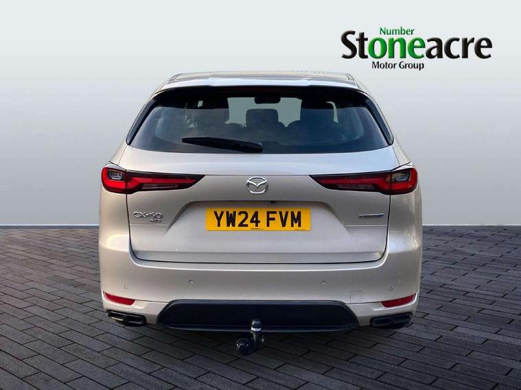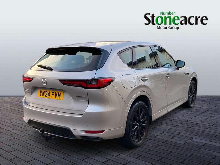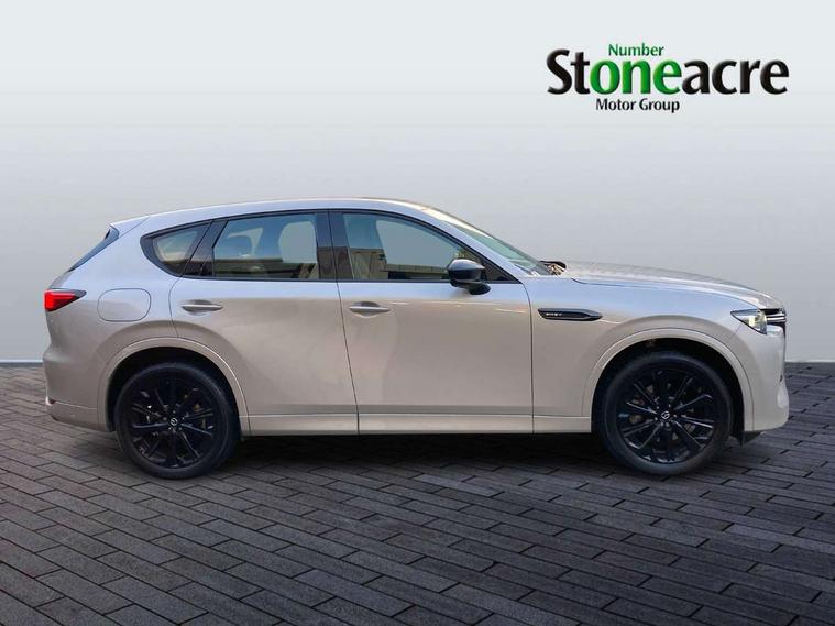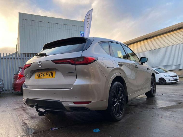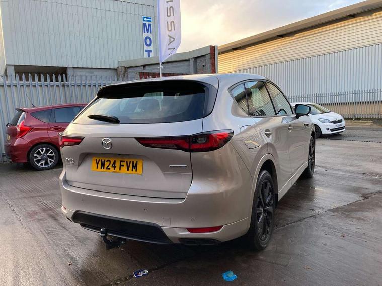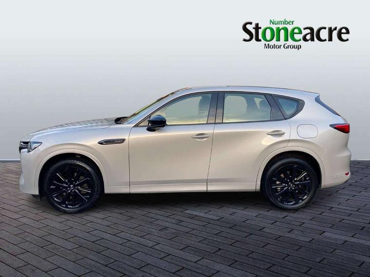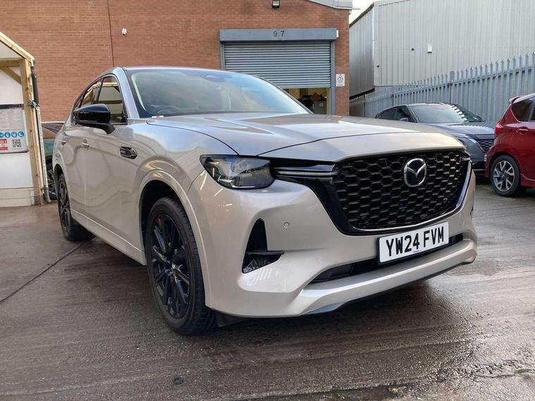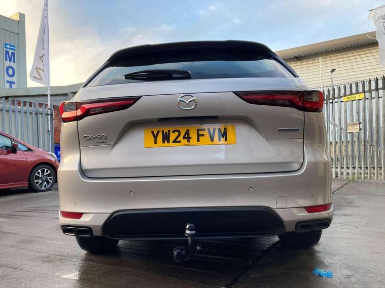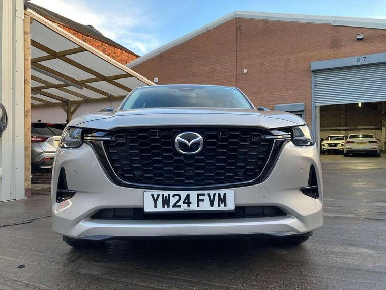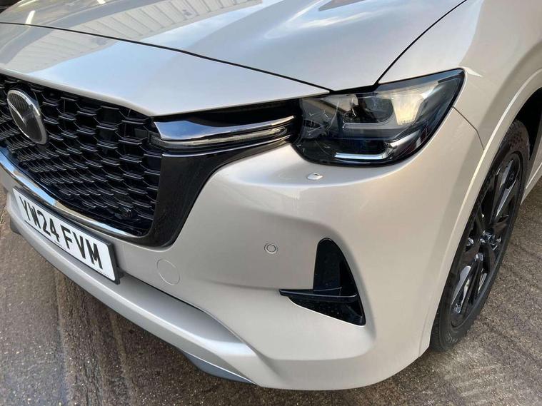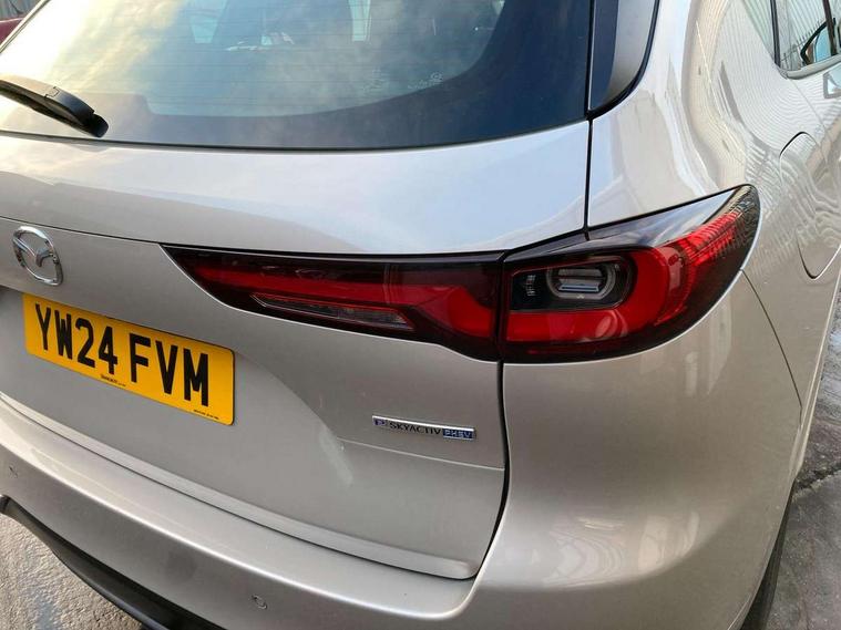 Emergency lane keeping with blind spot assist, Low washer fluid warning light, 12.3" Colour entertainment centre display with mazda connect infotainment, 12.3" TFT Colour display, Adjustable speed limiter, Blind spot assist, Blind spot monitoring with rear cross traffic alert, Cruise control, Distance alert system, Driver attention alert system, Driver Monitoring with personal identification, E-call with GPS, Emergency stop signalling system, Exit warning function, Front and rear parking sensors, Ingress / Egress support and automatic driver position guide, Integrated bluetooth, Intelligent speed assist, Kinematic posture control, Lane keep assist system (LAS) with Lane departure warning system (LDWS), Mazda Driver Personalisation System, Mazda Navigation System with european mapping, Multimedia Commander, PAS, Power lift gate with handsfree function, Power start/stop button, Reversing camera with static guide lines, Speed alert, Traffic sign recognition enhanced with mandated excessive speed warning, Trip computer, Windscreen projected colour active driving display, Wireless apple car play/android Auto, Type 2 Mode 2 cable for AC charging via UK 3-pin plug, 7.2 kw On board Charger, Mi-Drive (Normal, Sport, Off-road, Towing and EV mode), Type 2 Mode 3 cable for AC charging via home or public charge points, AM/FM and DAB radio, Bose surround sound system with 12 Speaker, Bose center point, Bass match and audio pilot technology, Steering wheel mounted audio/bluetooth controls, USB-C inputs (x2 front and x2 rear), Auto dimming driver's door mirror, Automatic headlight levelling, B-pillar and C-pillar garnishes in gloss black finish, Body colour roof spoiler, Body coloured bumpers, Body coloured wheel arch and side mouldings, Coming/leaving home lighting function, Dark plated headlight lense, Dark plating finish signature wing in front grille, Dark plating front side garnish, Differentiated front bumper design to accentuate the intake, Dusk sensing headlights, Electric front/rear windows with one touch auto up/down, Electrically adjustable, heated auto power folding door mirrors with memory, Frameless auto dimming interior rear view mirror, Front kodo turn signal, Front wiper de-icer, Gloss black door mirrors, Headlight washers, High beam control, Honeycomb radiator grille in piano black, LED 3rd brake light, LED headlamps, LED rear signature combination lamps, Rain sensing front wipers with adjustable sensitivity and speed, Rear side wing doors, Rear wiper, Roof pillars and roof lining finished in lighter colour to soften the overall look, Signature LED daytime running lights, Silver decoration panel, 12v power outlet - front, 12V socket in boot, 3 height adjustable rear headrests, 3 seat bench in 2nd row, 40/20/40 split folding rear seats with quick levers in the boot, Ambient lighting, Cargo net, Chrome interior trim accents with steering wheel centre bezel, surround of engine start / stop button and glove box handle, Door panel trim vinyl leather with armrest, Driver and front passenger two rear grab handles with rear coat hooks, Driver and front passenger visors with covered vanity mirror and driver ticket holder, Driver seat electric tilt, slide, recline, height and lumbar adjustment, Driver, front passenger and two rear door pockets, Driver/passenger front seatback pockets, Dual zone climate control air conditioning with rear air vents, Electric telescopic and tilt adjustment steering wheel, Featuring black vinyl leather dashboard trim with titanium coloured accents, Folding rear centre armrest with two cup holders, Front centre storage with two cupholders, Front down lamp with front and rear foot lamps, Front headrests, Front passengers seat electric slide, recline, height and lumbar adjustment, Front seat ventilation with 3-stage setting, Glovebox illumination, Heated front seats with 3 stage setting, Heated leather wrapped steering wheel, Heated outer rear seats with 3-stage setting, ISOFIX child seat anchorage points attached on outer rear seats, Karakuri tonneau cover, Leather upholstery, Leather wrapped gear shift knob, LED illumination luggage compartment, Paddle shift, Practical and spacious front centre armrest storage, Rear seat recline function for rear passenger comfort, Remote fold down rear seats, Roof mounted sunglasses holder, Single front passenger seat, 3 point ELR front seat belts x2 with pretensioners, 3 point ELR rear seat belts, Active bonnet, Anti-lock braking system (ABS), Drivers knee airbag, DSC - Dynamic Stability Control, Electronic parking brake with auto disengage function and auto hold function, Front and rear curtain airbags, Front dual stage driver and single stage front passenger airbags, Front passenger airbag cut-off switch, Front side airbags, Front smart city brake support, Hill decent control, Hill launch assist, Manual rear child locks, Seatbelt reminder for driver/front passenger and rear seats, Traction control, Tyre pressure monitoring system (TPMS), Remote central locking with deadlocking and automatic door lock when driving, Smart keyless entry, Thatcham accredited alarm and immobiliser, Mesh metal film centre console panel, 20" Black metallic alloy wheels, Emergency tyre repair kit,