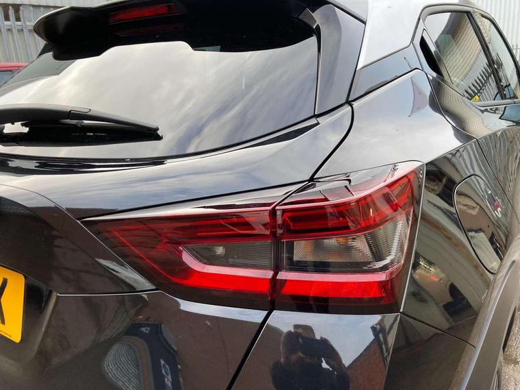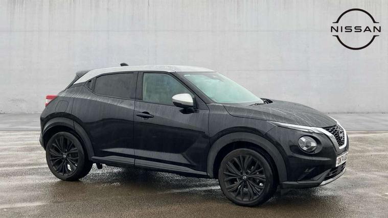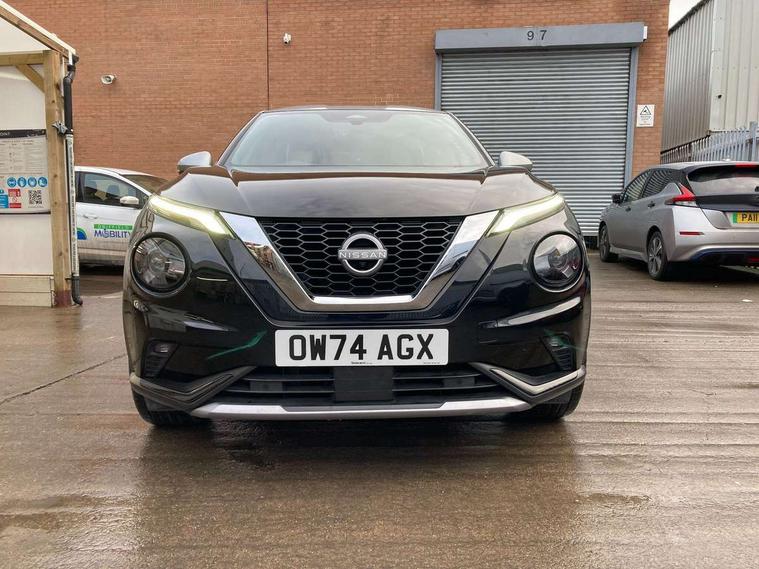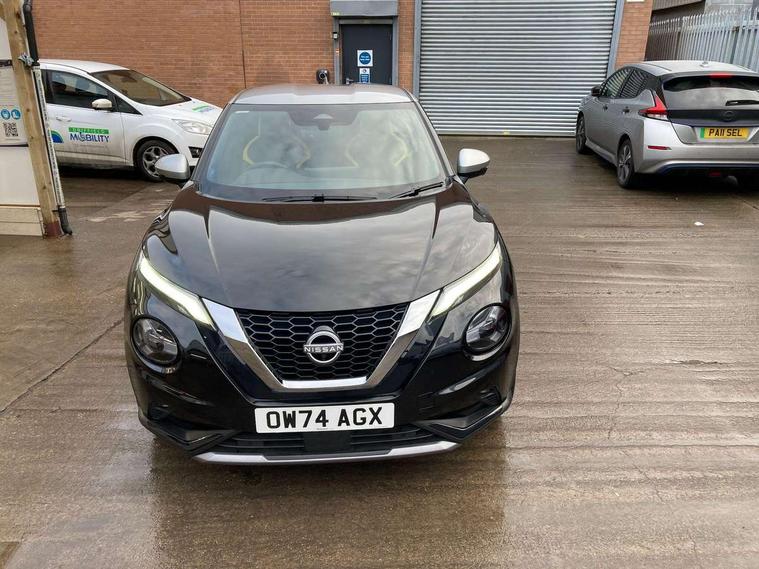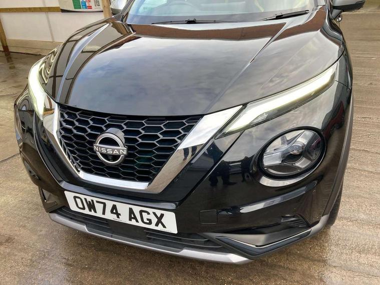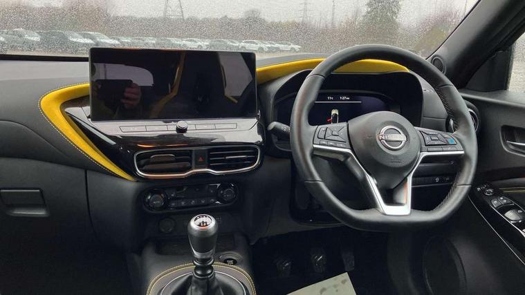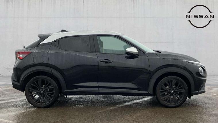 12.3" full colour TFT screen combimeter, Drive modes select (Eco, normal and sport), Emergency and breakdown call, Front parking sensor, Idle start/stop system, Intelligent driver alert system, Intelligent lane intervention, Lane departure warning system, Nissan connect 12.3" touch screen entertainment system, Nissan connect nav with TomTom traffic, Nissan connect services, Outside temperature sensor, Power Steering, Rear parking sensor, Stop/start button, Traffic sign recognition, Trip computer, Voice recognition, WiFi connectivity, Wireless Apple CarPlay and Google Android auto, Wireless Smartphone charger, 10 Bose speakers 6 speakers and 2 headrest speakers for driver/passenger seats, 2 X Rear console USB port, Bluetooth system, USB, Aux-in and 12V socket, Bose personal sound stage control, DAB Digital radio, Auto dimming frameless rear view mirror, Automatic hazard signal with emergency stop signal, Body colour door handles, Electrically adjustable door mirrors with integrated indicators, Follow me home headlights, Front and rear electric window with one touch driver window, Heated and auto folding door mirrors, High beam assist, LED 3rd brake light, LED daytime running lights, LED front fog lights, LED headlamps, LED rear fog lamp, LED rear lamps, One touch passenger window, Rain sensor windscreen wipers, Rear privacy glass, Rear side wing doors, Rear wiper, Roof spoiler, Shark fin roof antenna in solid Black, Three blink turn signal, 3 height adjustable rear headrests, 3 seat bench in 2nd row, 60/40 split folding rear seat, Automatic climate control, Card holder on driver sunvisor, Door ambient lighting, Driver seat back pocket, Driver side rear coat hanger, Driver/passenger sunvisors and vanity mirrors, Front and rear cabin lights, Front armrest, Front door pockets with bottle holders, Front head restraints, Front/rear passenger grab handles, Gear console ambient circle lighting, Height adjustable driver's seat, Internal chrome door handles, Leather gearshift knob, Luggage board, Luggage space lighting, Monoform sporty seats, Multifunction steering wheel, Passenger seat back pocket, Rear door bottle holders, Single front passenger seat, Smooth synthetic leather steering wheel, Synthetic leather kneepad, Telescopic steering wheel adjustment, Two cupholders in front centre console, Two rear isofix child seat anchorage points with top tether, Welcome light and console tray ambient lighting, Advanced safety shield pack - Juke Manual, Gloss black exterior personalisation pack - Juke, Heat pack with height adjustable passenger seats - Juke, Interior personalisation pack - Juke, ABS with EBD and brake assist, Active ride control, Active Trace Control, Driver and passenger airbags, Driver and passenger side airbags, Electric handbrake with auto hold function, Electronic Stability Programme (ESP), Front and rear curtain airbags, Height adjustable seatbelts, Hill start assist, Intelligent emergency braking with pedestrian and cyclist recognition, Rear door child safety locks, Seatbelt reminder for driver/front passenger and rear seats, Three 3 point rear seatbelts, Traction control, Tyre pressure monitoring system, VDC Dynamic Vehicle Control, Alarm, Immobiliser, Intelligent key and start push button with walk away lock and approach unlock functions, Remote central locking, 19" Akari Black alloy wheels, Tyre puncture repair kit,