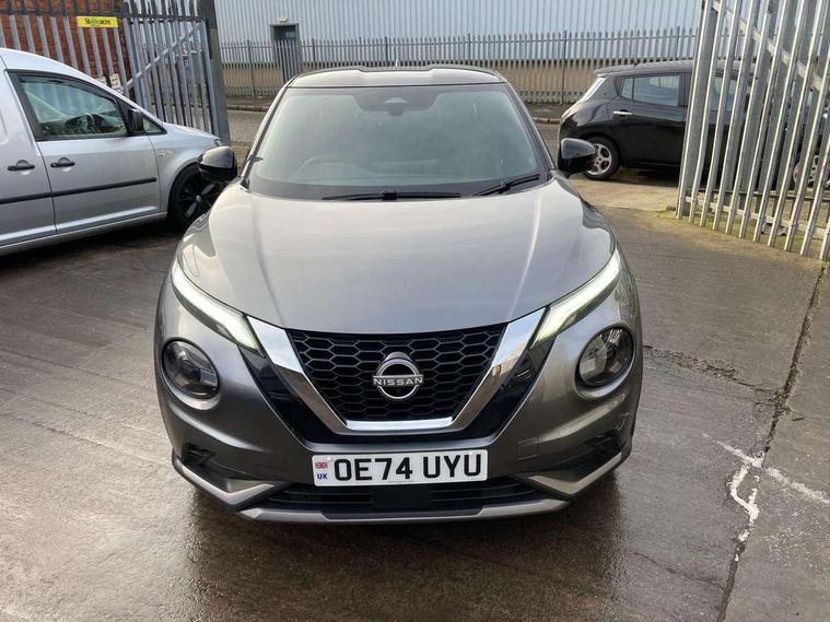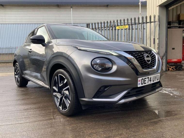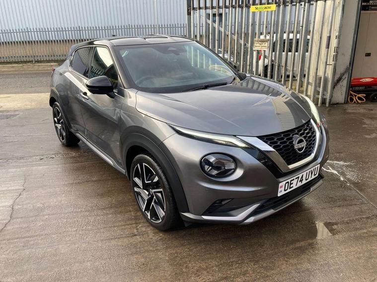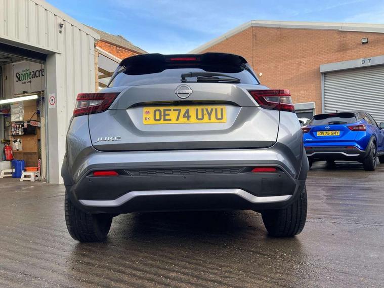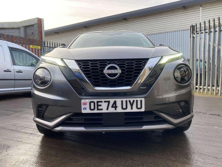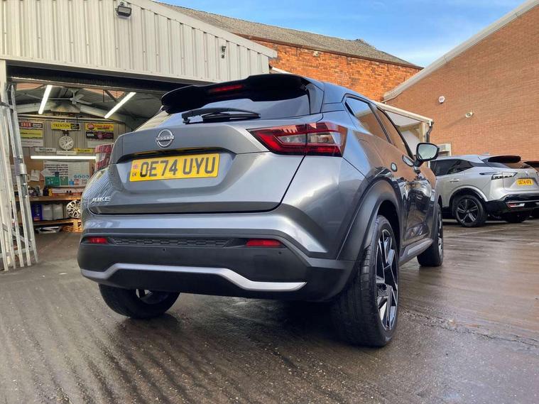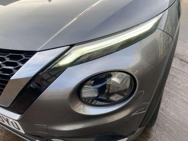 12.3" full colour TFT screen combimeter, Drive modes select (Eco, normal and sport), Emergency and breakdown call, Front parking sensor, Idle start/stop system, Intelligent driver alert system, Intelligent lane intervention, Lane departure warning system, Nissan connect 12.3" touch screen entertainment system, Nissan connect nav with TomTom traffic, Nissan connect services, Outside temperature sensor, Power Steering, Rear parking sensor, Stop/start button, Traffic sign recognition, Trip computer, Voice recognition, WiFi connectivity, Wireless Apple CarPlay and Google Android auto, Wireless Smartphone charger, 10 Bose speakers 6 speakers and 2 headrest speakers for driver/passenger seats, 2 X Rear console USB port, Bluetooth system, USB, Aux-in and 12V socket, Bose personal sound stage control, DAB Digital radio, Auto dimming frameless rear view mirror, Automatic hazard signal with emergency stop signal, Body colour door handles, Electrically adjustable door mirrors with integrated indicators, Follow me home headlights, Front and rear electric window with one touch driver window, Heated and auto folding door mirrors, High beam assist, LED 3rd brake light, LED daytime running lights, LED front fog lights, LED headlamps, LED rear fog lamp, LED rear lamps, One touch passenger window, Rain sensor windscreen wipers, Rear privacy glass, Rear side wing doors, Rear wiper, Roof spoiler, Shark fin roof antenna in solid Black, Three blink turn signal, 3 height adjustable rear headrests, 3 seat bench in 2nd row, 60/40 split folding rear seat, Automatic climate control, Card holder on driver sunvisor, Door ambient lighting, Driver seat back pocket, Driver side rear coat hanger, Driver/passenger sunvisors and vanity mirrors, Front and rear cabin lights, Front armrest, Front door pockets with bottle holders, Front head restraints, Front/rear passenger grab handles, Gear console ambient circle lighting, Height adjustable driver's seat, Internal chrome door handles, Leather gearshift knob, Luggage board, Luggage space lighting, Monoform sporty seats, Multifunction steering wheel, Passenger seat back pocket, Rear door bottle holders, Single front passenger seat, Smooth synthetic leather steering wheel, Synthetic leather kneepad, Telescopic steering wheel adjustment, Two cupholders in front centre console, Two rear isofix child seat anchorage points with top tether, Welcome light and console tray ambient lighting, Advanced safety shield pack - Juke Manual, Heat pack with height adjustable passenger seats - Juke, Interior personalisation pack - Juke, Satin grey exterior personalisation pack - Juke, ABS with EBD and brake assist, Active ride control, Active Trace Control, Driver and passenger airbags, Driver and passenger side airbags, Electric handbrake with auto hold function, Electronic Stability Programme (ESP), Front and rear curtain airbags, Height adjustable seatbelts, Hill start assist, Intelligent emergency braking with pedestrian and cyclist recognition, Rear door child safety locks, Seatbelt reminder for driver/front passenger and rear seats, Three 3 point rear seatbelts, Traction control, Tyre pressure monitoring system, VDC Dynamic Vehicle Control, Alarm, Immobiliser, Intelligent key and start push button with walk away lock and approach unlock functions, Remote central locking, 19" Alloy wheels with deep 3D effect, Tyre puncture repair kit,