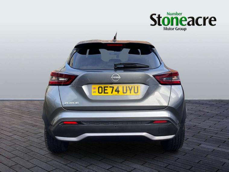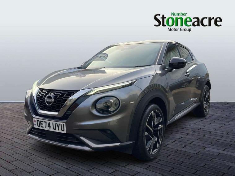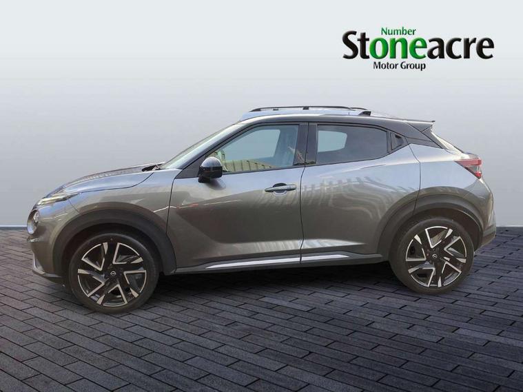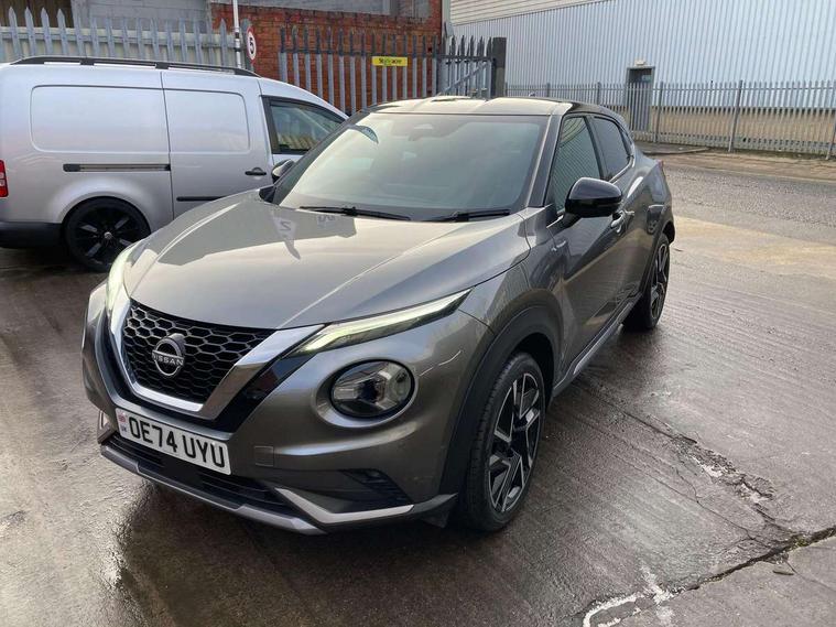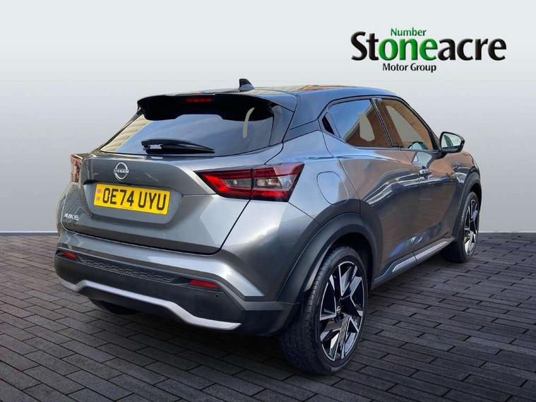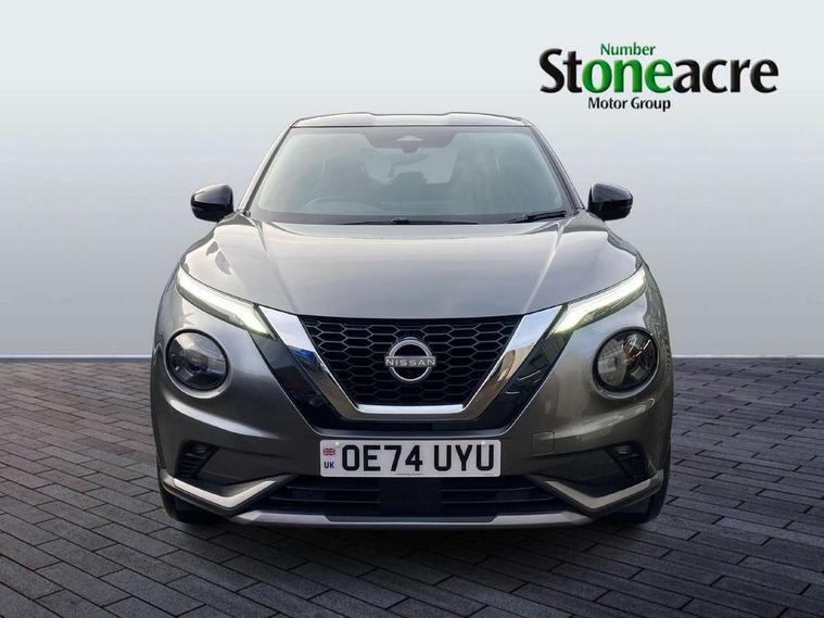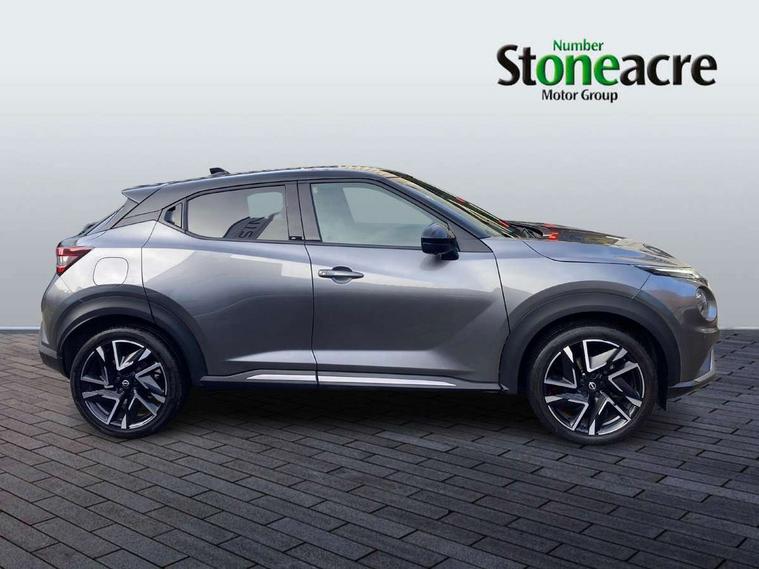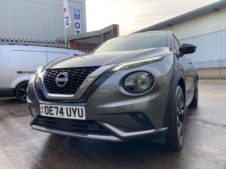 12.3" full colour TFT screen combimeter, Drive modes select (Eco, normal and sport), Emergency and breakdown call, Front parking sensor, Idle start/stop system, Intelligent driver alert system, Intelligent lane intervention, Lane departure warning system, Nissan connect 12.3" touch screen entertainment system, Nissan connect nav with TomTom traffic, Nissan connect services, Outside temperature sensor, Power Steering, Rear parking sensor, Stop/start button, Traffic sign recognition, Trip computer, Voice recognition, WiFi connectivity, Wireless Apple CarPlay and Google Android auto, Wireless Smartphone charger, 10 Bose speakers 6 speakers and 2 headrest speakers for driver/passenger seats, 2 X Rear console USB port, Bluetooth system, USB, Aux-in and 12V socket, Bose personal sound stage control, DAB Digital radio, Auto dimming frameless rear view mirror, Automatic hazard signal with emergency stop signal, Body colour door handles, Electrically adjustable door mirrors with integrated indicators, Follow me home headlights, Front and rear electric window with one touch driver window, Heated and auto folding door mirrors, High beam assist, LED 3rd brake light, LED daytime running lights, LED front fog lights, LED headlamps, LED rear fog lamp, LED rear lamps, One touch passenger window, Rain sensor windscreen wipers, Rear privacy glass, Rear side wing doors, Rear wiper, Roof spoiler, Shark fin roof antenna in solid Black, Three blink turn signal, 3 height adjustable rear headrests, 3 seat bench in 2nd row, 60/40 split folding rear seat, Automatic climate control, Card holder on driver sunvisor, Door ambient lighting, Driver seat back pocket, Driver side rear coat hanger, Driver/passenger sunvisors and vanity mirrors, Front and rear cabin lights, Front armrest, Front door pockets with bottle holders, Front head restraints, Front/rear passenger grab handles, Gear console ambient circle lighting, Height adjustable driver's seat, Internal chrome door handles, Leather gearshift knob, Luggage board, Luggage space lighting, Monoform sporty seats, Multifunction steering wheel, Passenger seat back pocket, Rear door bottle holders, Single front passenger seat, Smooth synthetic leather steering wheel, Synthetic leather kneepad, Telescopic steering wheel adjustment, Two cupholders in front centre console, Two rear isofix child seat anchorage points with top tether, Welcome light and console tray ambient lighting, Advanced safety shield pack - Juke Manual, Heat pack with height adjustable passenger seats - Juke, Interior personalisation pack - Juke, Satin grey exterior personalisation pack - Juke, ABS with EBD and brake assist, Active ride control, Active Trace Control, Driver and passenger airbags, Driver and passenger side airbags, Electric handbrake with auto hold function, Electronic Stability Programme (ESP), Front and rear curtain airbags, Height adjustable seatbelts, Hill start assist, Intelligent emergency braking with pedestrian and cyclist recognition, Rear door child safety locks, Seatbelt reminder for driver/front passenger and rear seats, Three 3 point rear seatbelts, Traction control, Tyre pressure monitoring system, VDC Dynamic Vehicle Control, Alarm, Immobiliser, Intelligent key and start push button with walk away lock and approach unlock functions, Remote central locking, 19" Alloy wheels with deep 3D effect, Tyre puncture repair kit,