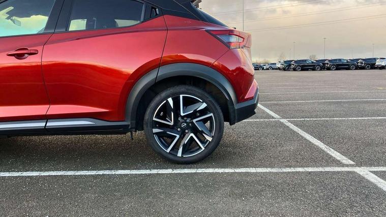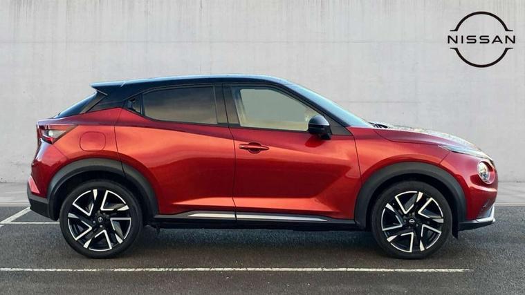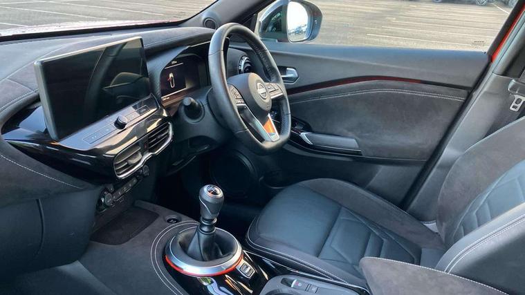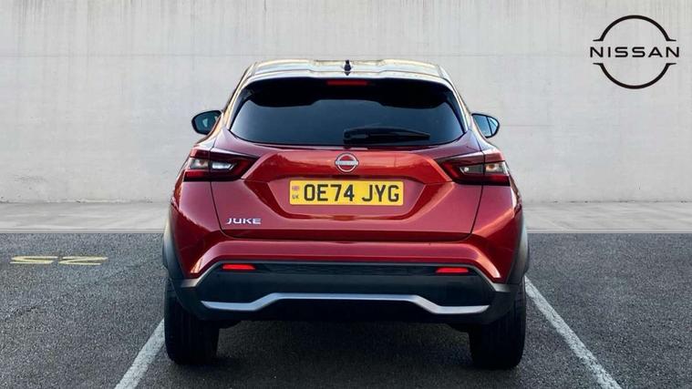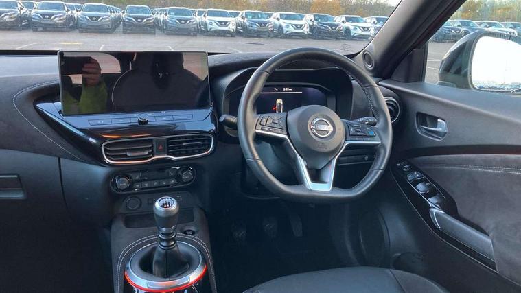 12.3" full colour TFT screen combimeter, Drive modes select (Eco, normal and sport), Emergency and breakdown call, Front parking sensor, Idle start/stop system, Intelligent driver alert system, Intelligent lane intervention, Lane departure warning system, Nissan connect 12.3" touch screen entertainment system, Nissan connect nav with TomTom traffic, Nissan connect services, Outside temperature sensor, Power Steering, Rear parking sensor, Stop/start button, Traffic sign recognition, Trip computer, Voice recognition, WiFi connectivity, Wireless Apple CarPlay and Google Android auto, Wireless Smartphone charger, 10 Bose speakers 6 speakers and 2 headrest speakers for driver/passenger seats, 2 X Rear console USB port, Bluetooth system, USB, Aux-in and 12V socket, Bose personal sound stage control, DAB Digital radio, Auto dimming frameless rear view mirror, Automatic hazard signal with emergency stop signal, Body colour door handles, Electrically adjustable door mirrors with integrated indicators, Follow me home headlights, Front and rear electric window with one touch driver window, Heated and auto folding door mirrors, High beam assist, LED 3rd brake light, LED daytime running lights, LED front fog lights, LED headlamps, LED rear fog lamp, LED rear lamps, One touch passenger window, Rain sensor windscreen wipers, Rear privacy glass, Rear side wing doors, Rear wiper, Roof spoiler, Shark fin roof antenna in solid Black, Three blink turn signal, 3 height adjustable rear headrests, 3 seat bench in 2nd row, 60/40 split folding rear seat, Automatic climate control, Card holder on driver sunvisor, Door ambient lighting, Driver seat back pocket, Driver side rear coat hanger, Driver/passenger sunvisors and vanity mirrors, Front and rear cabin lights, Front armrest, Front door pockets with bottle holders, Front head restraints, Front/rear passenger grab handles, Gear console ambient circle lighting, Height adjustable driver's seat, Internal chrome door handles, Leather gearshift knob, Luggage board, Luggage space lighting, Monoform sporty seats, Multifunction steering wheel, Passenger seat back pocket, Rear door bottle holders, Single front passenger seat, Smooth synthetic leather steering wheel, Synthetic leather kneepad, Telescopic steering wheel adjustment, Two cupholders in front centre console, Two rear isofix child seat anchorage points with top tether, Welcome light and console tray ambient lighting, Advanced safety shield pack - Juke Manual, Heat pack with height adjustable passenger seats - Juke, Interior personalisation pack - Juke, Satin grey exterior personalisation pack - Juke, ABS with EBD and brake assist, Active ride control, Active Trace Control, Driver and passenger airbags, Driver and passenger side airbags, Electric handbrake with auto hold function, Electronic Stability Programme (ESP), Front and rear curtain airbags, Height adjustable seatbelts, Hill start assist, Intelligent emergency braking with pedestrian and cyclist recognition, Rear door child safety locks, Seatbelt reminder for driver/front passenger and rear seats, Three 3 point rear seatbelts, Traction control, Tyre pressure monitoring system, VDC Dynamic Vehicle Control, Alarm, Immobiliser, Intelligent key and start push button with walk away lock and approach unlock functions, Remote central locking, 19" Alloy wheels with deep 3D effect, Tyre puncture repair kit,
