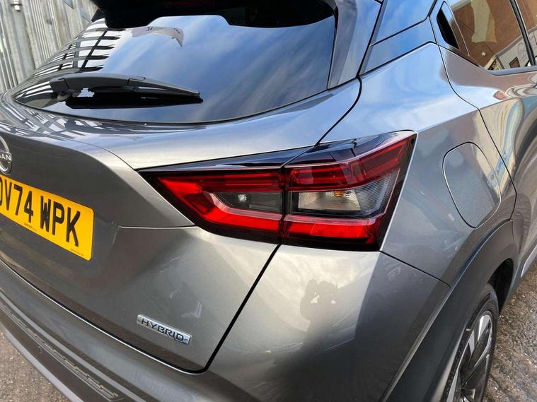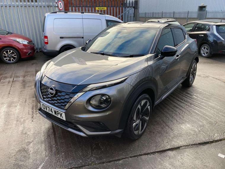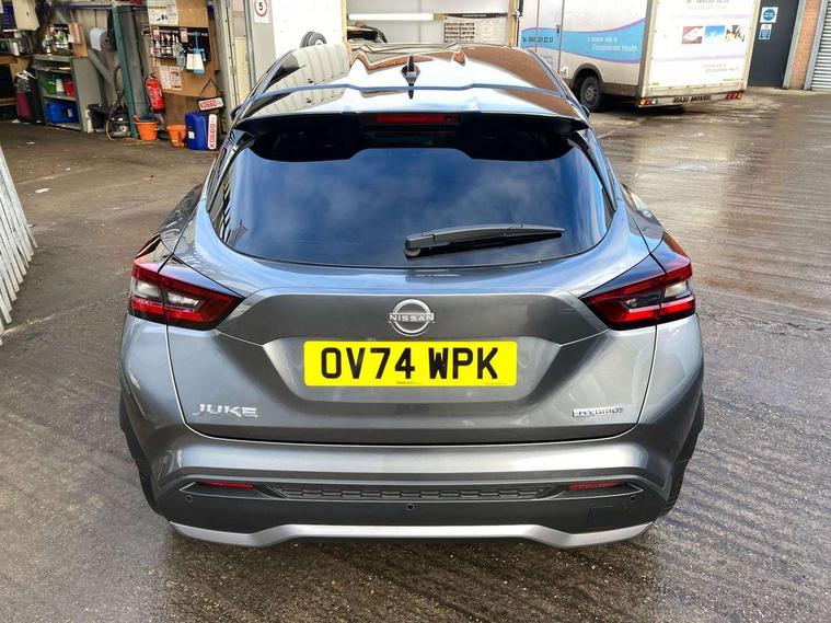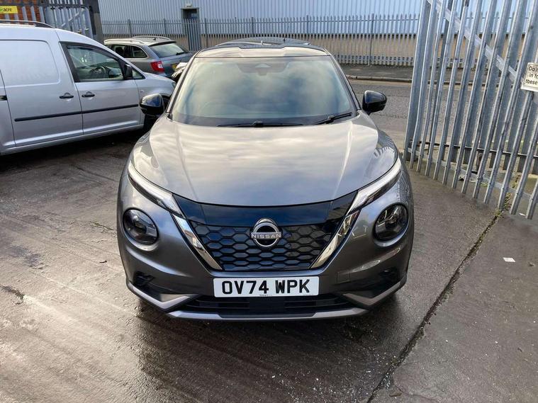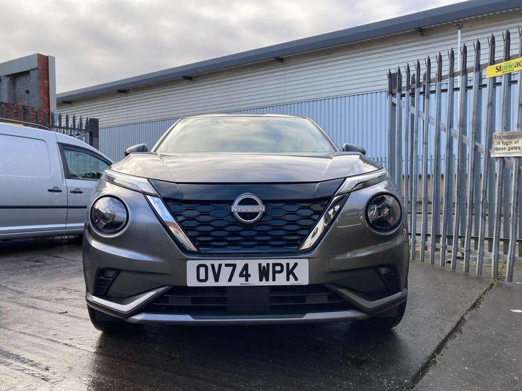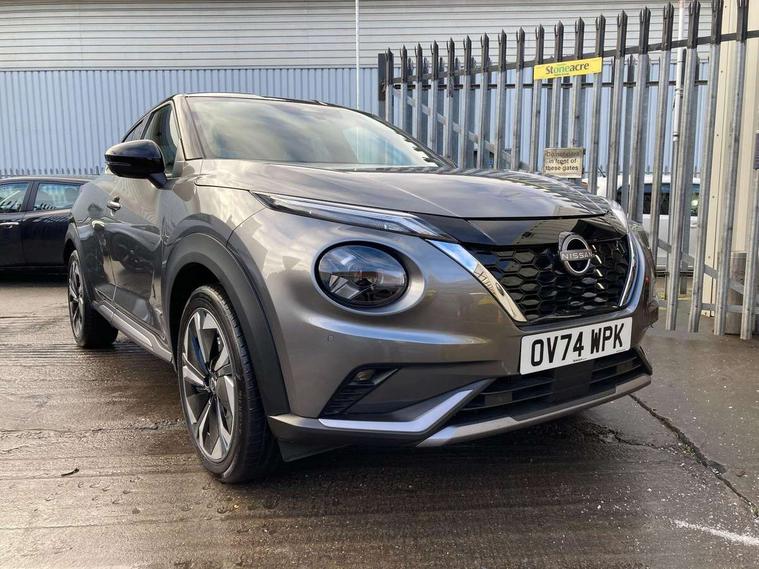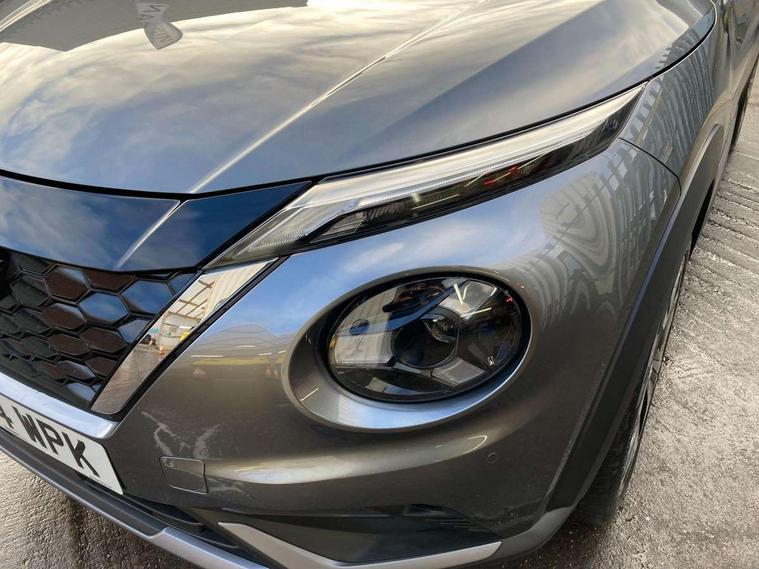 12.3" full colour TFT screen combimeter, Drive modes select (Eco, normal and sport), e-Pedal step, Emergency and breakdown call, EV mode switch, Front parking sensor, Intelligent driver alert system, Intelligent lane intervention, Lane departure warning system, Nissan connect 12.3" touch screen entertainment system, Nissan connect nav with TomTom traffic, Nissan connect services, Outside temperature sensor, Power Steering, Rear parking sensor, Stop/start button, Traffic sign recognition, Trip computer, Voice recognition, WiFi connectivity, Wireless Apple CarPlay and Google Android auto, Wireless Smartphone charger, 10 Bose speakers 6 speakers and 2 headrest speakers for driver/passenger seats, 2 X Rear console USB port, Bluetooth system, USB, Aux-in and 12V socket, Bose personal sound stage control, DAB Digital radio, Auto dimming frameless rear view mirror, Automatic hazard signal with emergency stop signal, Body colour door handles, Electrically adjustable door mirrors with integrated indicators, Follow me home headlights, Front and rear electric window with one touch driver window, Heated and auto folding door mirrors, High beam assist, LED 3rd brake light, LED daytime running lights, LED front fog lights, LED headlamps, LED rear fog lamp, LED rear lamps, One touch passenger window, Rain sensor windscreen wipers, Rear privacy glass, Rear side wing doors, Rear wiper, Roof spoiler, Shark fin roof antenna in solid Black, Three blink turn signal, 3 height adjustable rear headrests, 3 seat bench in 2nd row, 60/40 split folding rear seat, Automatic climate control, Card holder on driver sunvisor, Door ambient lighting, Driver seat back pocket, Driver side rear coat hanger, Driver/passenger sunvisors and vanity mirrors, Front and rear cabin lights, Front armrest, Front door pockets with bottle holders, Front head restraints, Front/rear passenger grab handles, Gear console ambient circle lighting, Height adjustable driver's seat, Internal chrome door handles, Leather gearshift knob, Luggage board, Luggage space lighting, Monoform sporty seats, Multifunction steering wheel, Passenger seat back pocket, Rear door bottle holders, Single front passenger seat, Smooth synthetic leather steering wheel, Synthetic leather kneepad, Telescopic steering wheel adjustment, Two cupholders in front centre console, Two rear isofix child seat anchorage points with top tether, Welcome light and console tray ambient lighting, Heat pack with height adjustable passenger seats - Juke, Interior personalisation pack - Juke, ProPilot pack - Juke Auto, Satin grey exterior personalisation pack - Juke, ABS with EBD and brake assist, Active ride control, Active Trace Control, Driver and passenger airbags, Driver and passenger side airbags, Electric handbrake with auto hold function, Electronic Stability Programme (ESP), Front and rear curtain airbags, Height adjustable seatbelts, Hill start assist, Intelligent emergency braking with pedestrian and cyclist recognition, Rear door child safety locks, Seatbelt reminder for driver/front passenger and rear seats, Three 3 point rear seatbelts, Traction control, Tyre pressure monitoring system, VDC Dynamic Vehicle Control, Alarm, Immobiliser, Intelligent key and start push button with walk away lock and approach unlock functions, Remote central locking, 19" Aero alloy wheels, Tyre puncture repair kit,