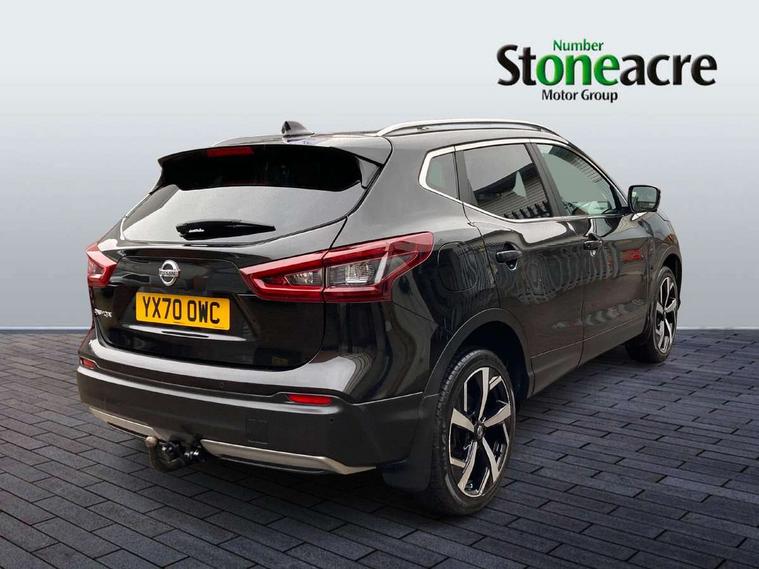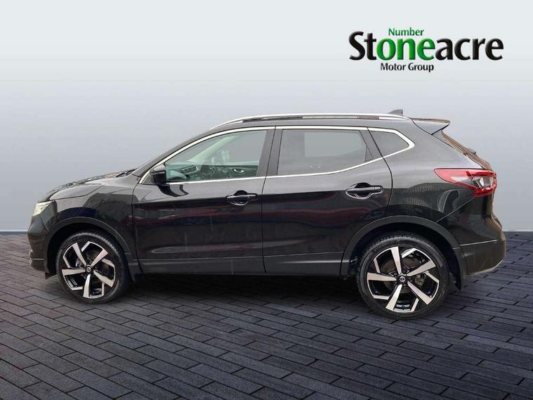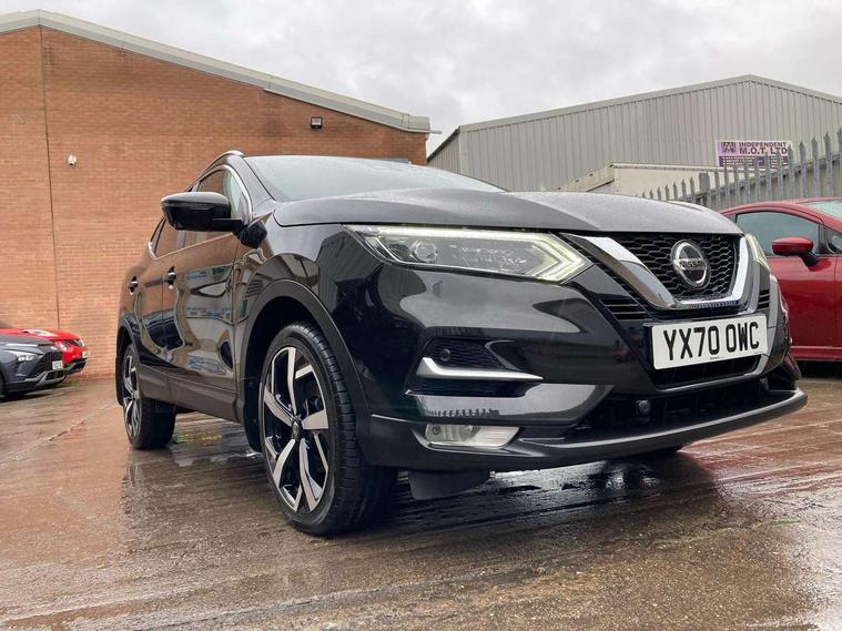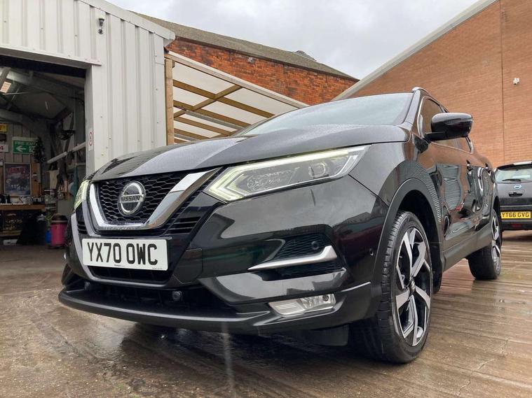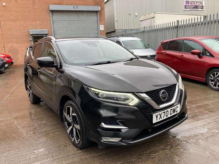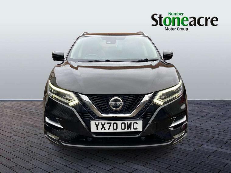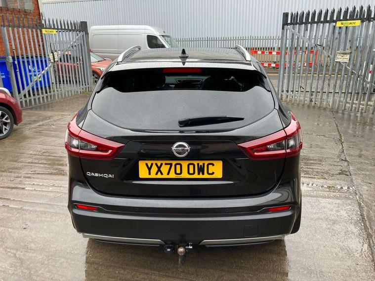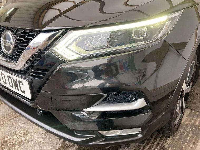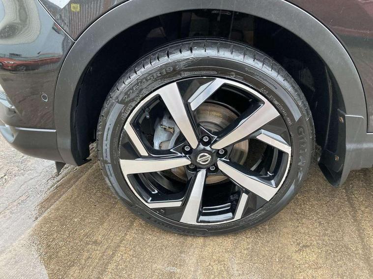 Advanced drive assist display 5'' TFT coloured screen, Android Auto, Apple CarPlay preparation, Bluetooth connectivity, Electric speed sensitive power steering, Front parking sensors, Intelligent around view monitor, Intelligent parking assist, Lane departure warning system, Nissan connect evo 7" touchscreen navigation and entertainment system, Normal or sport selectable steering, Outside temperature sensor, Push button starter, Rear parking sensors, Rear view camera, Service interval indicator, Smartphone integration, Stop/start system, Tomtom connected services, Traffic sign recognition, Trip computer, Voice control system, Diesel particulate filter, AM/FM radio, CD audio system, Aux-in socket, Bose premium 8 speaker system, DAB Digital radio, Rear USB connection, Steering wheel mounted audio controls, USB port, Anti dazzle rear view mirror, Auto wipers, Body colour bumpers, Body coloured door handles, Body coloured door mirrors, Chrome window surround, Daytime running lights dip function when turn signal applied, Electric folding door mirrors, Electric front and rear windows with one touch illuminated window controls, Electric front/rear windows, Electrically adjustable door mirrors, Front fog lights, Halogen headlights, Heated door mirrors, High beam assist, Intelligent auto headlights, LED indicators in door mirrors, Matt silver roof rails, One touch 4x auto windows with illuminated switches, Panoramic sunroof with one touch shade, Privacy glass, Rear roof spoiler, Rear wiper with reverse link, Shark fin antenna, Underbody vortex generators, 2 X front 12v power sockets, 3 height adjustable rear headrests, 60/40 split folding rear seat, Ambient lighting, Ambient lighting in centre console, Boot lighting, Centre console storage box/armrest, Chrome interior door handles, Configurable luggage board system, Dual zone climate control, Electrically adjustable driver seat, Front and rear door pockets with bottle holders, Front and rear seat belt pre-tensioners with load limiters, Height adjustable front headrests, Individual rear seat reading lights, ISOFIX restraints on outer rear seats x2, Leather D shaped steering wheel, Leather gear lever, Leather knee pad, Manual height adjustable front passenger seat, Manual lumbar support on driver seat, Manual lumbar support on passenger seat, Monoform front seats with plastic backboard, One touch electric shade, Parcel shelf stow function under luggage board, Pollen filter, Rear armrest with 2 cupholders, Synthetic leather wrapped door handle with contrasting stitching, Tilt/telescopic adjustable steering wheel, Drive assist package - Qashqai, Heat package - Qashqai, Safety shield plus pack - Qashqai, 6 airbags - Driver, front passenger, curtain and side airbags, ABS, ESP, EBD and brake assist, Auto hold function, Child locks on rear doors, Electronic parking brake, Front and rear seat belt warning, Front passenger airbag deactivation, Height adjustable front seatbelts, Hill start assist, Intelligent emergency braking with pedestrian recognition, Three 3 point rear seatbelts, Tyre pressure monitoring system, Anti-theft immobiliser, Intelligent Key, Remote central locking, Thatcham Cat.1 alarm, Carbon graphite dash trim, 19" Alloy wheels, Tyre puncture repair kit,