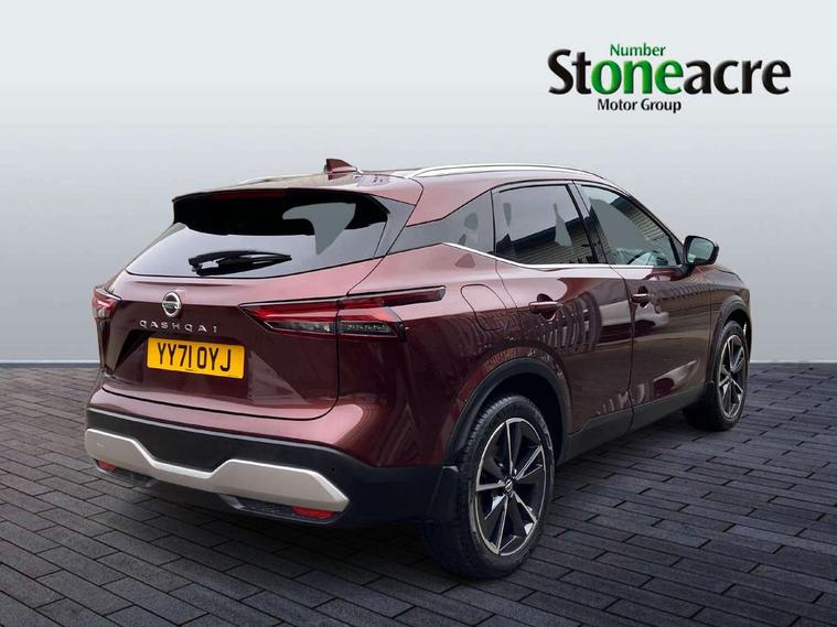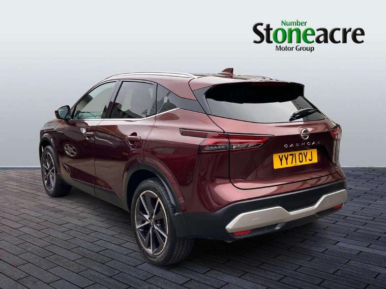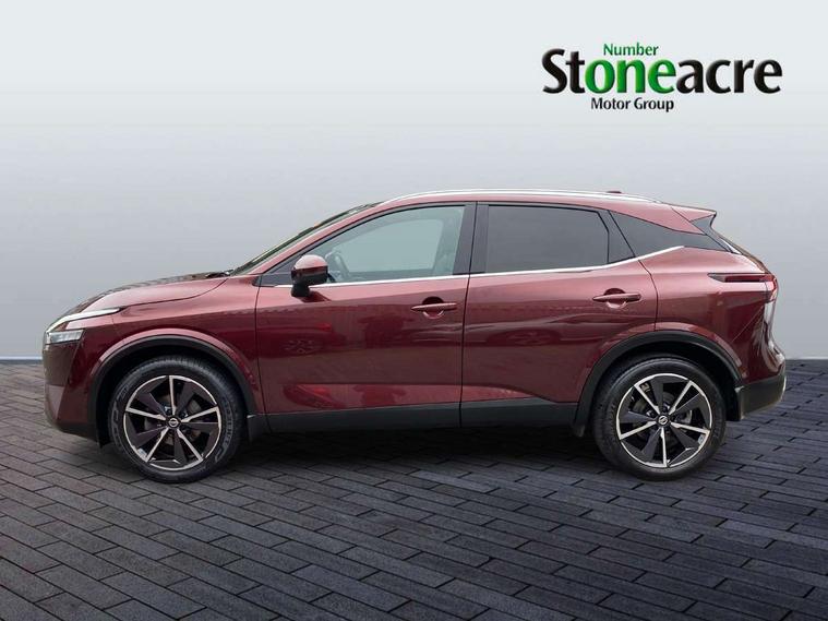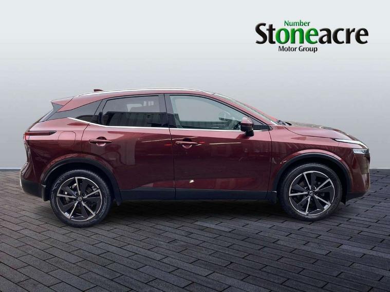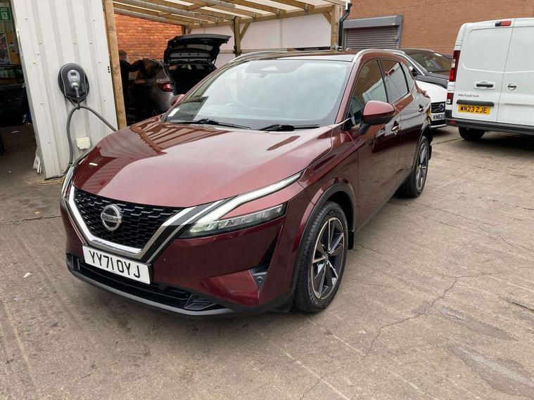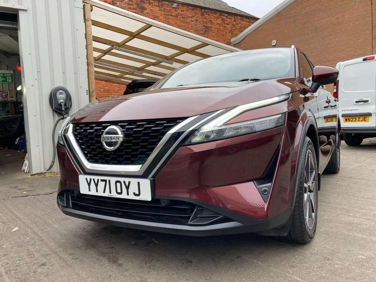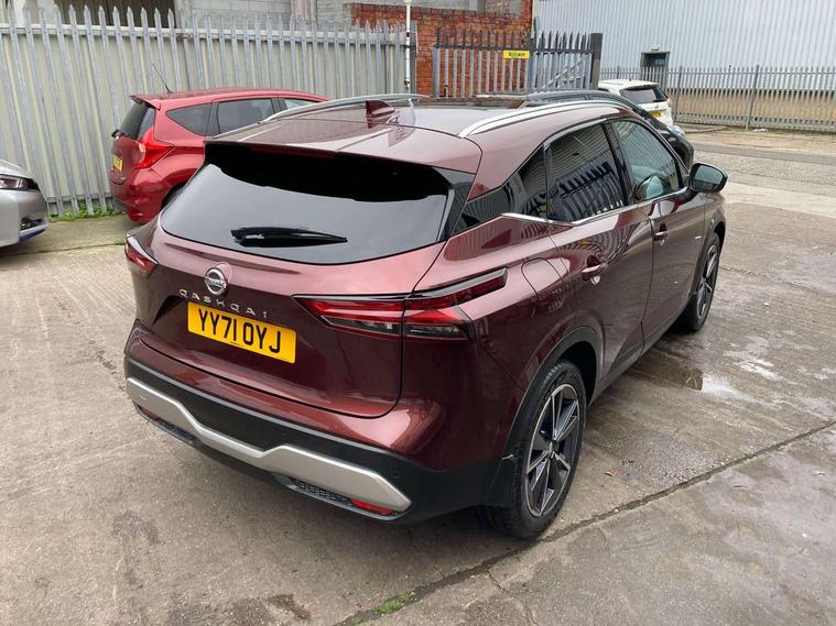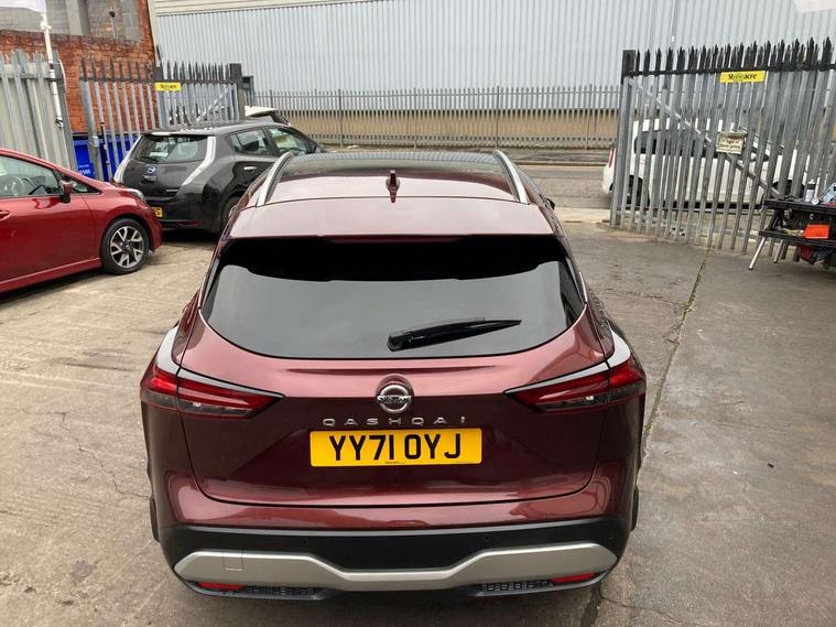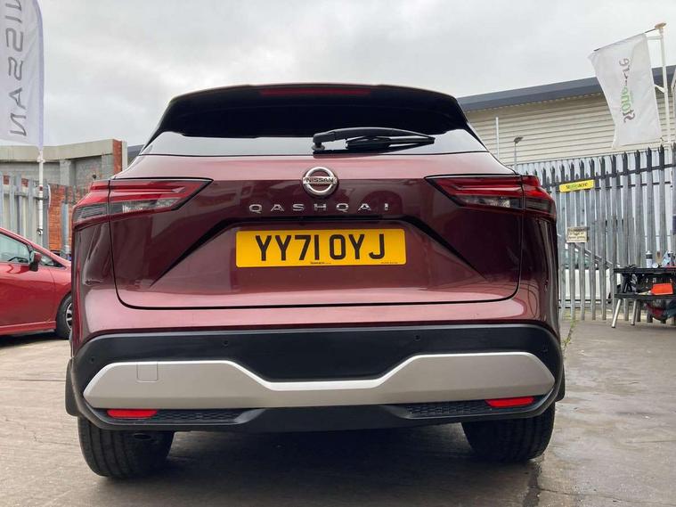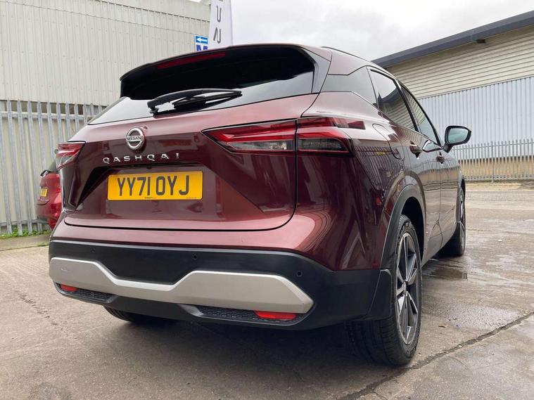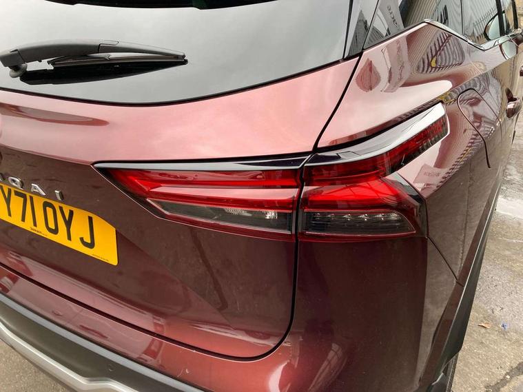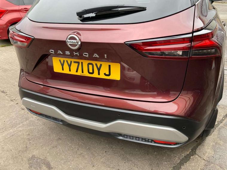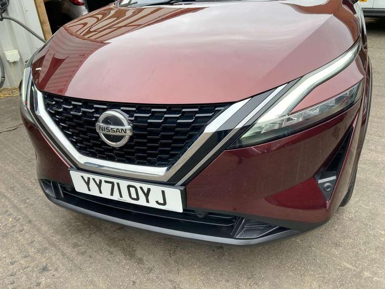 Blind spot warning, Drive modes (sport, normal, eco), Electric speed sensitive power steering, Emergency and breakdown call, Front and rear parking sensors, Full Digital 12.3" TFT Digital Combimeter, Google maps services - search, weather, 3D maps and Google street view, Hands free power tailgate, Idle stop/start system, Intelligent around view monitor, Intelligent Cruise control (ICC), Intelligent driver alert system, Intelligent forward collision warning, Intelligent lane intervention, Lane departure prevention, Lane departure warning system, Moving object detection, Nissan connect 9" touchscreen infotainment system, Nissan connect navigation, Push button starter, Rear cross traffic alert, Remote control services - door locks, lights, horn and car locator, Telematics - notifications and connectivity services, TomTom live traffic services, Traffic sign recognition with legal speed adjustment, Trip computer, Virtual personal assistant and firmware over the air capability, Wireless Apple CarPlay and wired Android Auto, Wireless charging pad, 6 speakers, AM/FM audio system with DAB, Bluetooth audio streaming, Front USB connections (Type-A and Type-C), Rear USB charging only ports (Type-A and Type-C), Auto dimming rear view mirror, Auto rear wiper when reversing, Body colour mirror caps, Body coloured door handles, Bodyside mouldings, Chrome side window finisher, Door handle with button, Dusk sensor, Electric auto folding door mirrors, Electrically adjustable and heated door mirrors with LED turn indicator, Fixed panoramic glass roof with electric sunshade, Follow me home headlights, Front and rear LED turning signals, Intelligent auto headlights, LED daytime running lights, LED rear lights, One touch front and rear electric windows with remote opening and closing, Partially body coloured bumpers, Privacy glass, Rear roof spoiler, Rear side wing doors, Rear styling plate, Roof rails, Shark fin antenna, Splash free rain sensing wipers, Super UV and infrared cut glass, Three blink turn signal, 12v power socket in dashboard and luggage, 2 way electrical driver lumbar adjustment, 2x Rear coat hooks, 3 bench rear seats in 2nd row, 3 rear headrests, 4 folding assist grip, 6 Luggage hooks - 4 on floor, 2 on side, 60/40 split folding rear seat bench, 8 way electric adjustable drivers seat, Ambient lighting around centre console, Ambient lighting in front doors, Centre console storage tray, Chrome interior door handles, Cloth/syntech leather monoform upholstery, Dark headlining, Driver and front passenger sunvisors with illuminated vanity mirrors, Driver seat back pocket, Dual zone automatic climate control with pollen filter, Front and rear door storage, Front cupholders x 2, Front door with bottle holders, Glovebox with light, Hard trunk cover, Height adjustable front headrests, Leather shift knob, Leather steering wheel, Luggage board system, Luggage space lighting, Manual lumbar support on passenger seat, Manually adjustable passenger (slide recline + lifter), Multifunction steering wheel, Passenger seat back pocket, PVC front centre console and armrest, Rear armrest with 2 cupholders, Rear door bottle holders, Single front passenger seat, Soft PVC kneepad, Steering wheel switches, Tilt/telescopic adjustable steering wheel, Two rear isofix child seat anchorage points with top tether, Welcome light and doors with console tray ambient lighting, Drive assist pack - Qashqai, Heat pack - Qashqai, Tech Pack (Drive Assist + HUD), 3x3 point rear seatbelt pretensioners + load limiters, ABS, ESP, EBD and brake assist, Active brake limited slip, Auto hold function, Child locks on rear doors, Curtain and front side, far side airbags, Driver and passenger airbags, Driver, passenger and 2nd row rear seat belt reminder, Electronic parking brake, Front seatbelt pretensioners + load limiters, Height adjustable front seatbelts, Hill start assist, Intelligent blind spot intervention, Intelligent front emergency braking with pedestrian, cyclist recognition and junction assist, Intelligent rear automatic braking, Tyre pressure monitoring system, Vehicle dynamic control, Capless fuel filler, Engine immobiliser, Nissan i-key, Rear bumper with silver insert, Remote central door locking with deadlocking, Thatcham Cat.1 alarm, 19" Alloy wheels,