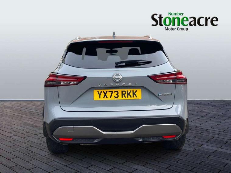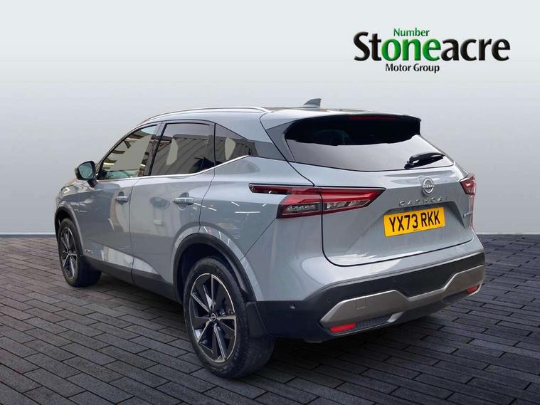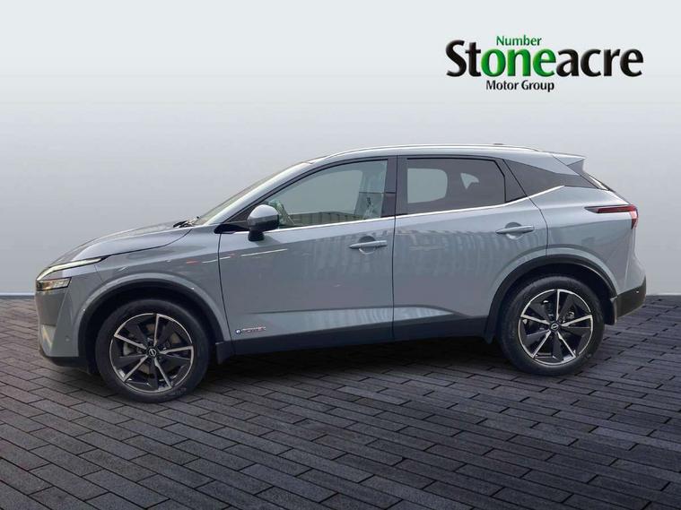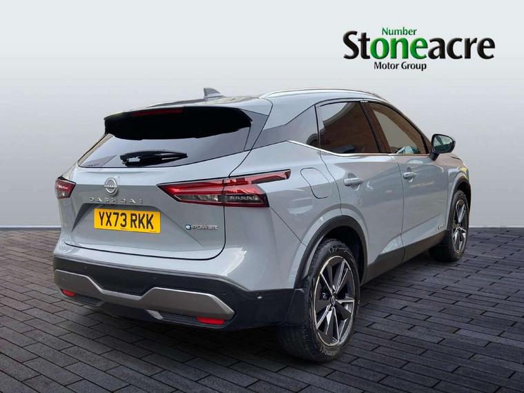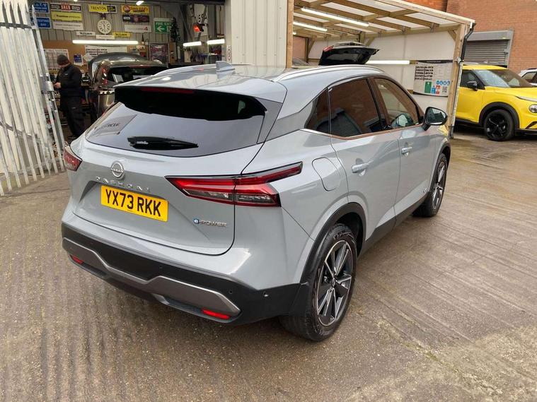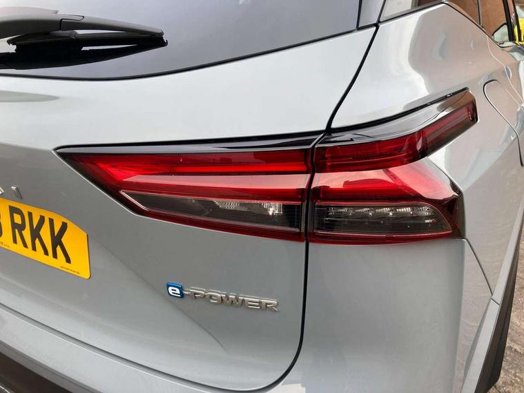 Advanced windscreen head up display, Blind spot warning, Drive modes (sport, normal, eco), e-Pedal step, Electric speed sensitive power steering, Emergency and breakdown call, Front and rear parking sensors, Full Digital 12.3" TFT Digital Combimeter, Google maps services - search, weather, 3D maps and Google street view, Hands free power tailgate, Idle stop/start system, Intelligent around view monitor, Intelligent Cruise control (ICC), Intelligent driver alert system, Intelligent forward collision warning, Intelligent lane intervention, Lane departure prevention, Lane departure warning system, Lane keep assist, Moving object detection, Nissan connect 12.3 inch touchscreen infotainment system, Nissan connect navigation, ProPILOT with Navi-Link, Push button starter, Rear cross traffic alert, Rear view camera, Remote control services - door locks, lights, horn and car locator, Telematics - notifications and connectivity services, TomTom live traffic services, Traffic sign recognition with legal speed adjustment, Trip computer, Virtual personal assistant and firmware over the air capability, Wireless Apple CarPlay and wired Android Auto, Wireless charging pad, 6 speakers, AM/FM audio system with DAB, Bluetooth audio streaming, Front USB connections (Type-A and Type-C), Rear USB charging only ports (Type-A and Type-C), Auto dimming rear view mirror, Auto rear wiper when reversing, Automatic hazard signal with emergency stop signal, Body colour mirror caps, Body coloured door handles, Bodyside mouldings, Chrome side window finisher, Door handle with button, e-POWER badging, Electric auto folding door mirrors, Electrically adjustable and heated door mirrors with LED turn indicator, Follow me home headlights, Front and rear LED turning signals, Headlights auto levelling system, Intelligent auto headlights, LED 3rd brake light, LED daytime running lights, LED headlights with adaptive driving beam, LED rear lights, One touch front and rear electric windows with remote opening and closing, Partially body coloured bumpers, Privacy glass, Rear bumper with graphite insert, Rear reversing light (bulb lighting), Rear roof spoiler, Rear side wing doors, Rear styling plate, Shark fin antenna, Splash free rain sensing wipers, Super UV and infrared cut glass, Thermaclear heated windscreen, Three blink turn signal, 12v power socket in dashboard and luggage, 2x Rear coat hooks, 3 bench rear seats in 2nd row, 3 rear headrests, 4 folding assist grip, 6 Luggage hooks - 4 on floor, 2 on side, 60/40 split folding rear seat bench, Ambient lighting around centre console, Ambient lighting in front doors, Centre console storage tray, Chrome interior door handles, Cloth/syntech leather monoform upholstery, Dark black/blueish PVC wrapping, Dark headlining, Driver and front passenger sunvisors with illuminated vanity mirrors, Driver seat back pocket, Dual zone automatic climate control with pollen filter, e-POWER shifter, Electrically adjustable driver seat, Electrically adjustable lumbar support for driver, Front and rear door storage, Front centre console and armrest, Front cupholders x 2, Front door with bottle holders, Glovebox with light, Hard trunk cover, Heated front seats, Heated steering wheel, Height adjustable driver's seat, Height adjustable front headrests, Height adjustable passenger seat, Leather steering wheel, Luggage board system, Luggage space lighting, Manual lumbar support on passenger seat, Manually adjustable passenger (slide recline + lifter), Multifunction steering wheel, Passenger seat back pocket, Rear armrest with 2 cupholders, Rear door bottle holders, Single front passenger seat, Soft PVC kneepad, Steering wheel switches, Tilt/telescopic adjustable steering wheel, Two rear isofix child seat anchorage points with top tether, Welcome light and doors with console tray ambient lighting, Glass roof pack with roof rails - Qashqai, 3x3 point rear seatbelt pretensioners + load limiters, ABS with EBD and brake assist, Active brake limited slip, Auto hold function, Child locks on rear doors, Curtain and front side, far side airbags, Driver and passenger airbags, Driver, passenger and 2nd row rear seat belt reminder, Electronic parking brake, Front seatbelt pretensioners + load limiters, Height adjustable front seatbelts, Hill start assist, Intelligent blind spot intervention, Intelligent front emergency braking with pedestrian, cyclist recognition and junction assist, Intelligent rear automatic braking, Tyre pressure monitoring system, Vehicle dynamic control, Capless fuel filler, Engine immobiliser, Intelligent Key, Remote central door locking with deadlocking, Thatcham Cat.1 alarm, Interior instrumental panel C finisher, 19" Diamond cut alloy wheels, Tyre puncture repair kit,