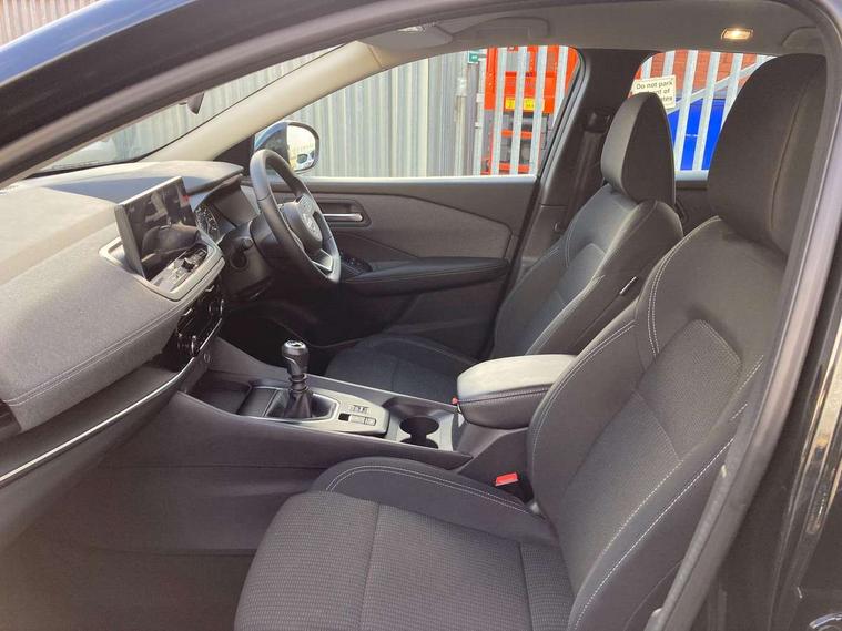 2 front USB-C ports, 7" High definition full colour TFT screen combimeter, Blind spot intervention, Blind spot warning, Drive assist custom mode, Drive modes (sport, normal, eco), Driver drowsiness and attention warning, Electric speed sensitive power steering, Emergency and breakdown call, Emergency lane keep assist, Emergency Stop Signal (ESS), Engine start/stop button, Event data recorder, Idle stop/start system, Intelligent Cruise control (ICC), Intelligent forward collision warning, Intelligent speed assist, Lane departure warning system, Nissan connect 12.3 inch touchscreen infotainment system, Outside temperature sensor, Rear cross traffic alert, Rear parking sensors, Rear view camera, Reversing detection, Wireless Apple CarPlay and wired Android Auto, Limited slip differential, 6 speakers, AM/FM audio system with DAB, Bluetooth audio streaming, Auto rear wiper when reversing, Body colour mirror caps, Body coloured door handles, Bodyside mouldings, Chrome side window finisher, Electric auto folding door mirrors, Electrically adjustable and heated door mirrors with LED turn indicator, Follow me home headlights, High beam assist, Intelligent auto headlights, LED 3rd brake light, LED daytime running lights, LED Headlights, LED rear lights, One touch front and rear electric windows with remote opening and closing, One touch passenger window, Partially body coloured bumpers, Rear roof spoiler, Rear side wing doors, Shark fin antenna, Splash free rain sensing wipers, Three blink turn signal, 3 bench rear seats in 2nd row, 3 rear headrests, 60/40 split folding rear seat bench, Chrome interior door handles, Cloth upholstery, Dark headlining, Dual zone automatic climate control with pollen filter, Front door with bottle holders, Height adjustable front headrests, Leather shift knob, Luggage space lighting, Multifunction steering wheel, Passenger seat back pocket, Rear door bottle holders, Single front passenger seat, TEP steering wheel, Tilt/telescopic adjustable steering wheel, Two rear isofix child seat anchorage points with top tether, White ambient light (Partial area coverage), 3x3 point rear seatbelt pretensioners + load limiters, Autonomous emergency braking, Child locks on rear doors, Curtain and front side, far side airbags, Driver and passenger airbags, Driver, passenger and 2nd row rear seat belt reminder, Electric handbrake with auto hold function, Front seatbelt pretensioners + load limiters, Height adjustable front seatbelts, Hill start assist, intelligent front emergency braking, Rear automatic braking, Tyre pressure monitoring system, Vehicle dynamic control, Engine immobiliser, Intelligent key with walk away lock and approach unlock functions, Remote central door locking with deadlocking, Thatcham alarm, 17" Alloy wheels, Tyre puncture repair kit,