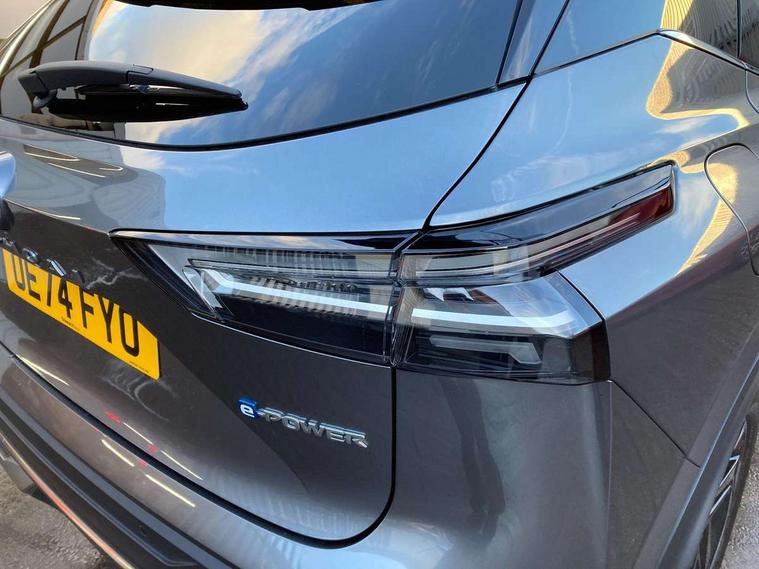 2 front USB-C ports, 2 rear USB-C ports, 360 degree Intelligent around view monitor with moving object detection, Blind spot intervention, Blind spot warning, Drive assist custom mode, Drive modes (sport, normal, eco), Driver drowsiness and attention warning, e-Pedal step, Electric speed sensitive power steering, Emergency and breakdown call, Emergency lane keep assist, Emergency Stop Signal (ESS), Engine start/stop button, EV mode switch, Event data recorder, Front and rear parking sensors, Full Digital 12.3" TFT Digital Combimeter, Google virtual personal assistance, Idle stop/start system, In-car WIFI hotspot, Intelligent Cruise control (ICC), Intelligent forward collision warning, Intelligent speed assist, Lane departure warning system, Nissan connect 12.3 inch touchscreen infotainment system, Nissan connect navigation with google maps, Nissan connect services 2.0 (Google Automotive System), Outside temperature sensor, Rear cross traffic alert, Reversing detection, Traffic jam pilot, Wireless Apple CarPlay/Android Auto, Wireless charging pad, Limited slip differential, 6 speakers, AM/FM audio system with DAB, Bluetooth audio streaming, Auto dimming frameless rear view mirror, Auto rear wiper when reversing, Body colour mirror caps, Body coloured door handles, Bodyside mouldings, Chrome side window finisher, e-POWER badging, Electric auto folding door mirrors, Electrically adjustable and heated door mirrors with LED turn indicator, Follow me home headlights, High beam assist, Intelligent auto headlights, LED 3rd brake light, LED daytime running lights, LED Headlights, LED rear lights, One touch front and rear electric windows with remote opening and closing, One touch passenger window, Partially body coloured bumpers, Rear privacy glass, Rear roof spoiler, Rear side wing doors, Rear styling plate, Shark fin antenna, Splash free rain sensing wipers, Super UV and infrared cut glass, Three blink turn signal, 3 bench rear seats in 2nd row, 3 rear headrests, 60/40 split folding rear seat bench, Chrome interior door handles, Cloth upholstery, Dark headlining, Driver seat back pocket, Dual zone automatic climate control with pollen filter, e-POWER shifter, Front door with bottle holders, Height adjustable front headrests, Luggage board system, Luggage space lighting, Multifunction steering wheel, Passenger seat back pocket, Rear door bottle holders, RGB ambient light (Full area coverage), Single front passenger seat, Smooth leather steering wheel, Tilt/telescopic adjustable steering wheel, Two rear isofix child seat anchorage points with top tether, 3x3 point rear seatbelt pretensioners + load limiters, Autonomous emergency braking, Child locks on rear doors, Curtain and front side, far side airbags, Driver and passenger airbags, Driver, passenger and 2nd row rear seat belt reminder, Electric handbrake with auto hold function, Front seatbelt pretensioners + load limiters, Height adjustable front seatbelts, Hill start assist, intelligent front emergency braking, Rear automatic braking, Tyre pressure monitoring system, Vehicle dynamic control, Engine immobiliser, Intelligent key with walk away lock and approach unlock functions, Remote central door locking with deadlocking, Thatcham alarm, 18" Diamond cut alloy wheels, Tyre puncture repair kit,