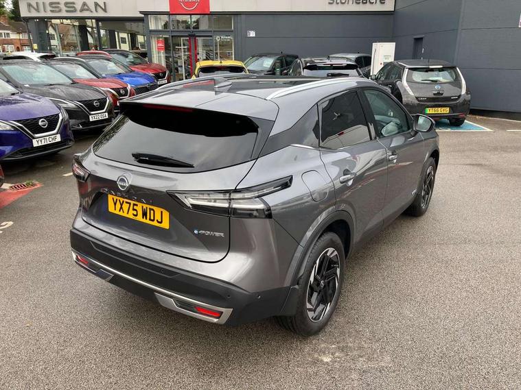 2 front USB-C ports, 2 rear USB-C ports, 360 degree Intelligent around view monitor with moving object detection, Blind spot warning, Drive assist custom mode, Drive modes (sport, normal, eco), Driver drowsiness and attention warning, e-Pedal step, Electric speed sensitive power steering, Emergency and breakdown call, Emergency lane keep assist, Emergency Stop Signal (ESS), Engine start/stop button, EV mode switch, Event data recorder, Front and rear parking sensors, Full Digital 12.3" TFT Digital Combimeter, Google virtual personal assistance, Idle stop/start system, In-car WIFI hotspot, Intelligent Cruise control (ICC), Intelligent driver alert system, Intelligent forward collision warning, Intelligent lane intervention, Intelligent speed assist, Lane departure warning system, Maximum speed limiter, Nissan connect 12.3 inch touchscreen infotainment system, Nissan connect navigation with google maps, Nissan connect services 2.0 (Google Automotive System), Outside temperature sensor, Propilot assist with Navi-Link, ProPilot park, Rear cross traffic alert, Remote control services - door locks, lights, horn and car locator, Reversing detection, Traffic jam pilot, Traffic sign recognition with legal speed adjustment, Trip computer, Wireless Apple CarPlay/Android Auto, Wireless charging pad, Limited slip differential, 6 speakers, AM/FM audio system with DAB, Bluetooth audio streaming, Auto dimming frameless rear view mirror, Auto rear wiper when reversing, Body colour mirror caps, Body coloured door handles, Bodyside mouldings, Chrome side window finisher, e-POWER badging, Electric auto folding door mirrors, Electrically adjustable and heated door mirrors with LED turn indicator, Follow me home headlights, High beam assist, Intelligent auto headlights, LED 3rd brake light, LED daytime running lights, LED Headlights, LED rear lights, One touch front and rear electric windows with remote opening and closing, One touch passenger window, Partially body coloured bumpers, Rain sensing wipers, Rear privacy glass, Rear roof spoiler, Rear side wing doors, Rear styling plate, Shark fin antenna, Silver roof rails, Splash free rain sensing wipers, Super UV and infrared cut glass, Three blink turn signal, 12v power socket in dashboard and luggage, 3 bench rear seats in 2nd row, 3 rear headrests, 60/40 split folding rear seat bench, Chrome interior door handles, Cloth upholstery, Driver and passenger sunvisors with illuminated vanity mirrors, Driver seat back pocket, Dual zone automatic climate control with pollen filter, e-POWER shifter, Electrically adjustable lumbar support for driver, Front centre console and armrest, Front cupholders, Front door with bottle holders, Height adjustable driver seat, Height adjustable front headrests, Height adjustable passenger seat, Luggage board system, Luggage space lighting, Multifunction steering wheel, Passenger seat back pocket, Rear door bottle holders, Rear seat armrest with 2 cupholders, RGB ambient light (Full area coverage), Single front passenger seat, Smooth leather steering wheel, Tilt/telescopic adjustable steering wheel, Two rear isofix child seat anchorage points with top tether, 3x3 point rear seatbelt pretensioners + load limiters, ABS with EBD and brake assist, Autonomous emergency braking, Child locks on rear doors, Curtain and front side, far side airbags, Driver and passenger airbags, Driver, passenger and 2nd row rear seat belt reminder, Electric handbrake with auto hold function, Front seatbelt pretensioners + load limiters, Height adjustable front seatbelts, Hill start assist, Intelligent blind spot intervention, intelligent front emergency braking, Intelligent rear automatic braking, Tyre pressure monitoring system, Vehicle dynamic control, Engine immobiliser, Intelligent key with walk away lock and approach unlock functions, Remote central door locking with deadlocking, Thatcham alarm, 18" Diamond cut alloy wheels, Tyre puncture repair kit,