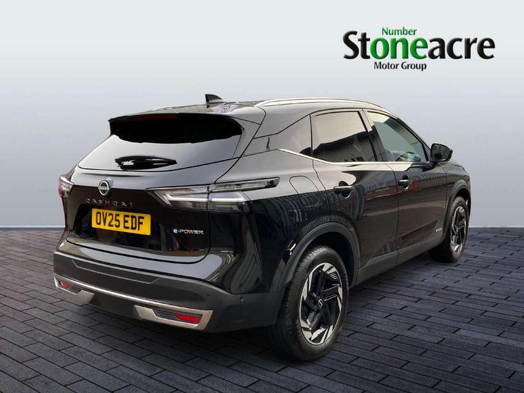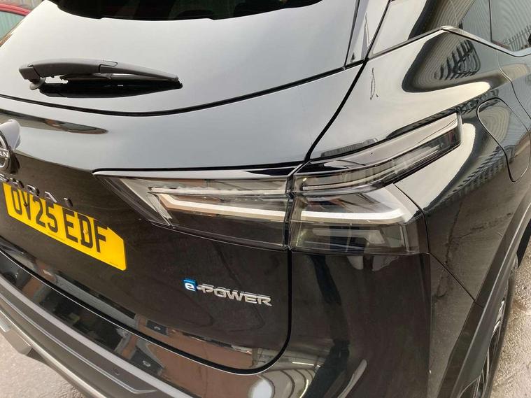 2 front USB-C ports, 2 rear USB-C ports, 360 degree Intelligent around view monitor with moving object detection, Blind spot intervention, Blind spot warning, Drive assist custom mode, Drive modes (sport, normal, eco), Driver drowsiness and attention warning, e-Pedal step, Electric speed sensitive power steering, Emergency and breakdown call, Emergency lane keep assist, Emergency Stop Signal (ESS), Engine start/stop button, EV mode switch, Event data recorder, Front and rear parking sensors, Full Digital 12.3" TFT Digital Combimeter, Google virtual personal assistance, Idle stop/start system, In-car WIFI hotspot, Intelligent Cruise control (ICC), Intelligent forward collision warning, Intelligent speed assist, Lane departure warning system, Nissan connect 12.3 inch touchscreen infotainment system, Nissan connect navigation with google maps, Nissan connect services 2.0 (Google Automotive System), Outside temperature sensor, Rear cross traffic alert, Reversing detection, Traffic jam pilot, Wireless Apple CarPlay/Android Auto, Wireless charging pad, Limited slip differential, 6 speakers, AM/FM audio system with DAB, Bluetooth audio streaming, Auto dimming frameless rear view mirror, Auto rear wiper when reversing, Body colour mirror caps, Body coloured door handles, Bodyside mouldings, Chrome side window finisher, e-POWER badging, Electric auto folding door mirrors, Electrically adjustable and heated door mirrors with LED turn indicator, Follow me home headlights, High beam assist, Intelligent auto headlights, LED 3rd brake light, LED daytime running lights, LED Headlights, LED rear lights, One touch front and rear electric windows with remote opening and closing, One touch passenger window, Partially body coloured bumpers, Rear privacy glass, Rear roof spoiler, Rear side wing doors, Rear styling plate, Shark fin antenna, Splash free rain sensing wipers, Super UV and infrared cut glass, Three blink turn signal, 3 bench rear seats in 2nd row, 3 rear headrests, 60/40 split folding rear seat bench, Chrome interior door handles, Cloth upholstery, Dark headlining, Driver seat back pocket, Dual zone automatic climate control with pollen filter, e-POWER shifter, Front door with bottle holders, Height adjustable front headrests, Luggage board system, Luggage space lighting, Multifunction steering wheel, Passenger seat back pocket, Rear door bottle holders, RGB ambient light (Full area coverage), Single front passenger seat, Smooth leather steering wheel, Tilt/telescopic adjustable steering wheel, Two rear isofix child seat anchorage points with top tether, 3x3 point rear seatbelt pretensioners + load limiters, Autonomous emergency braking, Child locks on rear doors, Curtain and front side, far side airbags, Driver and passenger airbags, Driver, passenger and 2nd row rear seat belt reminder, Electric handbrake with auto hold function, Front seatbelt pretensioners + load limiters, Height adjustable front seatbelts, Hill start assist, intelligent front emergency braking, Rear automatic braking, Tyre pressure monitoring system, Vehicle dynamic control, Engine immobiliser, Intelligent key with walk away lock and approach unlock functions, Remote central door locking with deadlocking, Thatcham alarm, 18" Diamond cut alloy wheels, Tyre puncture repair kit,