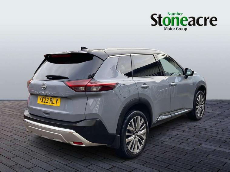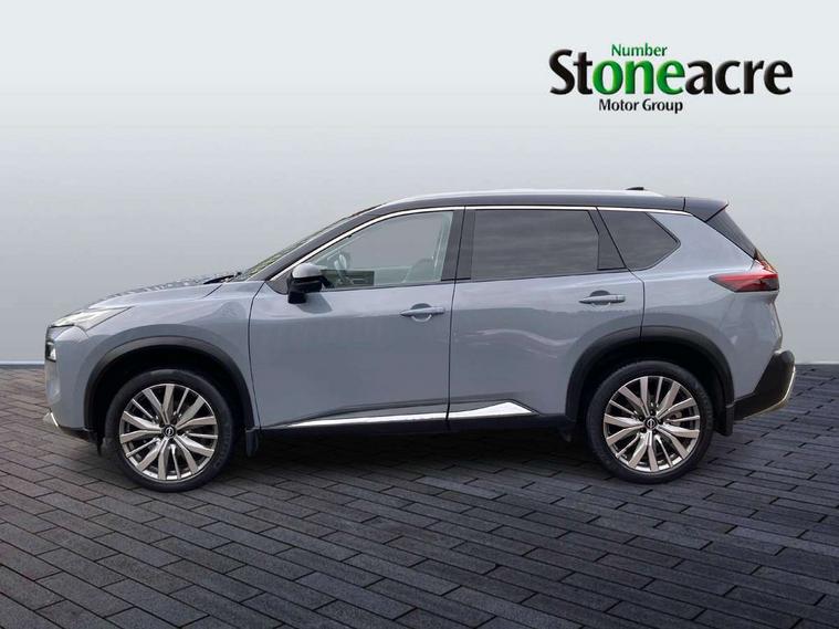Advanced 10.8" head up display, Android auto/Apple CarPlay (Wired), Blind spot warning, Drive modes (sport, normal, eco), Electric speed sensitive power steering, Emergency and breakdown call, Front and rear parking sensors, Full Digital 12.3" TFT Digital Combimeter, Google maps services - search, weather, 3D maps and Google street view, Hands free power tailgate, Idle stop/start system, Intelligent around view monitor, Intelligent driver alert system, Intelligent forward collision warning, Intelligent lane departure warning, Intelligent lane intervention, Intelligent lane keep assist, Lane departure prevention, Maximum speed limiter, Moving object detection, Nissan connect 12.3 inch touchscreen infotainment system, Nissan connect nav with TomTom traffic, Pro pilot and head up display, Push button starter, Rear cross traffic alert, Rear view camera, Remote control services - door locks, lights, horn and car locator, Telematics - notifications and connectivity services, TomTom live traffic services, Traffic jam pilot, Traffic sign recognition with legal speed adjustment, Trip computer, Virtual personal assistant and firmware over the air capability, Wireless apple carplay, Wireless charging pad, AM/FM audio system with DAB, Bluetooth audio streaming, Bose premium acoustimass bass box with digital amplifier, Bose premium sound system with 10 speakers, Digital amplifier, Front USB connections (Type-A and Type-C), Rear USB charging only ports (Type-A and Type-C), 3rd brake light, Auto dimming rear view mirror, Auto rear wiper when reversing, Body colour mirror caps, Body coloured door handles, Bodyside mouldings, Chrome side window finisher, Electric auto folding door mirrors, Electrically adjustable and heated door mirrors, Follow me home headlights, Headlights auto levelling system, High beam assist, Intelligent auto headlights, LED daytime running lights, LED front fog lights, LED headlights with adaptive driving beam, LED rear lights, Memory function for door mirrors, One touch front and rear electric windows with remote opening and closing, Partially body coloured bumpers, Rain sensing wipers, Rear privacy glass, Rear reversing light (bulb lighting), Rear roof spoiler, Rear side wing doors, Rear styling plate, Reverse tilting door mirrors, Shark fin antenna, Splash free wipers, Super UV and infrared cut glass, Thermaclear heated windscreen, Three blink turn signal, 12v power socket in dashboard and luggage, 2 seat bench in 3rd row, 3 bench rear seats in 2nd row, 3 rear headrests, Butteryfly console, Chrome interior door handles, Dark headlining, Driver and front passenger sunvisors with illuminated vanity mirrors, Driver seat back pocket, Electric adjustable 2 way lumbar support for driver, Electrically adjustable driver seat with massage and memory functions, Electrically adjustable passenger seat with massage and memory functions, Front and rear heated seats, Front centre console and armrest, Front cupholders, Front door with bottle holders, Heated steering wheel, Height adjustable driver's seat, Height adjustable front headrests, Height adjustable passenger seat, Leather shift knob, Leather steering wheel, Luggage board system, Luggage space lighting, Multifunction steering wheel, Passenger seat back pocket, Quilted premium leather upholstery, Rear armrest with 2 cupholders, Rear door bottle holders, Single front passenger seat, Sliding second row seats, Split folding 2nd row - 40/20/40, Steering column mounted gear shift paddles, Tilt/telescopic adjustable steering wheel, Tri zone automatic climate control with pollen filter, Two rear isofix child seat anchorage points with top tether, Sky pack - X-Trail, 3x3 point rear seatbelt pretensioners + load limiters, ABS with EBD and brake assist, Active brake limited slip, Auto hold function, Child locks on rear doors, Curtain and front side, far side airbags, Driver and passenger airbags, Driver, passenger and 2nd row rear seat belt reminder, Electronic parking brake, Front seatbelt pretensioners + load limiters, Height adjustable front seatbelts, Hill start assist, Intelligent blind spot intervention, Intelligent front emergency braking with pedestrian, cyclist recognition and junction assist, Intelligent rear automatic braking, Tyre pressure monitoring system, Vehicle dynamic control, Advance intelligent key with driver memory storage (seats, mirrors, audio), Engine immobiliser, Remote central door locking with deadlocking, Thatcham Cat.1 alarm, 20" Diamond cut alloy wheels, Tyre puncture repair kit,