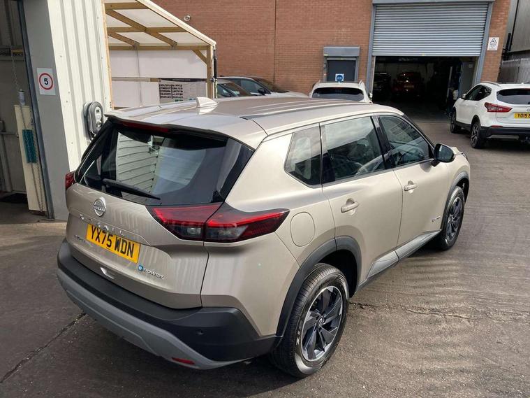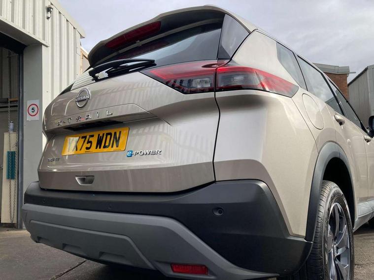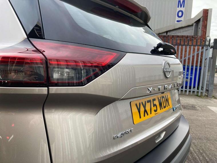 Android auto/Apple CarPlay (Wired), Blind spot warning, Drive assist custom mode, Drive modes (sport, normal, eco, snow, off-road), Driver drowsiness and attention warning, e-Pedal step, Electric speed sensitive power steering, Emergency and breakdown call, Event data recorder, Front and rear parking sensors, Full Digital 12.3" TFT Digital Combimeter, Idle stop/start system, Intelligent driver alert system, Intelligent forward collision warning, Intelligent lane departure warning, Intelligent lane intervention, Intelligent lane keep assist, Maximum speed limiter, Moving object detection, Nissan connect 8" touchscreen infotainment system, Push button starter, Rear cross traffic alert, Rear view camera, Reversing detection, Traffic sign recognition with legal speed adjustment, Trip computer, Wireless charging pad, 6 speakers, AM/FM audio system with DAB, Bluetooth audio streaming, Front USB connections (Type-A and Type-C), Rear USB charging only ports 2 Type-C, Auto dimming rear view mirror, Auto rear wiper when reversing, Body colour mirror caps, Body coloured door handles, Bodyside mouldings, Chrome side window finisher, e-4ORCE badging, e-POWER badging, Electric auto folding door mirrors, Electrically adjustable and heated door mirrors, Follow me home headlights, High beam assist, Intelligent auto headlights, LED 3rd brake light, LED daytime running lights, LED Headlights, LED rear lights, One touch front and rear electric windows with remote opening and closing, Partially body coloured bumpers, Rain sensing wipers, Rear reversing light (bulb lighting), Rear roof spoiler, Rear side wing doors, Rear styling plate, Shark fin antenna, Splash free wipers, Three blink turn signal, 12v power socket in dashboard and luggage, 3 bench rear seats in 2nd row, 3 rear headrests, 60/40 split folding rear seat bench, Butteryfly console, Chrome interior door handles, Cloth monoform upholstery, Driver and front passenger sunvisors with illuminated vanity mirrors, Driver seat back pocket, Dual zone automatic climate control with pollen filter, Front centre console and armrest, Front cupholders, Front door with bottle holders, Height adjustable driver's seat, Height adjustable front headrests, Height adjustable passenger seat, Leather shift knob, Leather steering wheel, Luggage space lighting, Multifunction steering wheel, Passenger seat back pocket, Rear armrest with 2 cupholders, Rear door bottle holders, Single front passenger seat, Tilt/telescopic adjustable steering wheel, Two rear isofix child seat anchorage points with top tether, 3x3 point rear seatbelt pretensioners + load limiters, ABS with EBD and brake assist, Active brake limited slip, Auto hold function, Child locks on rear doors, Curtain and front side, far side airbags, Driver and passenger airbags, Driver, passenger and 2nd row rear seat belt reminder, Electronic parking brake, Front seatbelt pretensioners + load limiters, Height adjustable front seatbelts, Hill start assist, Intelligent blind spot intervention, Intelligent front emergency braking with pedestrian, cyclist recognition and junction assist, Intelligent rear automatic braking, Tyre pressure monitoring system, Vehicle dynamic control, Approach unlock and walk away lock, Engine immobiliser, Remote central door locking with deadlocking, Thatcham Cat.1 alarm, 18" Diamond cut alloy wheels, Tyre puncture repair kit,