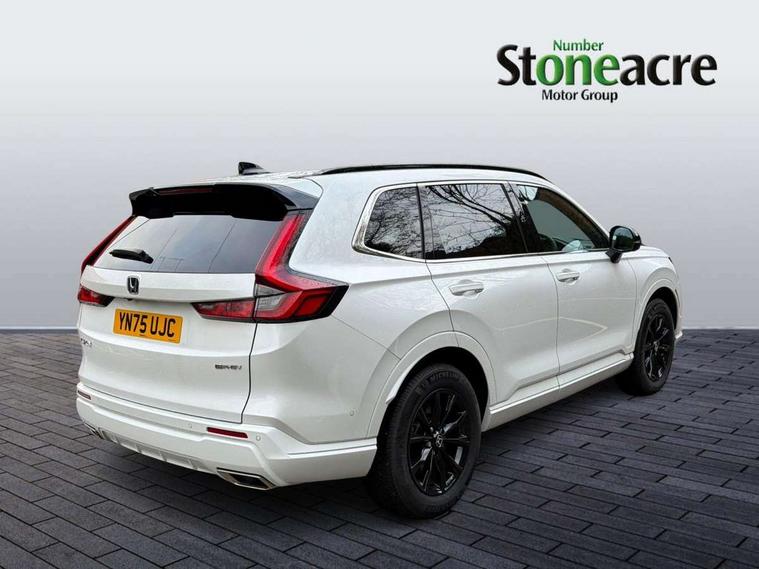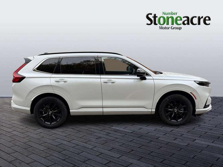 10.2" Multi information display, 4 x front 4 x rear 4 x side parking sensors, Active lane change assist, Adaptive cruise control with Cornering speed assist, Adjustable speed limiter, Agile handling assist, BLIS (Blind Spot Information System) with Cross Traffic Monitor, Bluetooth hands free telephone connection, Crossing traffic warning front, Drive Mode (EV, Econ, Sport, Normal, Snow, Tow), Driver attention monitoring system, E-call, eCall emergency call system, Electric power steering, Emergency stop signalling system, Forward collision warning, Handfree power tailgate with kick sensor and walk away close, Head up Display, HEV mode, Honda 360 sensing, Honda CONNECT navigation with My Honda+ 9" touchscreen, AM/FM/DAB, Apple Carplay and Android Auto, live traffic info, Honda parking pilot, Intelligent speed limiter, Lane change collision mitigation, Lane departure warning system, Lane keep assist system, Lane watch, Lead car departure notification system, Low speed following, Power meter, Road departure mitigation, Traffic jam assist, Traffic sign recognition, Wireless apple carplay, Wireless charging, Adaptive performance damper, Vehicle stability assist, 12 speakers, 1X USB (A/2.5A) and 1x Charger (C/3A) on Front, Bose premium sound system, Centre speakers, DAB+ radio, Dashboard centre speaker, Front tweeters, Rear USB 2x Charger (C/3A), Steering wheel mounted controls, Subwoofer, Active cornering lights, Adaptive driving beam, Auto dimming rear view mirror, Auto headlight adjuster, Auto headlights, Auto wipers, Black door mirror caps, Black paint + exculsive grille, Black Shark-fin antenna, Body colour bumpers, Body colour door handles, Body colour plus black colour roof spoiler, Electrically adjustable and heated door mirrors, Electrically folding door mirrors, Exhaust pipe finisher, Exterior mirror tilt for reverse, Front and rear electric windows, Front LED Indicator lights, Front turn type led with sequential, Headlight auto on/off timer, High gloss black window garnish, LED 3rd brake light, LED daytime running lights, LED front fog lights, LED Headlights, LED rear lights, Multi view camera system in door mirrors, Panoramic opening glass sunroof, Privacy glass, Rain sensor, Rear side wing doors, Rear wiper, Roof rails, Trailer stability assist, Welcome home function, 3 seat bench in 2nd row, 4 way driver lumbar support, 4 way electrically adjustable passenger seat without height adjust, 60/40 split folding rear seat, 8 way electrically adjustable drivers seat + mirror memory, Accessory sockets in Front & Trunk, Air conditioning - Rear vent, Ambient light in roof, Cargo net hooks, Courtesy lights, Dark roof lining, Driver and front passenger seat armrests, Driver/passenger front seatback pockets, Driver/passenger sunvisors and vanity mirrors, Driver/passenger sunvisors with illuminated vanity mirrors, Dual zone automatic climate control, Film layered honeycomb metal interior panels, Footwell ambient interior light front and rear, Front and rear ambient light (door handle&door line) and front cup holder, Front centre armrest, Front map lights, Front ventilated seats, Genuine leather steering wheel, Heated front seats, Heated rear seats, Heated steering wheel, Hybrid emblem, I-Size ISO Fix Points, Instrument panel with garnish wood film, Leather upholstery, Luggage floor box, Meter illumination, Platinum chrome interior door handles, Rear centre armrest, Rear headrests, Rear reading lights, Reclining rear seats, Single front passenger seat, Sport pedals, Sunglasses holder with mirror, Synthetic headrest, Tilt/telescopic adjustable steering wheel, Tonneau cover, Trunk light, Exclusive styling with sport paint pack - CR-V, 5 x 3 point seatbelts, ABS/EBD, Anti-whiplash front headrests, Brake assist function, Collision mitigation braking system, Deflation detection system, Driver airbag, Driver SRS airbag (single stage inflation), Electronic parking brake with auto hold, Front and rear collision mitigation throttle control, Front and rear curtain airbags, Front and rear seat belts with emergency locking retractor (ELR), Front centre airbag, Front passenger airbag, Front side airbags, Hill descent control, Hill start assist, Knee airbags (DR) and (AS), Low speed brake system, Manual child lock in rear doors, Paddle deceleration control, Passenger SRS airbag with cut off switch, Rear side airbags, Honda super locks, Immobiliser, Mirrors and windows key fob operation, Remote central locking with 2 key fobs, Security alarm, Selectable door unlock, Smart entry + Smart start, Tilt sensors, Ultrasonic security sensor, Flat tyre solution temper tyre/repair kit,