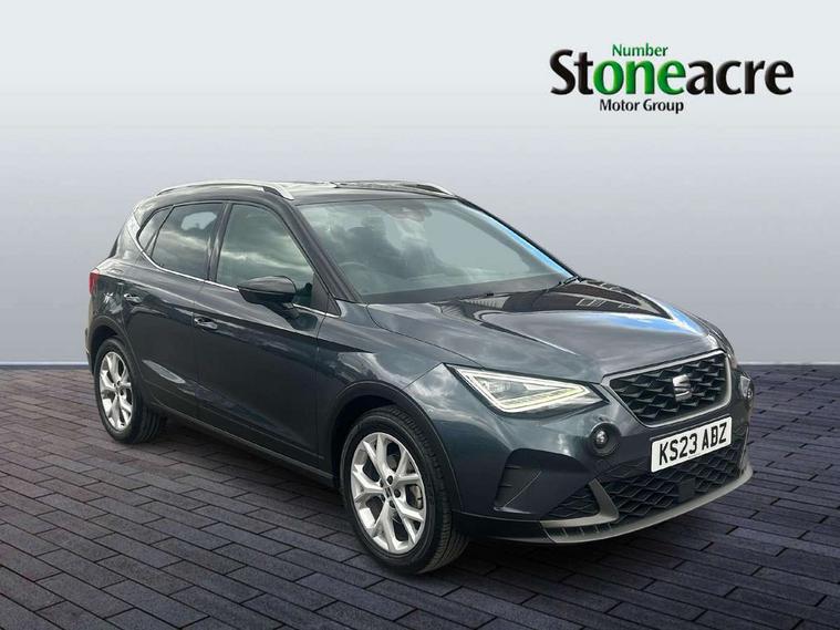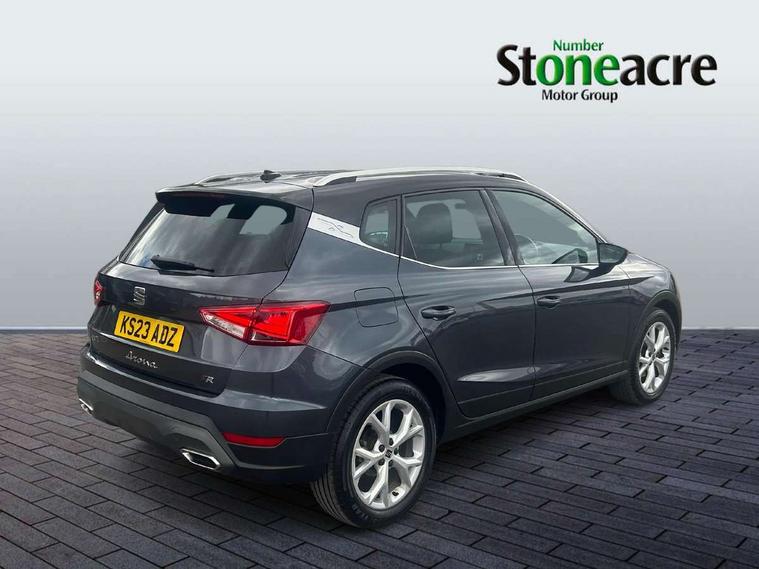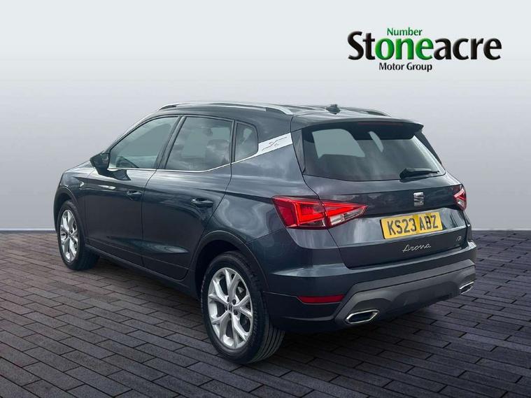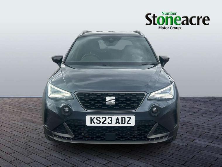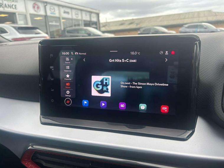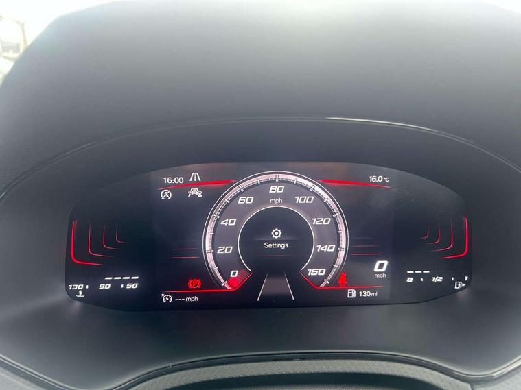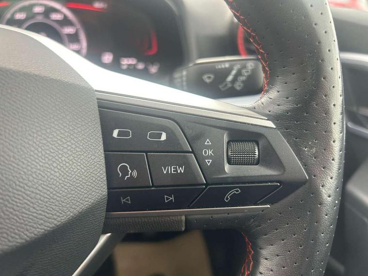 'Lights On' Reminder warning buzzer, 8" Digital cockpit, Digital clock, E-call, Electric speed sensitive power steering, Full Link Smartphone Integration with Mirror Link, Apple Car Play, Google Android Auto with USB Type C cable for Apple and Android compatibility, Lane keeping system, Low fuel warning light, Outside temperature display, Rear parking sensor, RPM counter, Seat connect with safety, service, remote and online, SEAT Drive profile - Four different models normal-sport-eco-individual, steering response, throttle response, Trip computer, Wireless phone charger, 9.2" colour touchscreen with navigation system, voice control and USB port (type c), Bluetooth interface for hands free and audio streaming, DAB digital radio and AM/FM radio, Steering wheel mounted audio controls, Anti theft roof antenna, Auto dimming interior rear view mirror, Automatic activation of hazard warning lights, Body coloured bumpers, Body coloured door handle inserts, Chrome roof rails and window surrounds, Dark tinted rear windows, Electric front/rear windows, Electrically adjustable, heated and folding door mirrors, Front fog lights with cornering function and rear fog light, FULL LED automatic headlights with dynamic headlight range control, coming and leaving home, LED daytime running lights, LED rear tail lights and licence plate lights, Protective side mouldings, Rain sensing wipers, Rear side wing doors, Rear spoiler, Rear window wash/wipe, Roof colour door mirrors, Third brake light, Twin exhaust pipe styling hidden exhaust pipe, Visible VIN plate, Windshield wiper with intermittent control and potentiometer, 2 cupholders, 3 seat bench in 2nd row, 60/40 split folding rear seat, Aircare filter, Black interior roof, Cloth upholstery, Double boot floor, Driver sunvisor with covered mirror + card holder, Dual zone climate control, Front courtesy light with 2x front and 2x rear reading lights, Front sport seats, Gear shift indicator, Height adjustable front seats, Height/reach adjustable steering column, Illuminated boot, Instrument lighting with brightness control, Interior ambient lighting, Interior light in footwell, central console and door panel, ISOFIX points in outer rear seats with top tether anchorage points, Passenger sunvisor with vanity mirror, Perforated flat bottomed leather steering wheel/gear knob/handbrake with red stitching and FR logo, Single front passenger seat, Two front and three rear height adjustable headrests, Interior chrome pack - Arona, 3 point seatbelts on all rear seats, ABS, Active front headrests, Child locks on rear doors, Driver and front passenger airbags with front passenger airbag de activation, front side and curtain airbags, Electronic stability control, Emergency Brake Assist (EBA) and front assist, Front and rear seatbelt reminder, Hill hold control, Multi-Collision braking, Tiredness recognition system, Traction control, Tyre pressure monitoring system, Alarm with back-up horn, Electronic engine immobiliser, Locking wheel bolts, Remote central locking + deadlocks, Tow away protection, Titan black dashboard, 17" Dynamic alloy wheels,