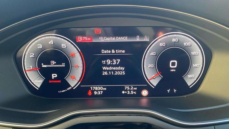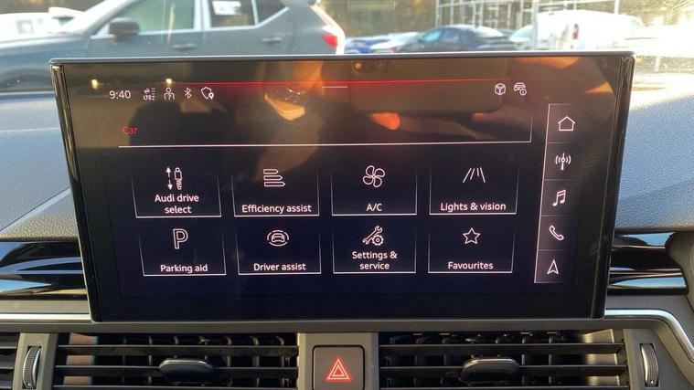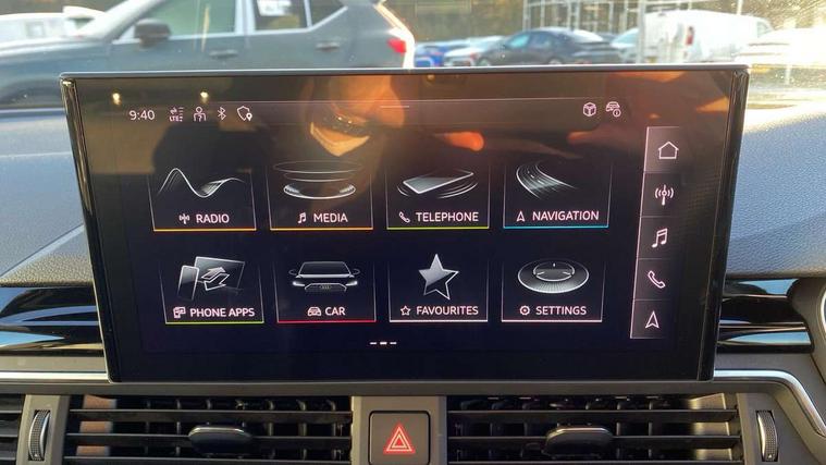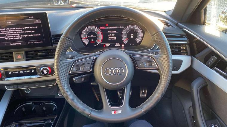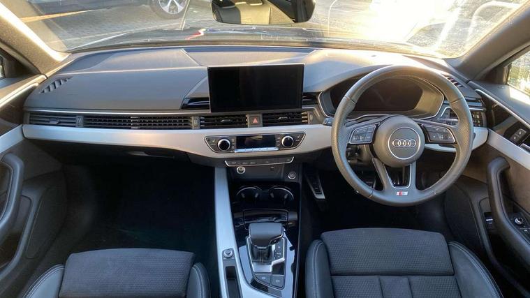 Audi connect safety and service (e-call), Audi drive select, Audi smartphone interface, Audi virtual cockpit, Automatic start-stop system with coasting functionality and efficiency programme, Bluetooth interface, Camera based traffic sign recognition, Electromechanical power steering, Email, calendar and text messages displayed via MMI, Front and rear parking sensors, Lane departure warning, MMI Navigation plus with MMI touch includes 10.1" high resolution colour MMI display, 3D map, Power operated tailgate, Rear view camera, Voice control system, 54 litre fuel tank, Sports suspension lowered by 23mm, 2 USB charging ports, 8 passive loudspeakers, DAB digital radio reception, Aluminium roof rails, Auto dimming rear view mirror, Body colour door handles, Body colour front spoiler lip, Body colour side sill trim, Body coloured door mirrors, Electric adjustable/heated/folding door mirrors with auto dimming, Grained matt black side air inlets with matt aluminium silver inlay, High beam assistant, Honeycomb structure radiator grille in grained matt black, LED headlights with LED rear lights + dynamic rear indicators + headlight adjustment and high beam, turning light + LED daytime running lights, LED third brake light, Matt aluminium silver tailpipe trim, Privacy glass, Rain and light sensors, Rear side wing doors, Rear wiper, S Line badges on the front wings, S line front and rear bumpers with side skirts, S Line rear diffuser in matt anthracite black with trim strip in matt aluminium silver, S Line roof edge spoiler, Variable intermittent front wash/wipe, Windscreen with acoustic glazing, 3 spoke high multi-function sports leather steering wheel grips in perforated leather with S badging including paddle shift, 4 way electric lumbar support for driver and front passenger, 40/20/40 split folding 3 rear seat bench in 3 parts with rear centre armrest, Black carpets, Black cloth headlining, Black perforated leather gearknob, Contrast stitching on seats, steering wheel and gear lever gaiter, Deluxe 3 zone electronic climate control, Electric load area cover, Front and rear head restraints, Front centre armrest, Heated front seats, Illuminated door sill trims with S logo, ISOFIX child seat mounting and top tether, Manual seat adjustment, Single front passenger seat, Stainless steel pedals and foot rest, High gloss package - A4, LED Interior light pack - A4/S4, 3 rear seatbelts, 6 airbags - Driver, front passenger, curtain and side windows, Attention and drowsiness assist, Electronic Stabilisation Control (ESC) including ABS, ASR and EDL, Hill hold assist, Multi collision brake assist, Pop-up bonnet for pedestrian protection, Pre sense city, Rear door child safety locks, Seatbelt monitoring, Warning triangle and first aid kit, Anti theft alarm, Anti theft wheel bolts, Central locking, Keyless Go, Matt brushed aluminium inlays, Tool kit, Tyre repair kit,