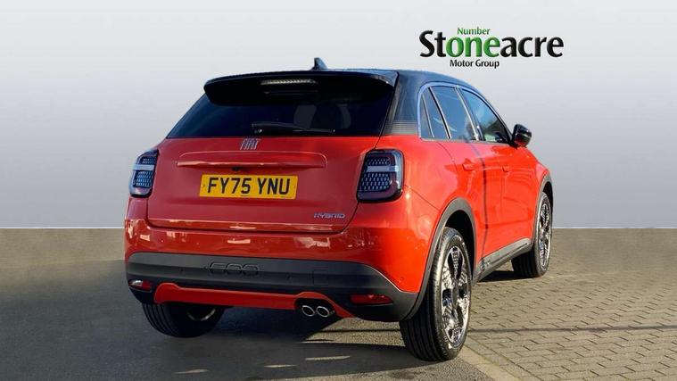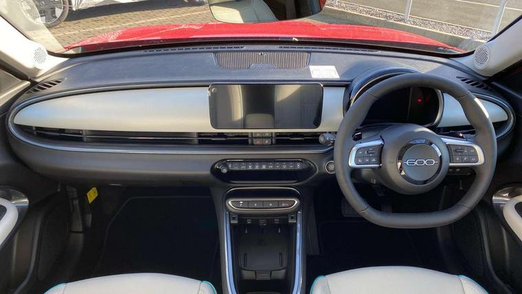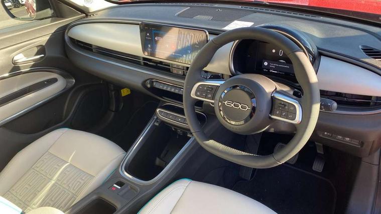 360 degree parking sensors with 180 degree rear view camera, 7" TFT digital cluster, Autonomous driving level 2: Adaptive cruise control with stop & go and lane centering, Blind spot detection, Bluetooth connectivity, BSRF connectivity box, Connected services, Drowsy driver detection, Emergency E-call assist, Engine emission level default, GSR II step 1, Hands free power liftgate, Intelligent speed assist, Lane keeping assistant (LKA), Odometer, Power assist steering, Rain and dusk sensors, Semi-automatic parking with Visiopark 1 system, Traffic sign recognition, Wireless apple car play/android Auto, Wireless charging pad for smartphones, Without drive mode selector, L2-AGM 12V battery, 1st Row USB type-A and USB type-C, 2nd Row USB type-C, 6 speaker audio system, Radio, Uconnect infotainment 10.25" touchscreen with integrated navigation system and DAB, All power windows express Up/Down, Auto dimming frameless rear view mirror, Automatic headlights, Automatic high/low beam, Body coloured door handles, Chrome day light openings, Chromed exhaust tip, Electric adjustable/heated/folding door mirrors, Exterior chrome accents, Front and rear Chromed 600 logo, Gloss black finish B pillar, Gloss black shark fin antenna, Glossy black door mirrors, Heated windscreen wiper blade area, LED 3rd brake light, LED daytime running lights, LED Fog lamps with cornering function, LED front signature lighting, LED front turn indicators and position lights, LED rear lights, LED rear signature lighting, LED reflector headlamps, Matt black side skirts with 600 chromed logo, Privacy glass, Puddle lights, Rear bumper embossed 600 logo, Rear roof spoiler, Rear side wing doors, Rear wiper, 2 Spoke synthetic leather steering wheel with audio control, 3 rear headrests, 3 seat bench in 2nd row, 6 way manually adjustable front passenger seat, 6 way power adjustable driver seat with lumbar support and massage function, Adjustable trunk floor, Automatic climate control, Auxilliary 12V power socket, Cargo flex fit, Chrome interior door handles, Dark metachrome dashboard ring, English handbook, Front centre armrest, Front headrests, Front passenger grab handle, Front seatback pockets, Heated front seats, ISOFIX attachment on front passenger and rear passenger seats, Matt Ivory painted dashboard fascia, Metachrome central compartment bezel, Monogram Synthetic leather upholstery, Paddle shifts, Partial body cover for shipment, Predisposal for accessory upgrade to default tunnel pad cover (dedicated prnd bezel), Rear seat 40/60 split, Single front passenger seat, Smart 15L storage central tunnel with La prima tunnel pad cover, Sunvisor label ciao Fiat, Sunvisors with vanity mirrors, Velour floor mats, 3x3 point rear seatbelts, 6 airbags, ABS, Autonomous Emergency Brake (AEB) & Vulnerable Road User (VRU) Protection, Child locks on rear doors, Electronic parking brake with auto hold, ESC (Electronic Stability Control), Front passenger airbag deactivation, Seatbelt reminder and pretensioners for all seats, Anti-theft volumetric alarm, Anti-theft wheel bolts, Passive entry and keyless go, 18" Diamond cut alloy wheels, Fix and go puncture repair kit,